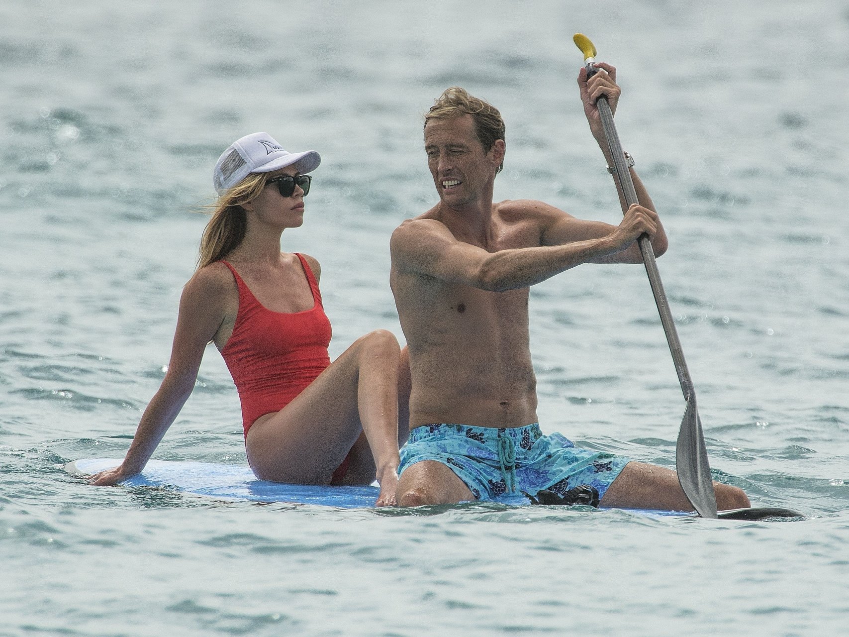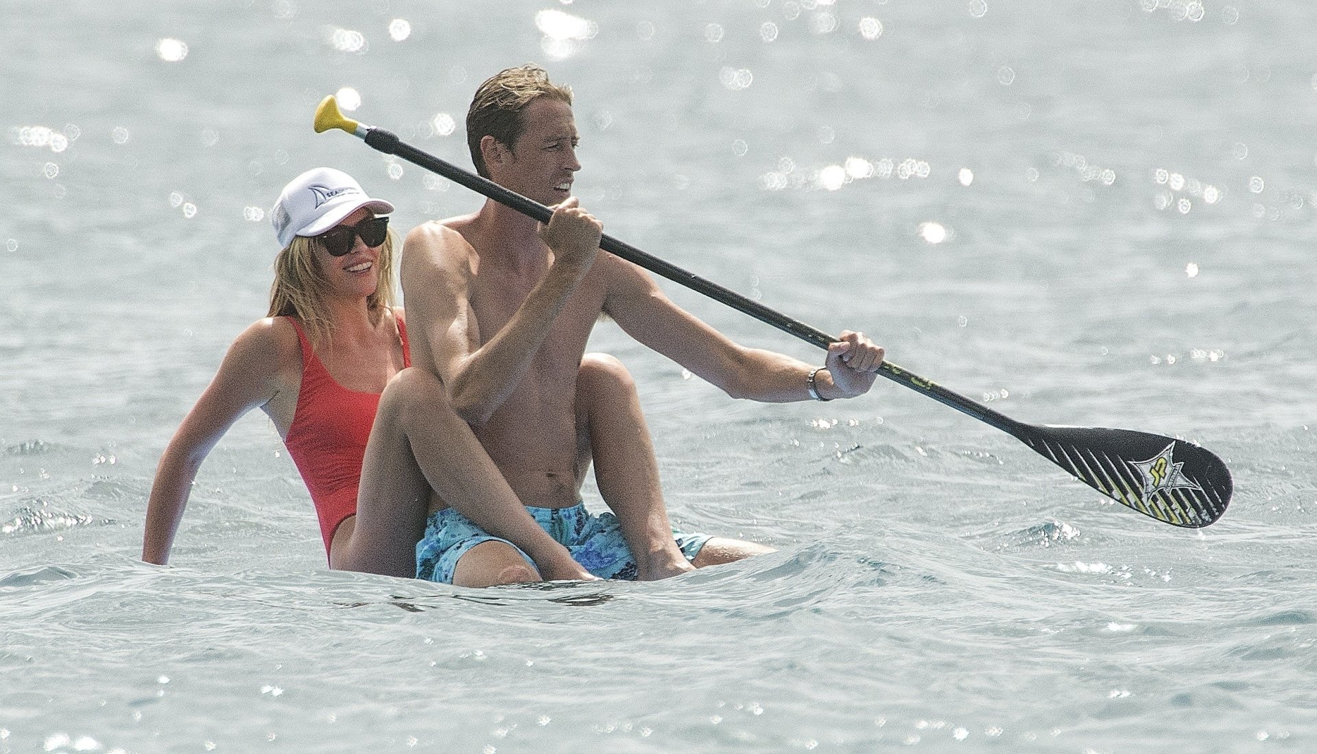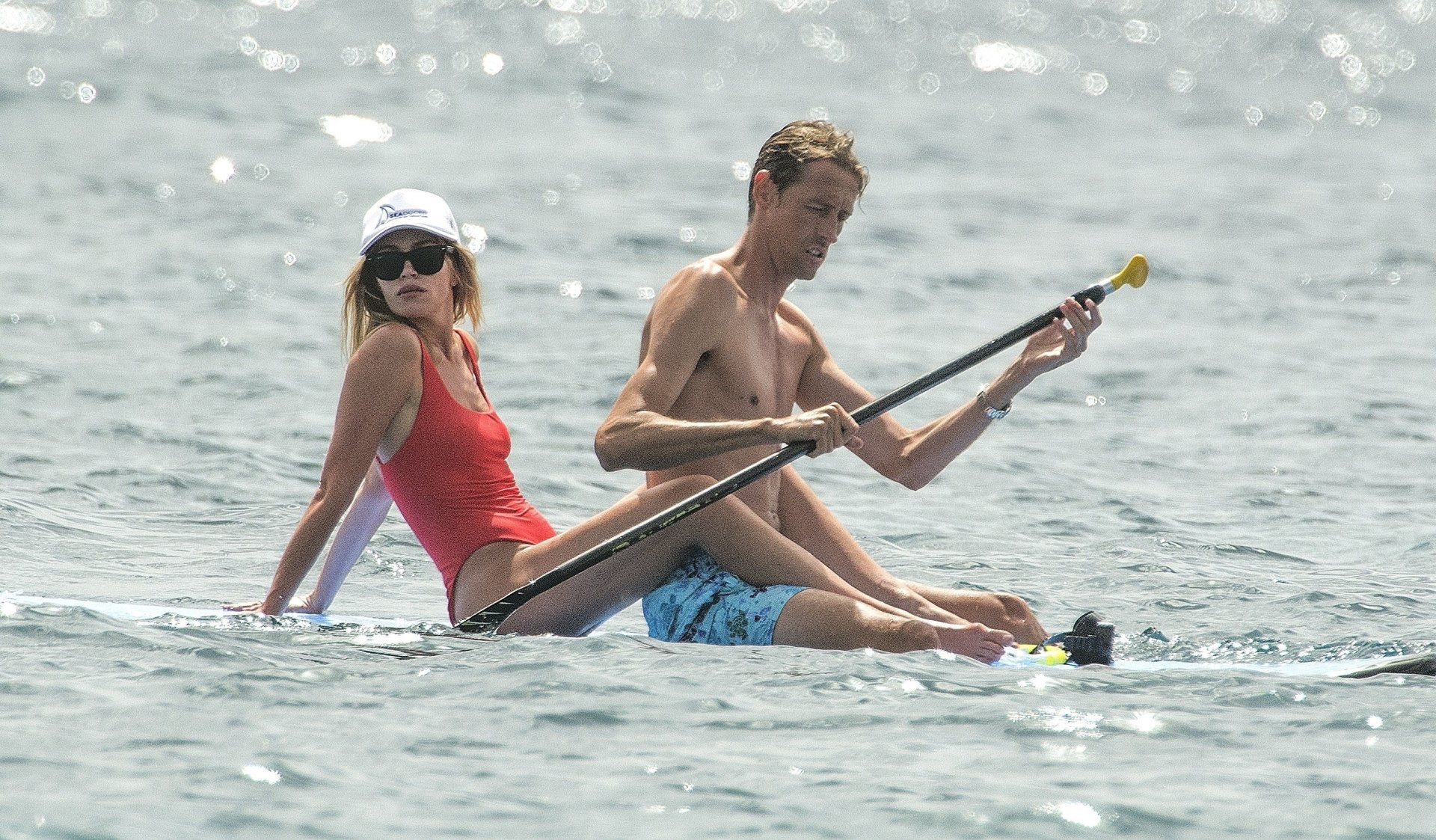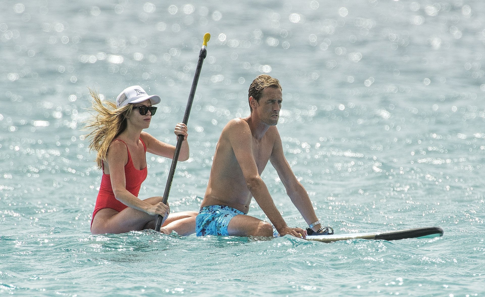 El futbolista británico Peter Crouch y su esposa modelo, Abbey Clancy, fueron vistos en un catamarán en Barbados. La impresionante rubia llevaba un traje de baño rojo de una pieza, mostrando sus piernas sexys, pequeños pechos y diminuto trasero.