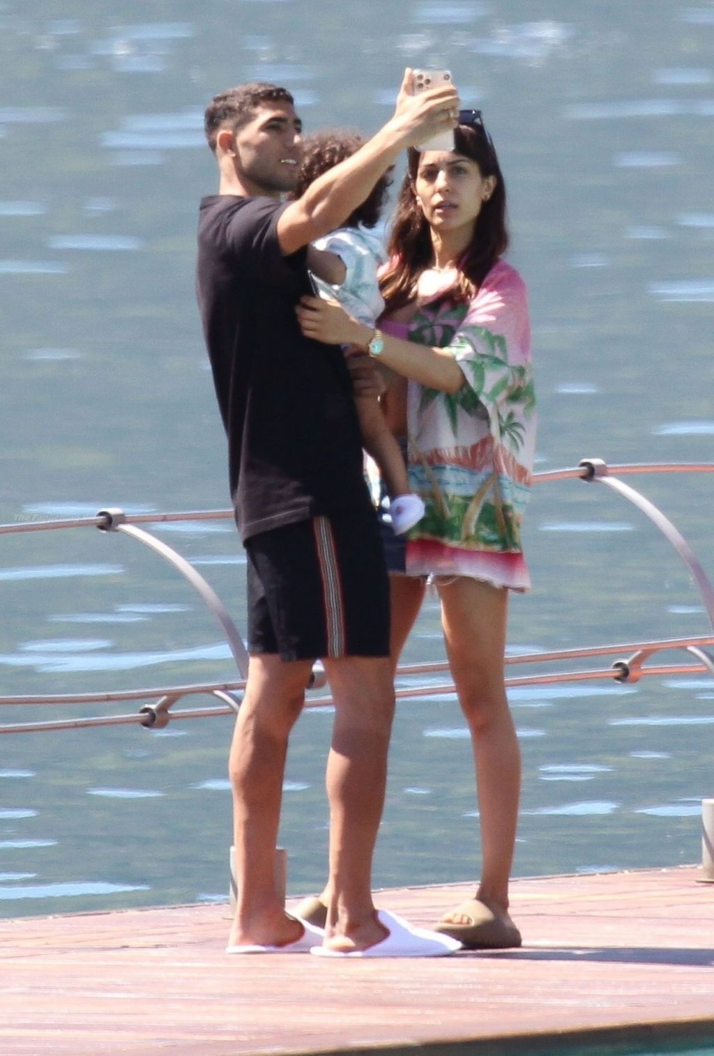 El futbolista marroquí Achraf Hakimi y su esposa, la actriz española Hiba Abouk, disfrutan de unas encantadoras vacaciones familiares con su hijo en el lago de Como, mientras el Chelsea ofrece 60 millones por el futbolista.