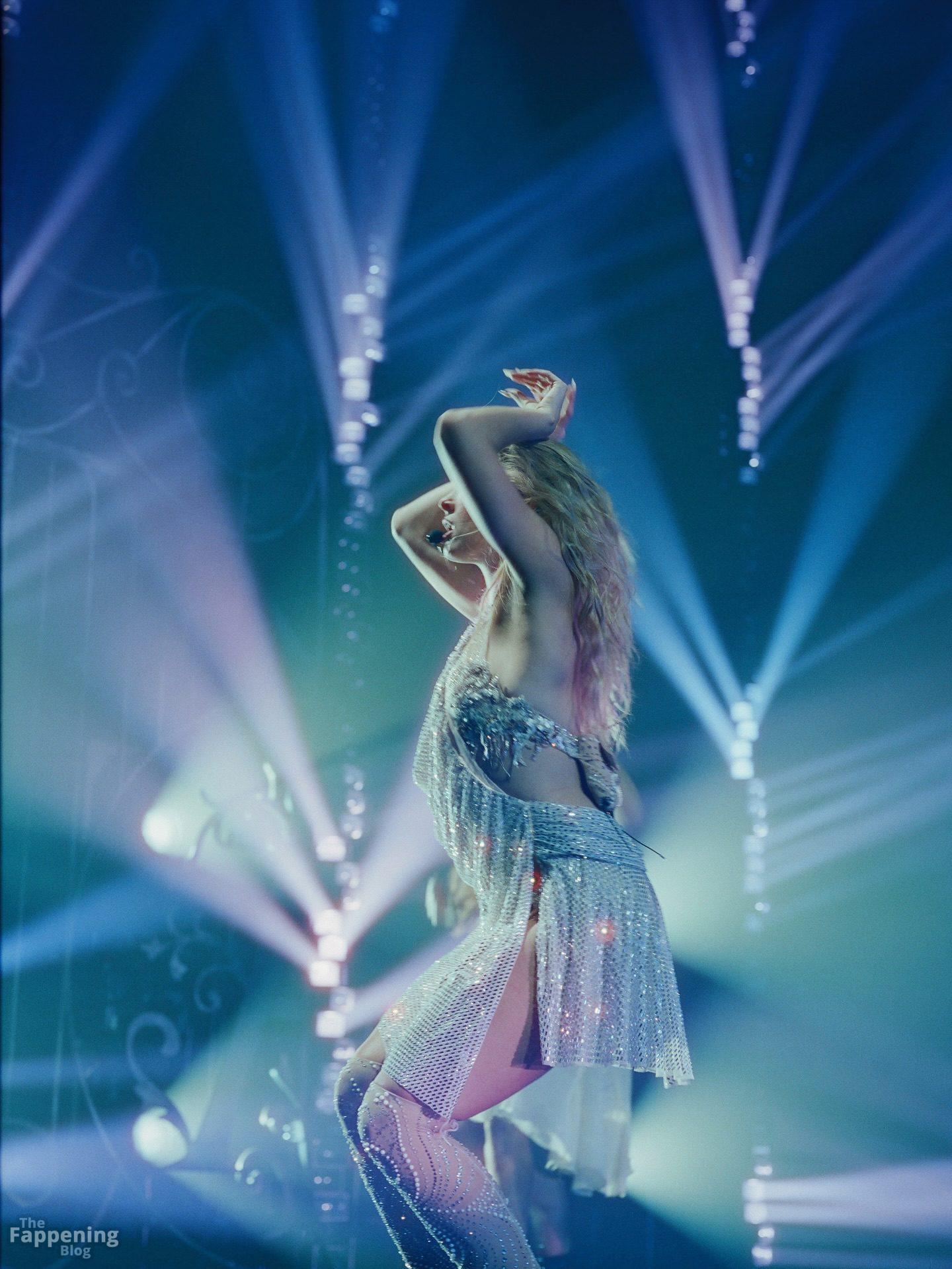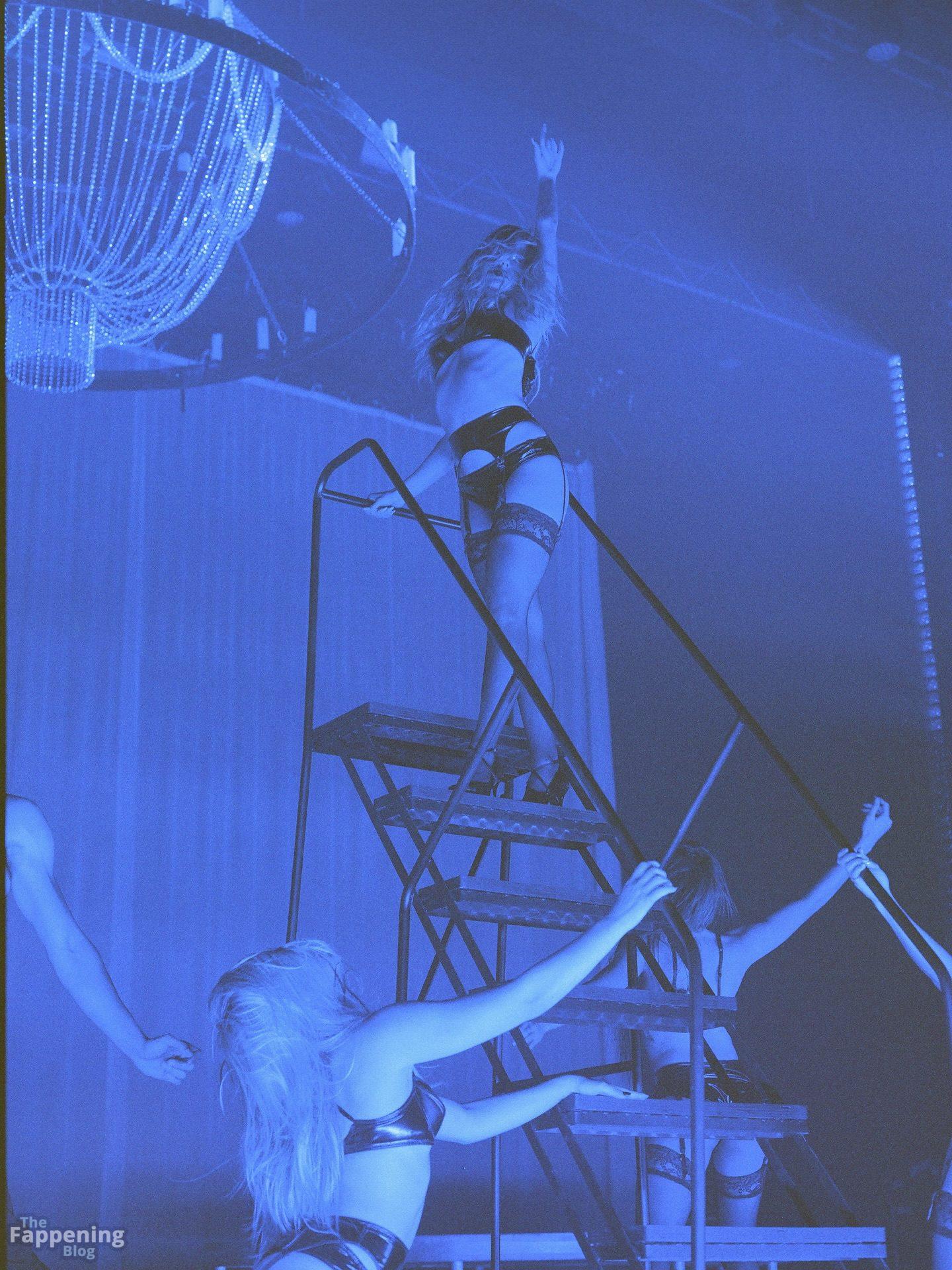 Addison Rae se despojó hasta quedar con un sostén transparente, bragas y ligas de encaje para sus fotos de la gira, mostrando su trasero, piernas y abdominales.