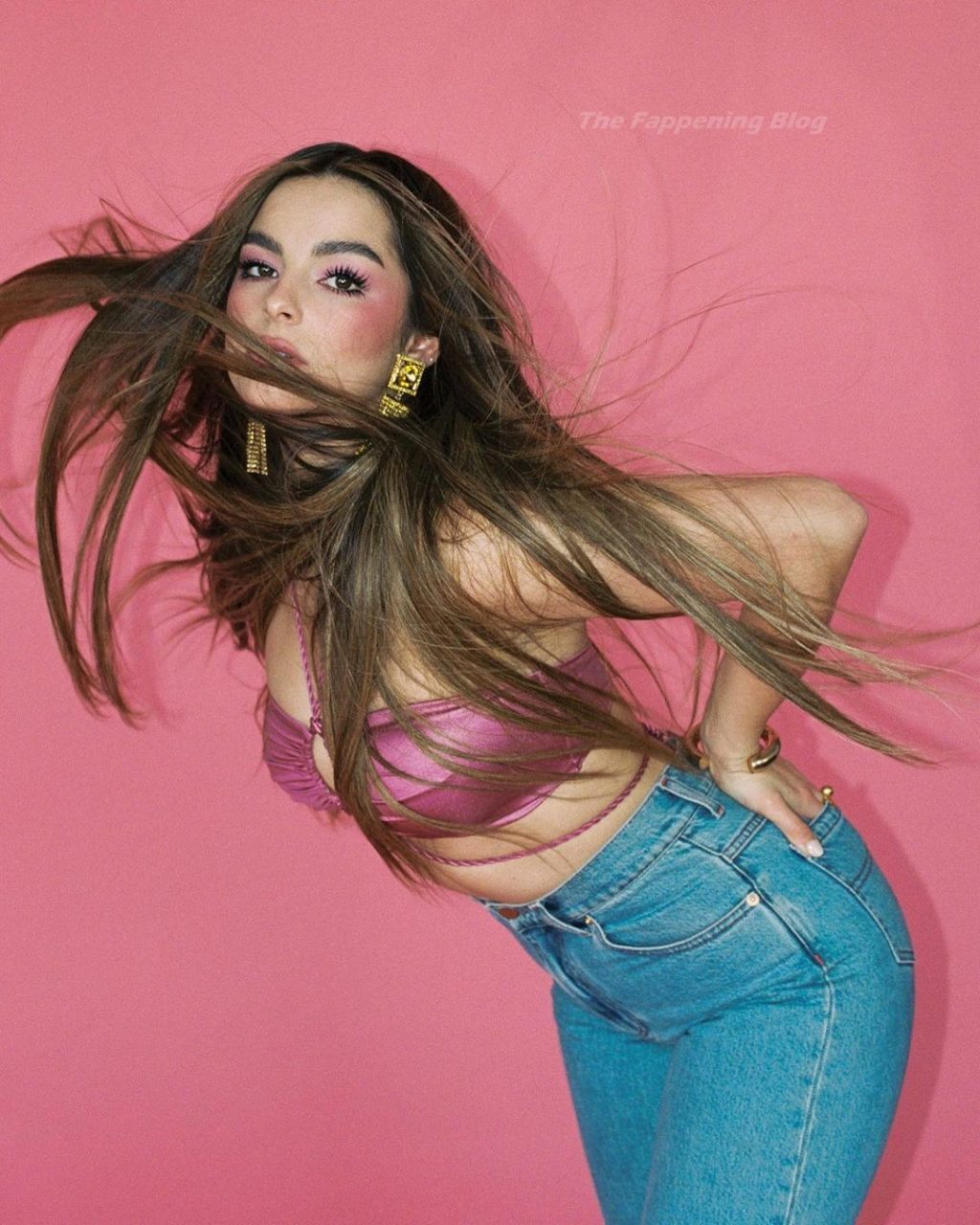 Chica del Sueño Americano, bailarina y estrella de TikTok Addison Rae posa con un top rosa y otros atuendos sexys en una nueva sesión de fotos de Riley Taylor (febrero de 2021).