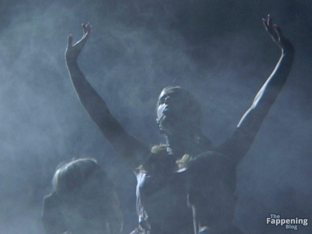 Addison Rae domina el escenario con un body negro transparente, medias de red y otros atuendos. Mira su figura sexy en las fotos del backstage.