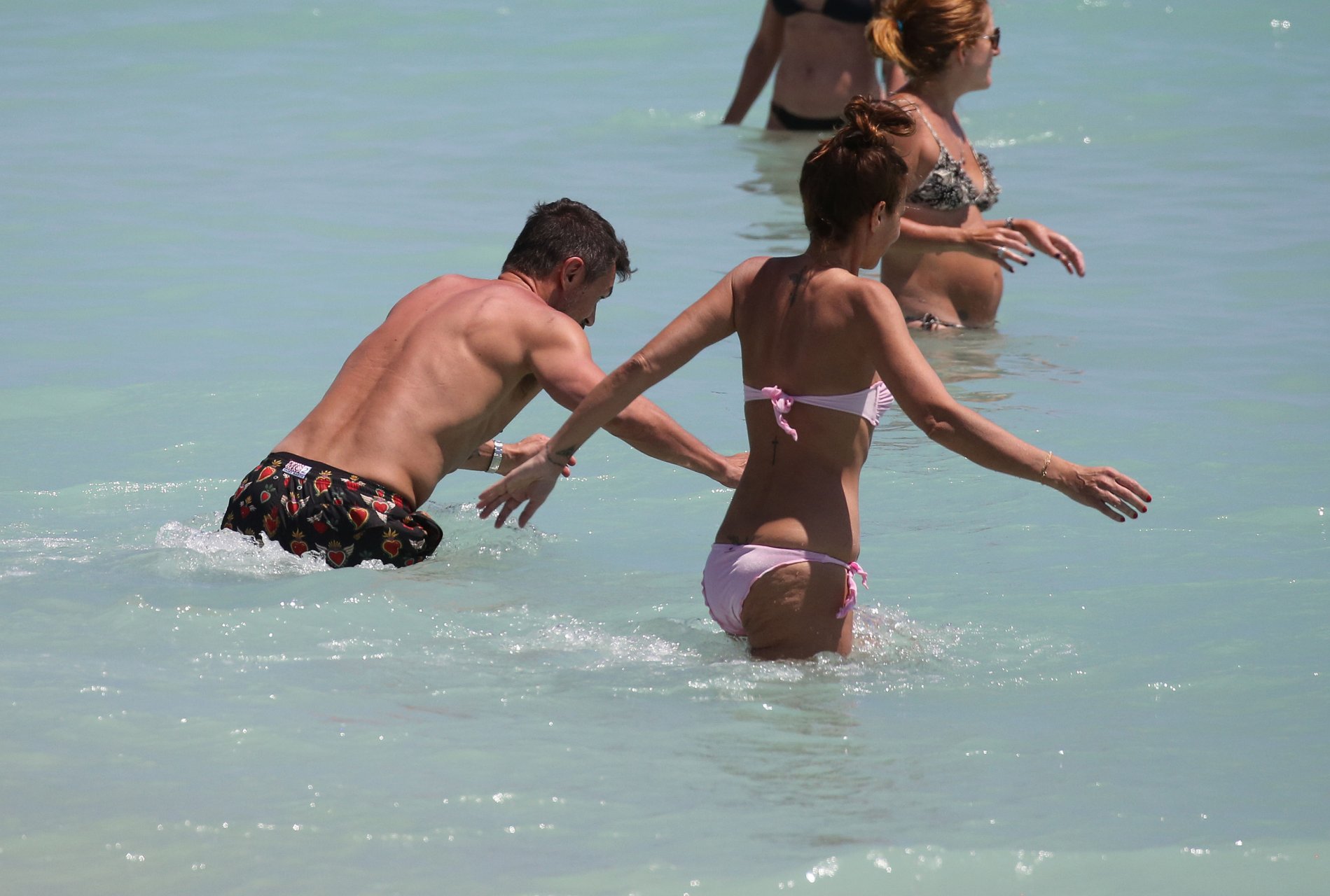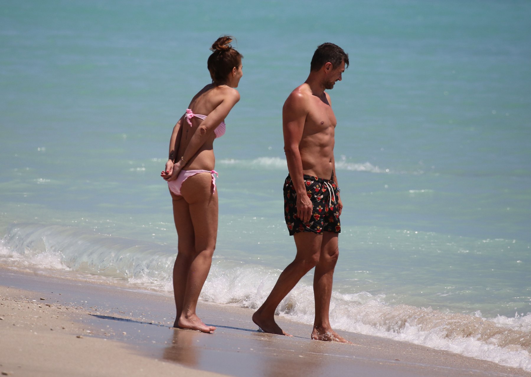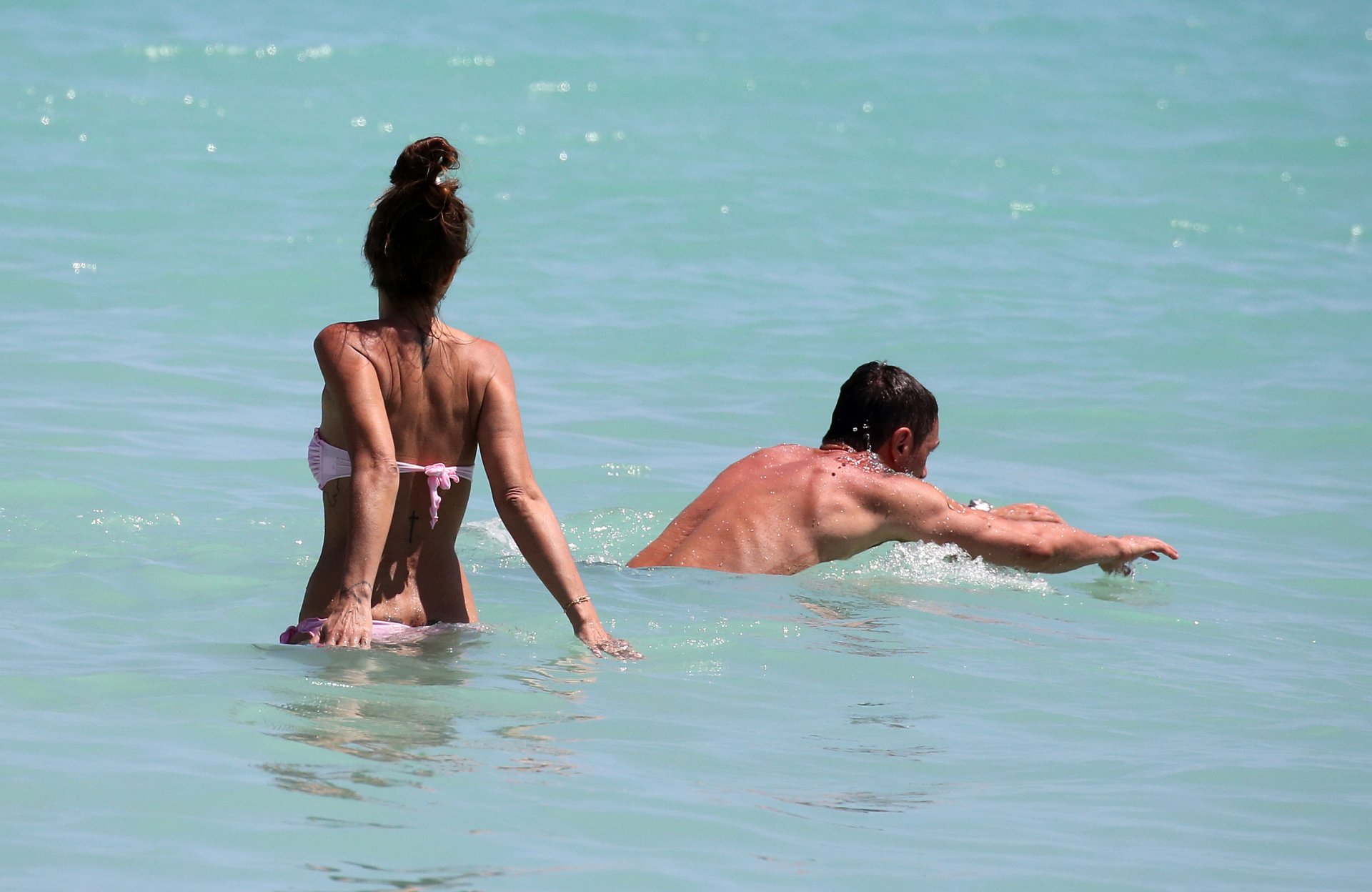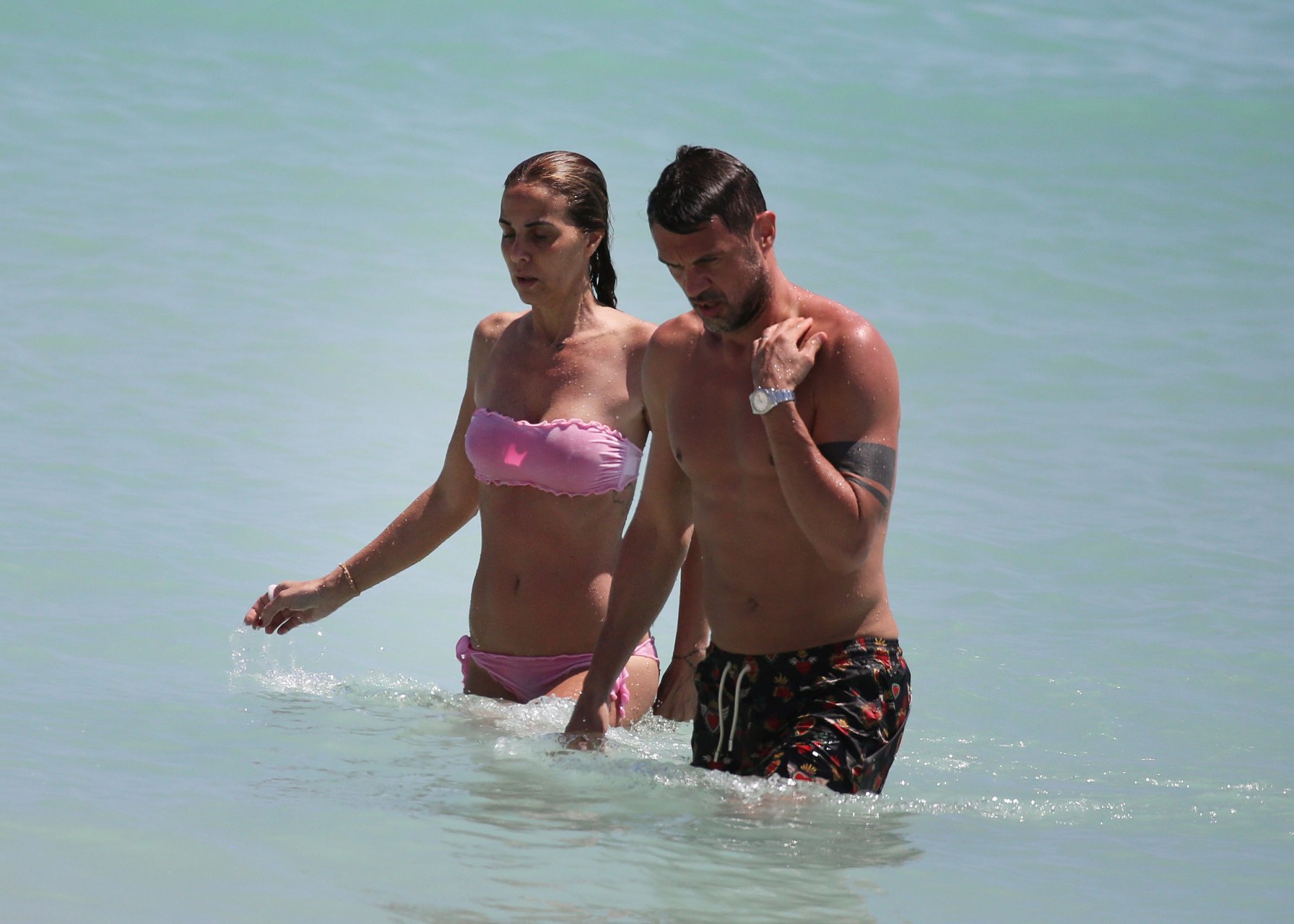 El exfutbolista profesional Paolo Maldini (AC Milan) y su esposa Adriana Fossa muestran sus cuerpos de playa en Miami, 16/04/2018. Adriana Elena Fossa Blanco es una exmodelo, actriz y empresaria venezolana. Nacida: 8 de junio de 1968.