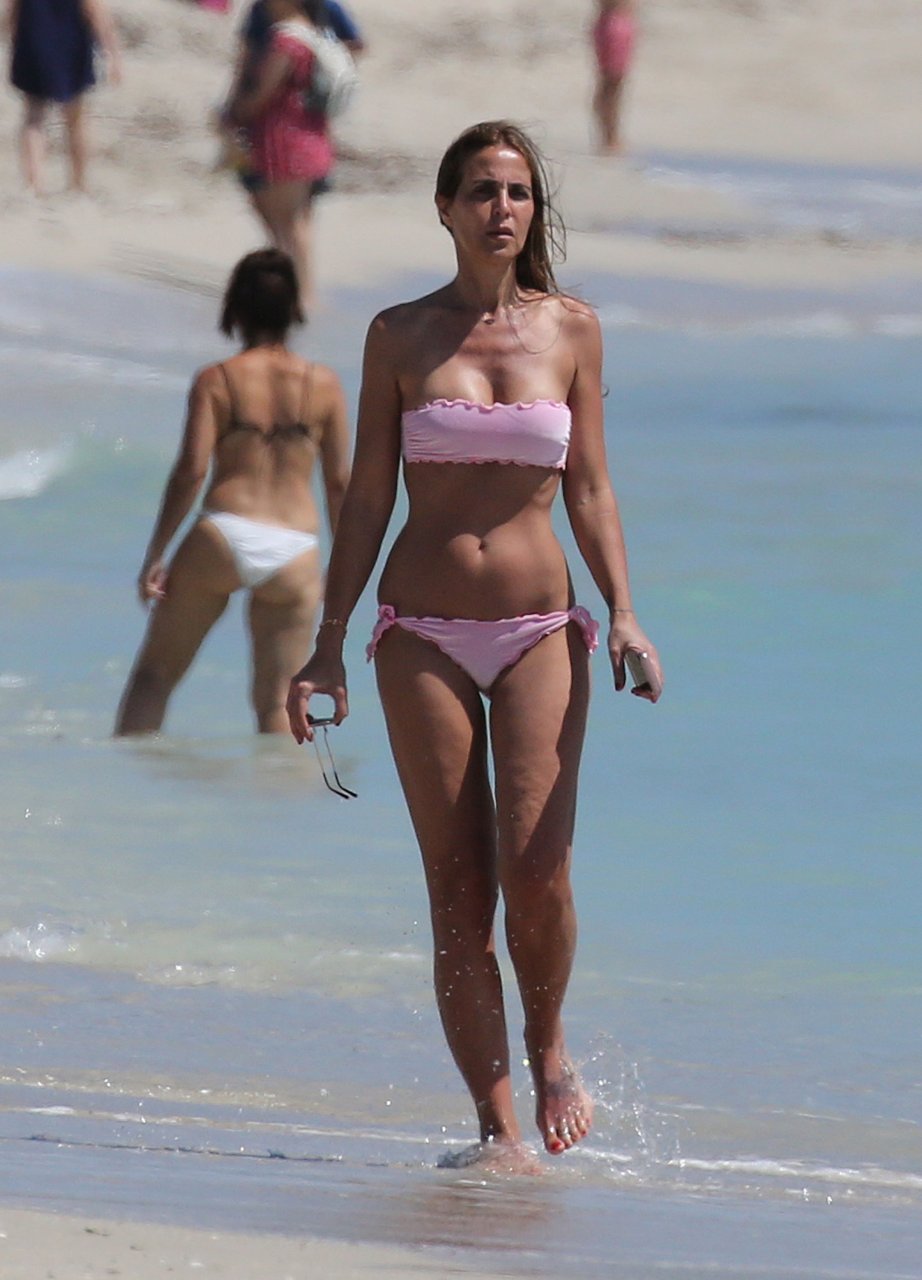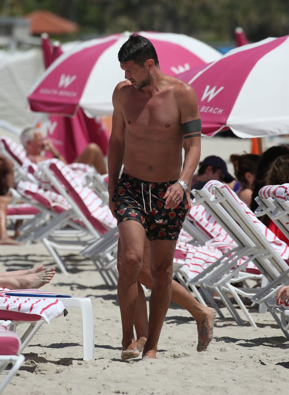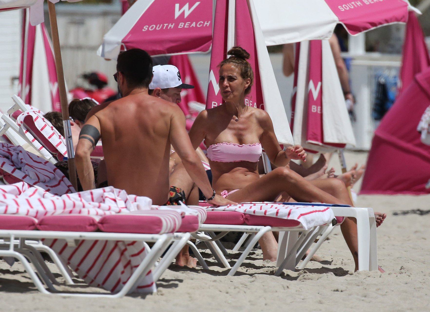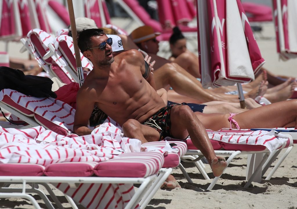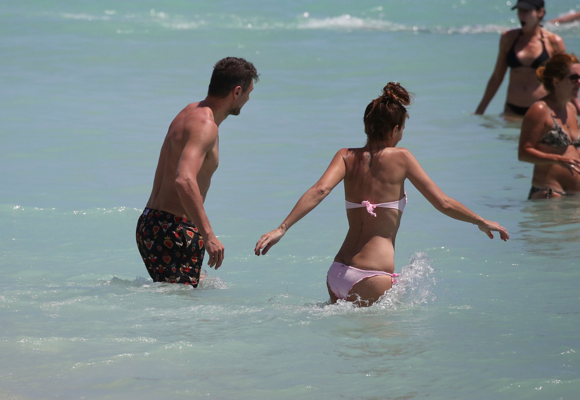 El exfutbolista profesional Paolo Maldini (AC Milan) y su esposa Adriana Fossa muestran sus cuerpos de playa en Miami, 16/04/2018. Adriana Elena Fossa Blanco es una exmodelo, actriz y empresaria venezolana. Nacida: 8 de junio de 1968.