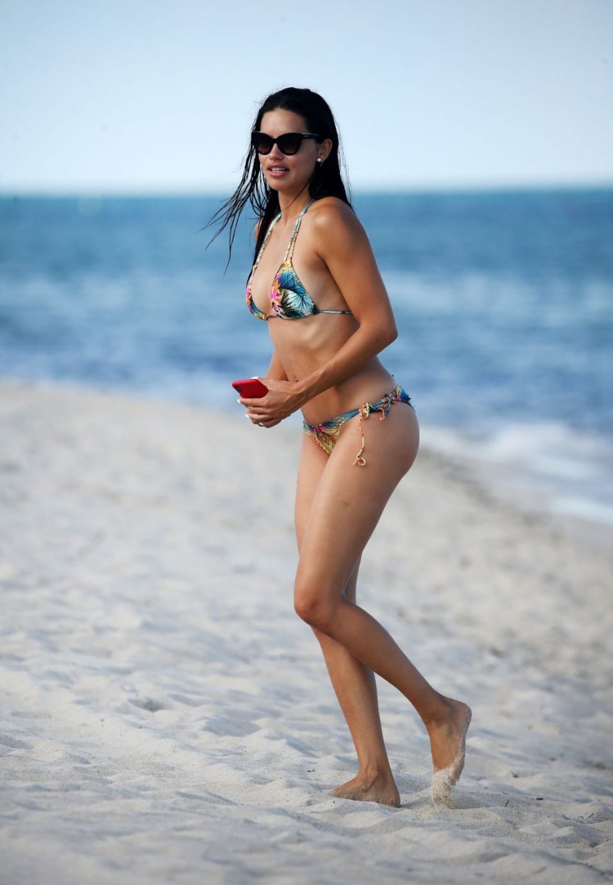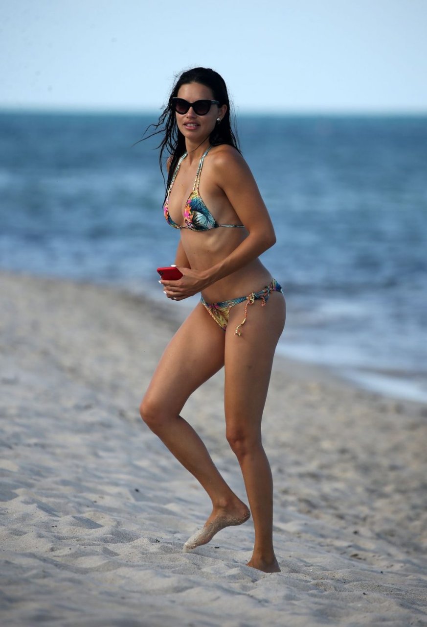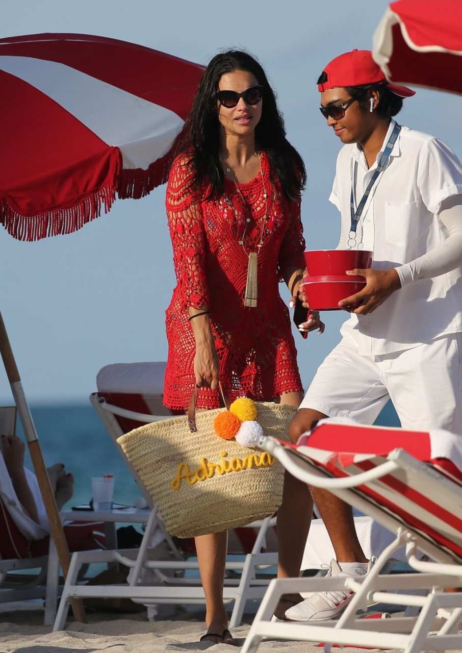 La modelo/actriz brasileña Adriana Lima está en Miami Beach disfrutando del sol con su familia, ¡13/08/2019! Adriana luce un traje de baño con estampado floral que acentúa la figura atlética de la modelo. La bomba toma algunas fotos de un adorable miembro de la familia mientras descansa junto a la playa.