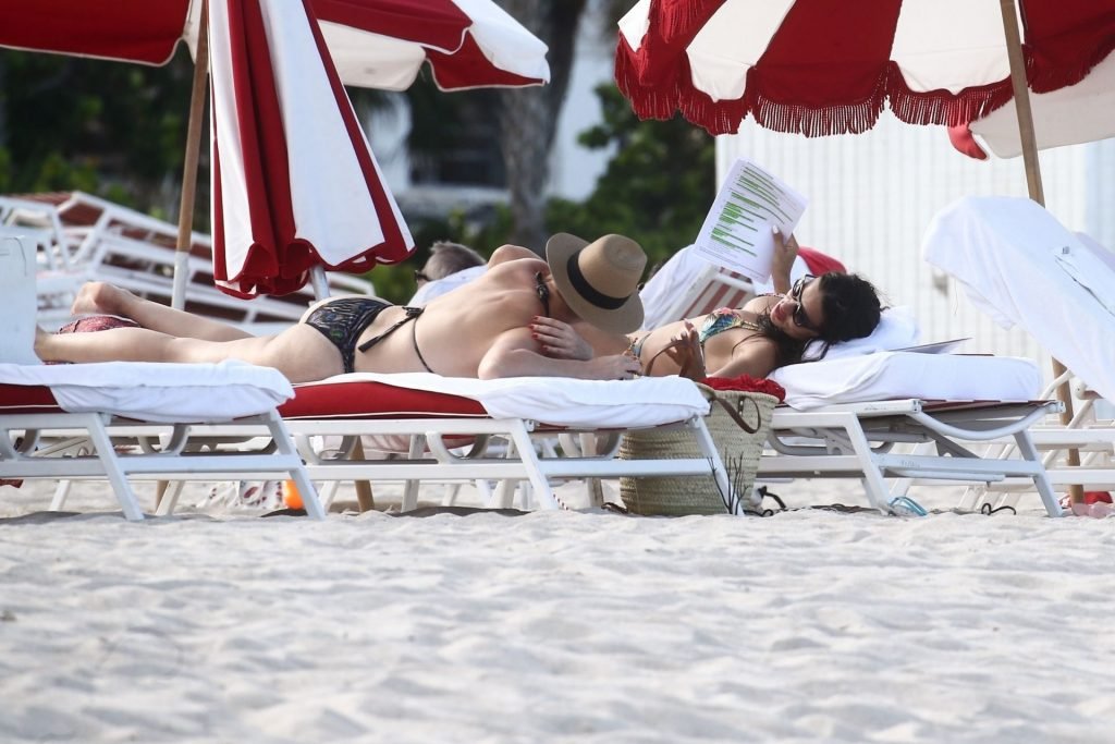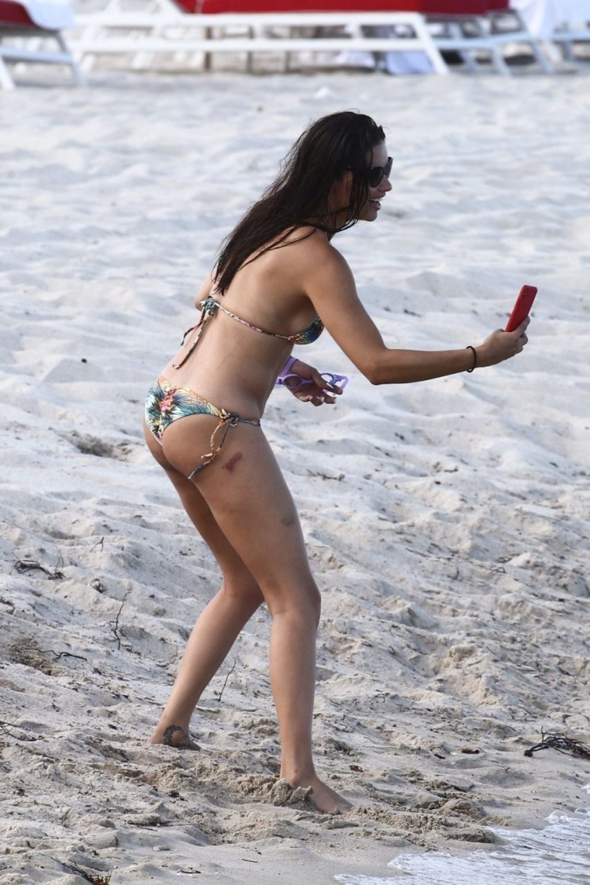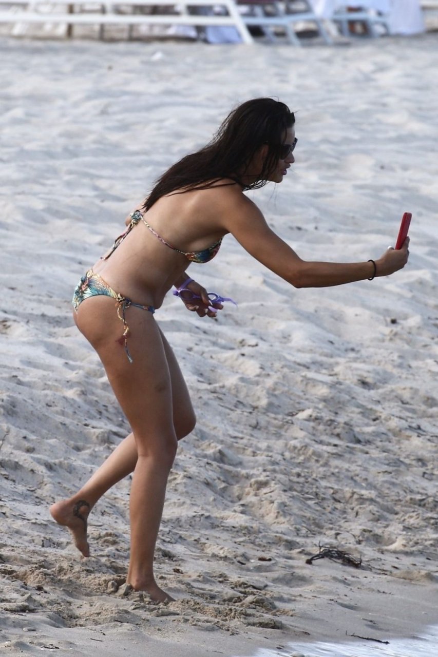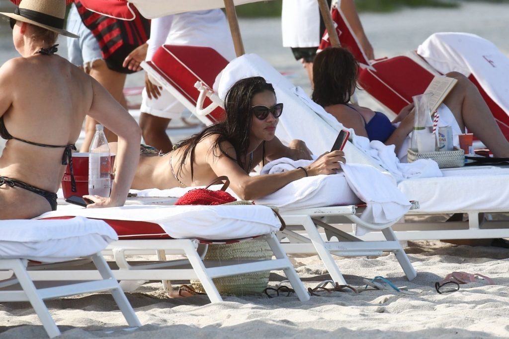 La modelo/actriz brasileña Adriana Lima está en Miami Beach disfrutando del sol con su familia, ¡13/08/2019! Adriana luce un traje de baño con estampado floral que acentúa la figura atlética de la modelo. La bomba toma algunas fotos de un adorable miembro de la familia mientras descansa junto a la playa.