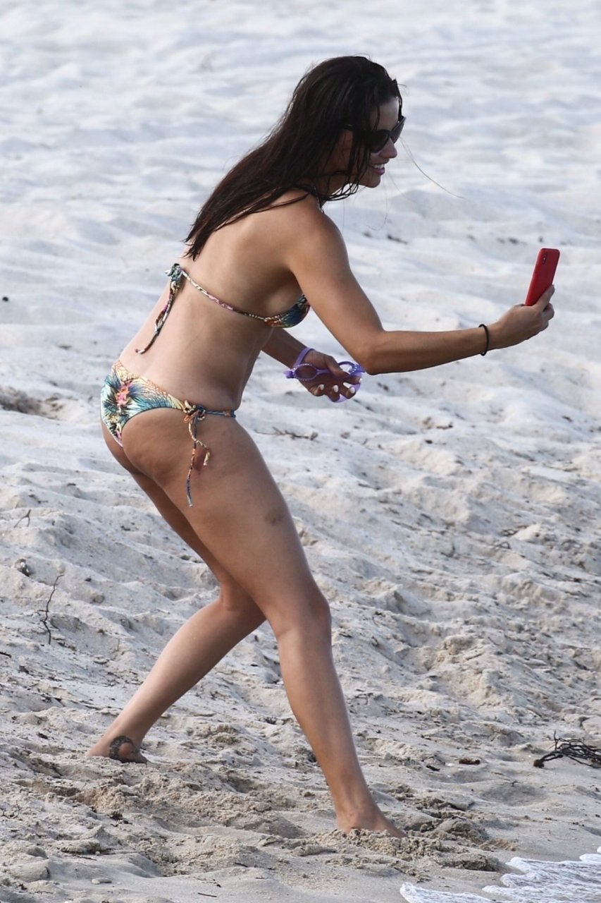 La modelo/actriz brasileña Adriana Lima está en Miami Beach disfrutando del sol con su familia, ¡13/08/2019! Adriana luce un traje de baño con estampado floral que acentúa la figura atlética de la modelo. La bomba toma algunas fotos de un adorable miembro de la familia mientras descansa junto a la playa.