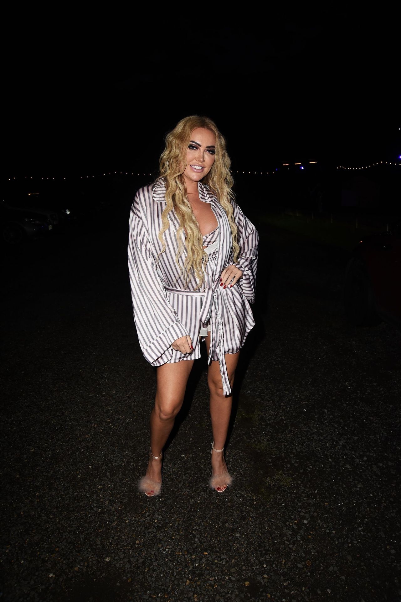 La personalidad de la televisión inglesa, modelo y columnista Aisleyne Horgan-Wallace (41) muestra sus pechos y piernas en la noche VIP del cine drive-in encantado de Tulleys en el Centro de Eventos Tulleys Farm, Turners Hill, Crawley, Sussex, 10/08/2020.