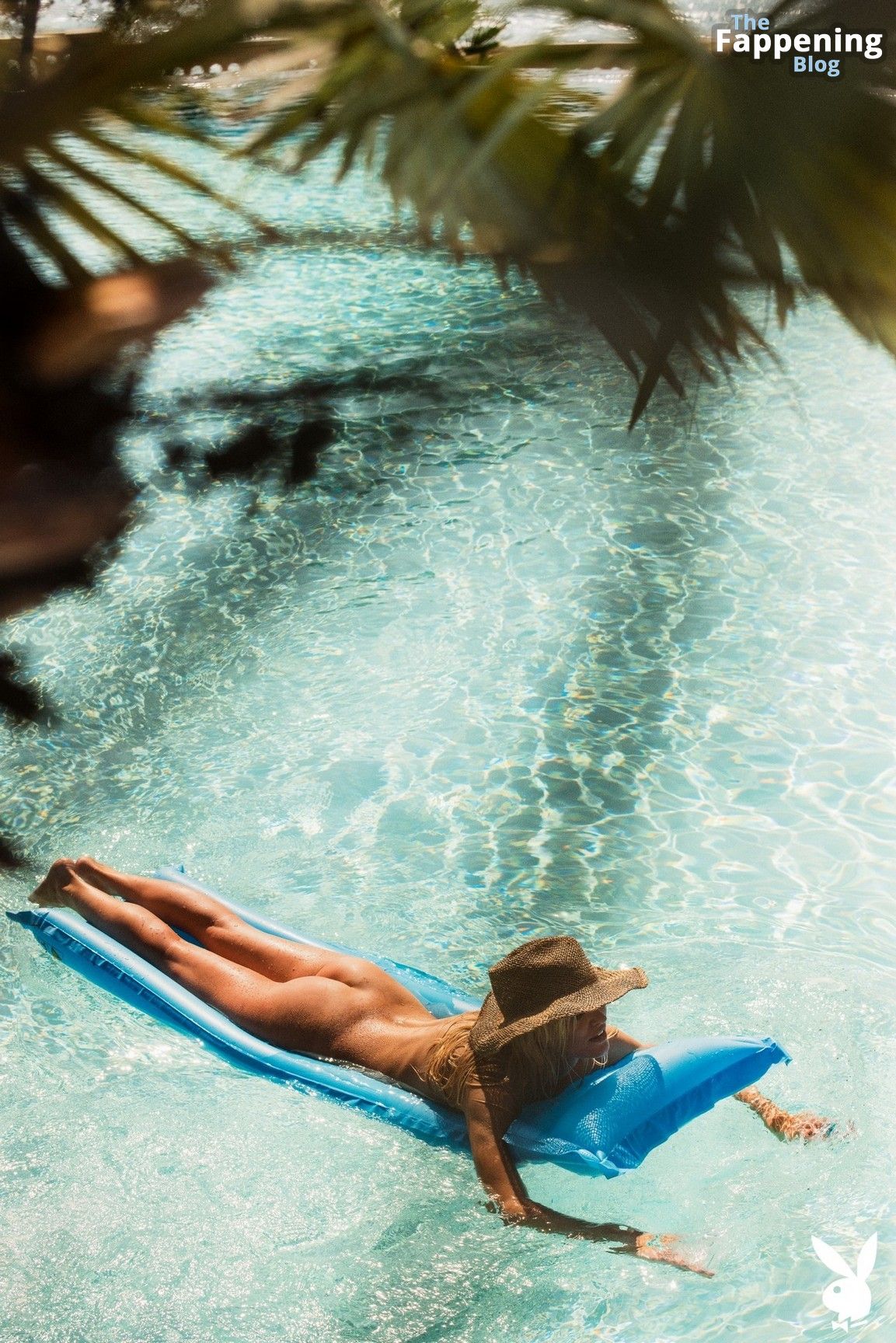 La delgada bomba rubia exhibe sus pechos de silicona y su increíble trasero mientras se desnuda para el fotógrafo y se da un chapuzón en la piscina. Empapada y completamente expuesta, la modelo luce absolutamente hipnotizante. No te pierdas las fotos desnudas de esta rubia.