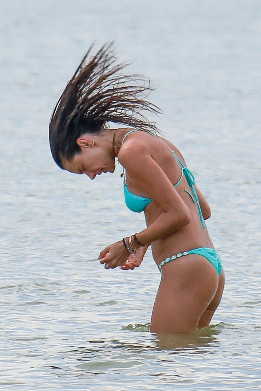 Alessandra Ambrosio lleva un sexy bikini turquesa en la playa de Canasvieiras, Brasil, 01/08/2017. Alessandra Ambrosio (Alessandra Corine Ambrósio) es una modelo brasileña, actriz (Daddy’s Home (2015)). Edad: 35 años, 11 de abril de 1981