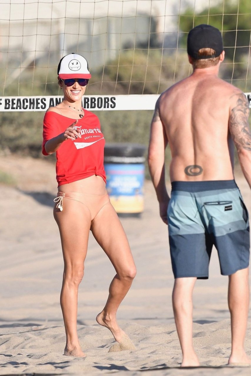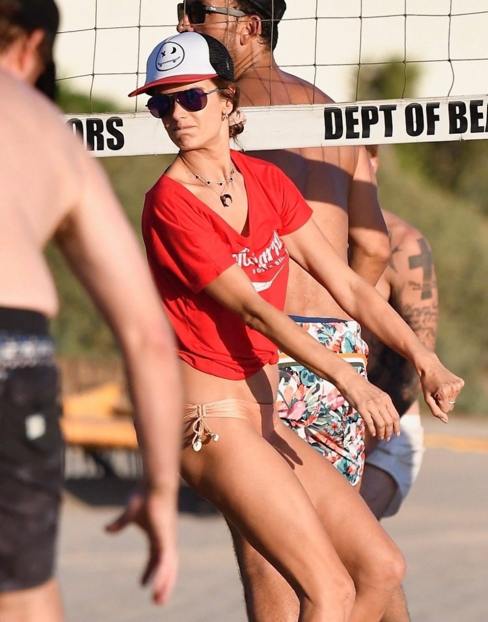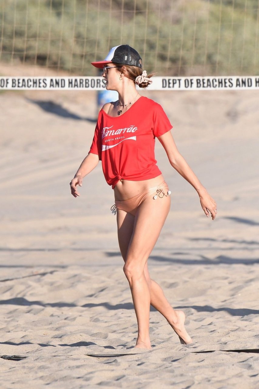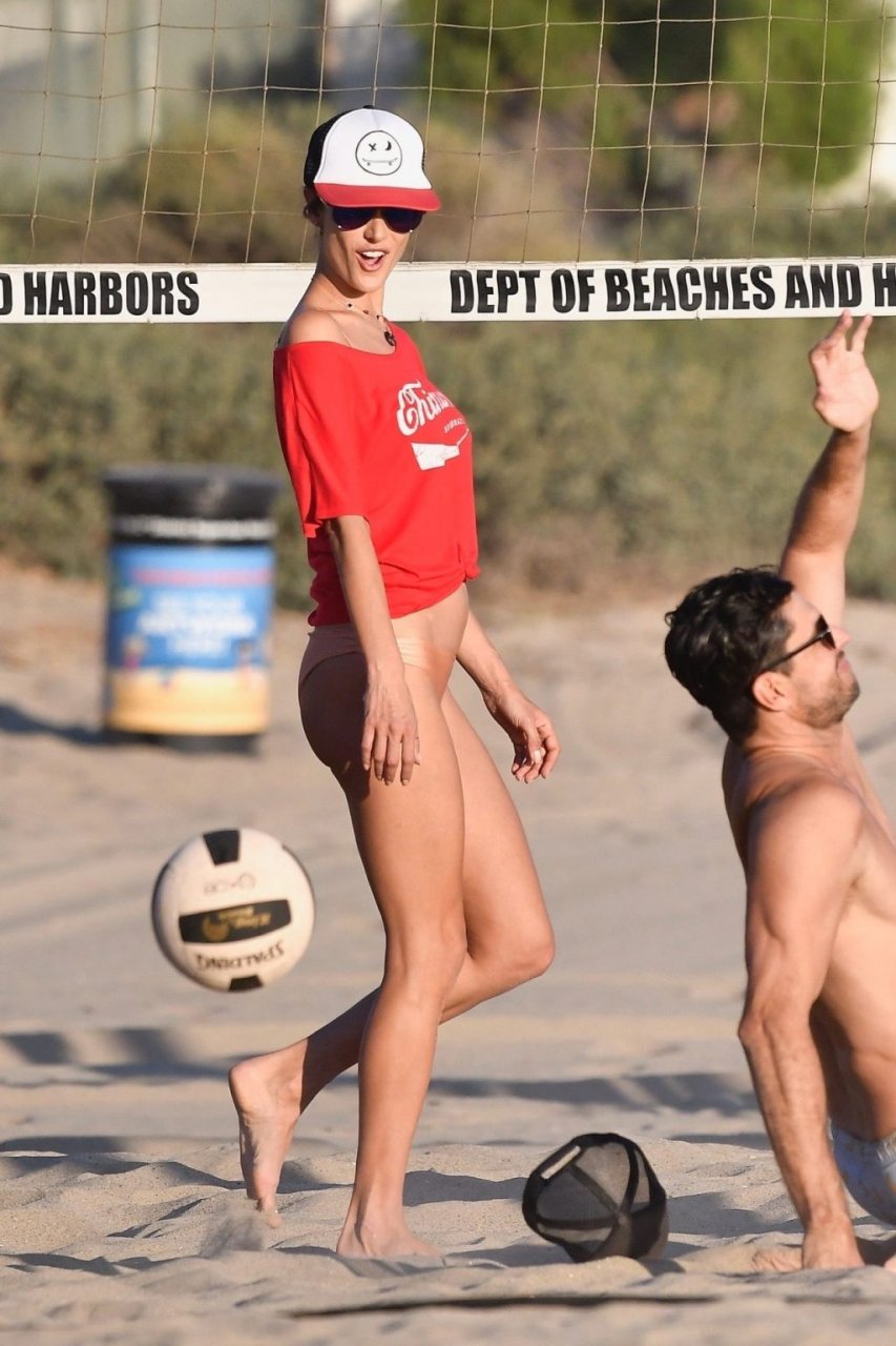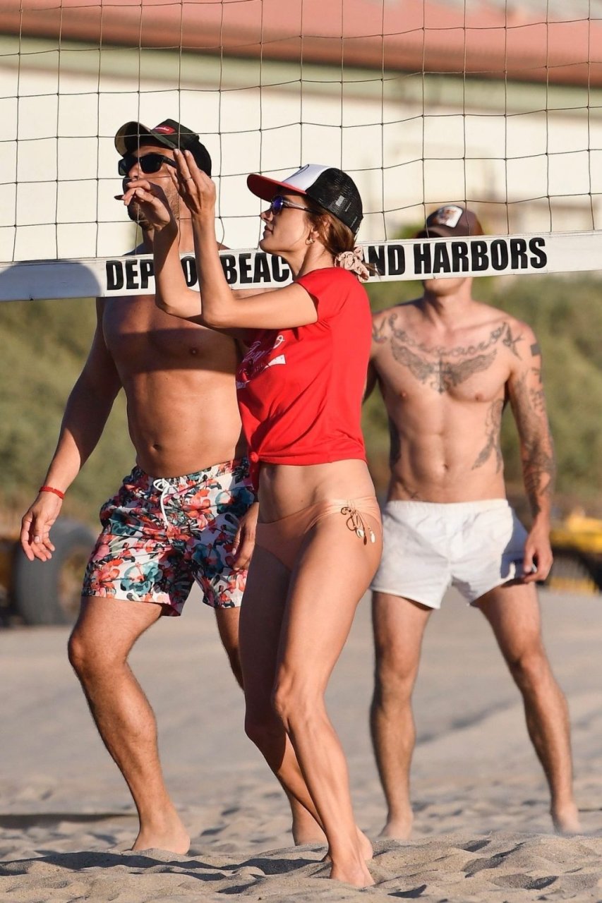 La bomba brasileña Alessandra Ambrosio disfruta de un día divertido en la playa de Santa Mónica jugando voleibol con sus amigos, 26/10/2019.