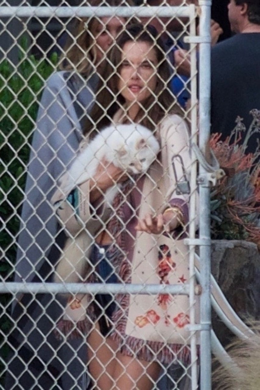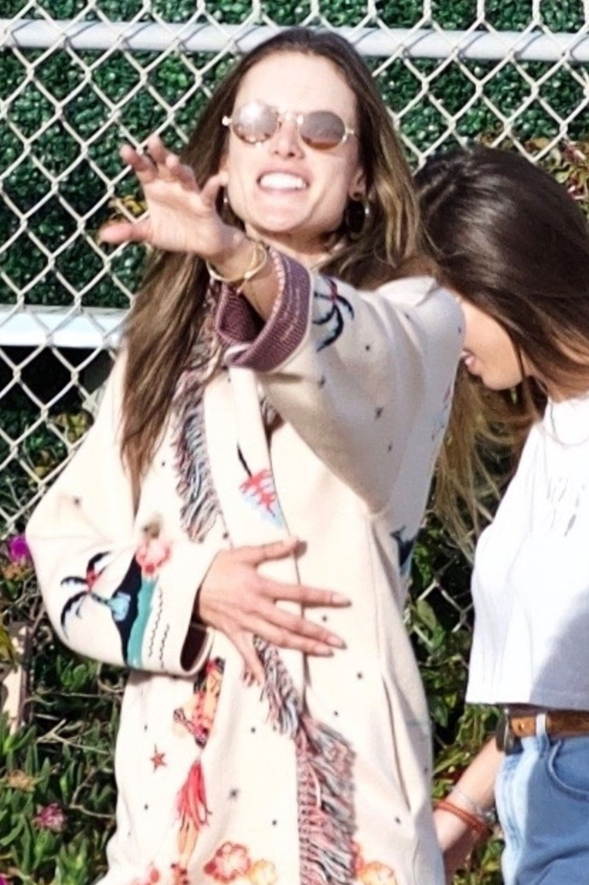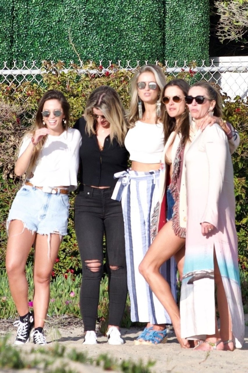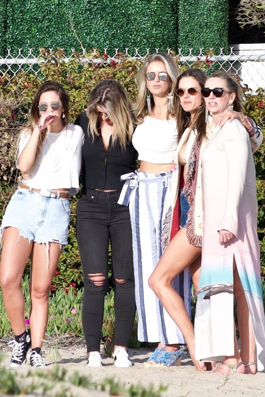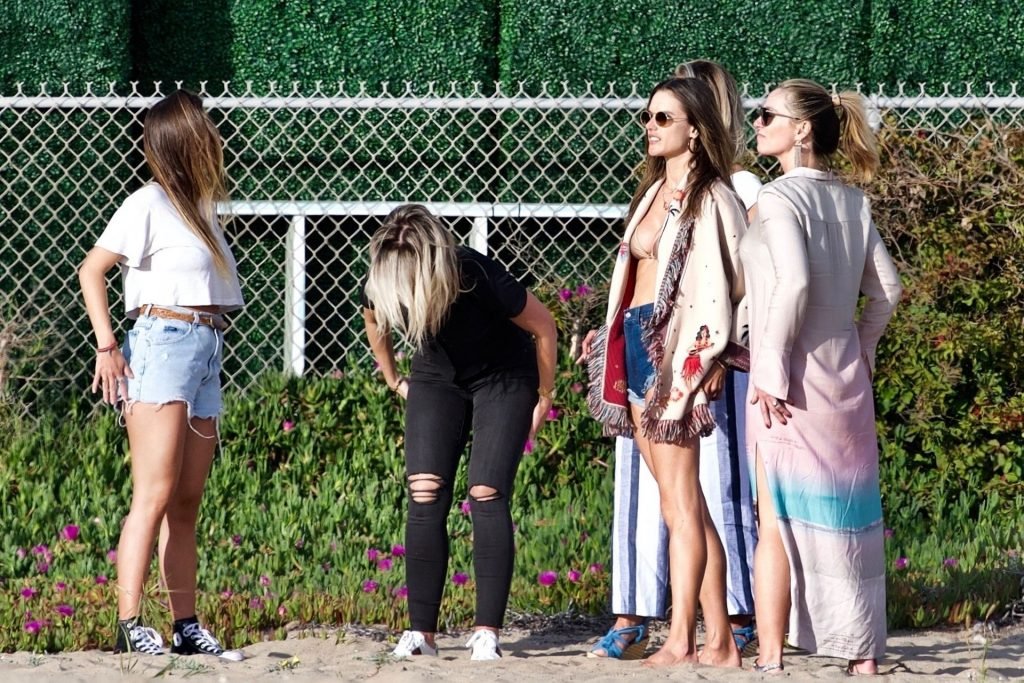 Alessandra Ambrosio festeja con amigos en la playa de Malibu, CA, 07/04/2019. La modelo luego se aparta para disfrutar de un poco de PDA con su novio Nicolo Oddi.