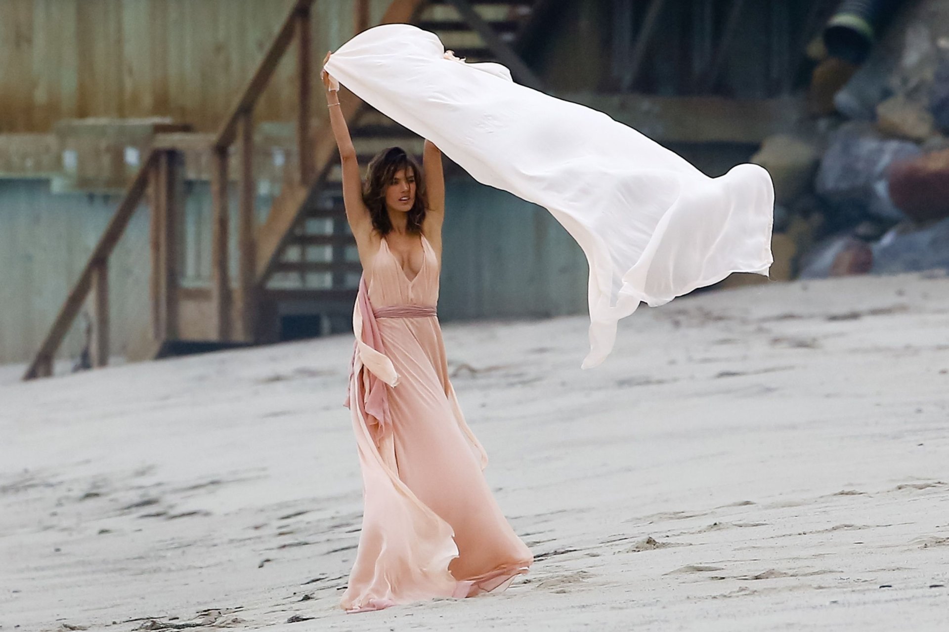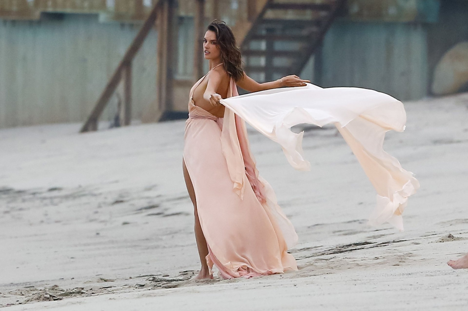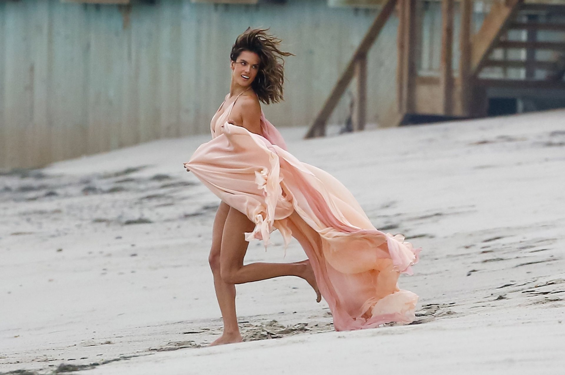 Alessandra Ambrosio usando tanga en el set de una sesión de fotos en Malibu, 10/06/16. ¡El vestido es espectacular! Alessandra Ambrosio es una modelo brasileña. Edad: 35 (11 de abril de 1981). Altura 177 cm.