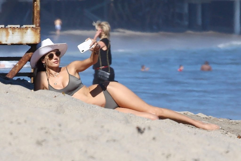 Paparazzi captaron a Alessandra Ambrosio mientras disfruta un día en bikini en la playa de Malibu, 22/07/2018. Millones de fans apreciaron su figura de modelo, su pequeño trasero y sus piernas delgadas.