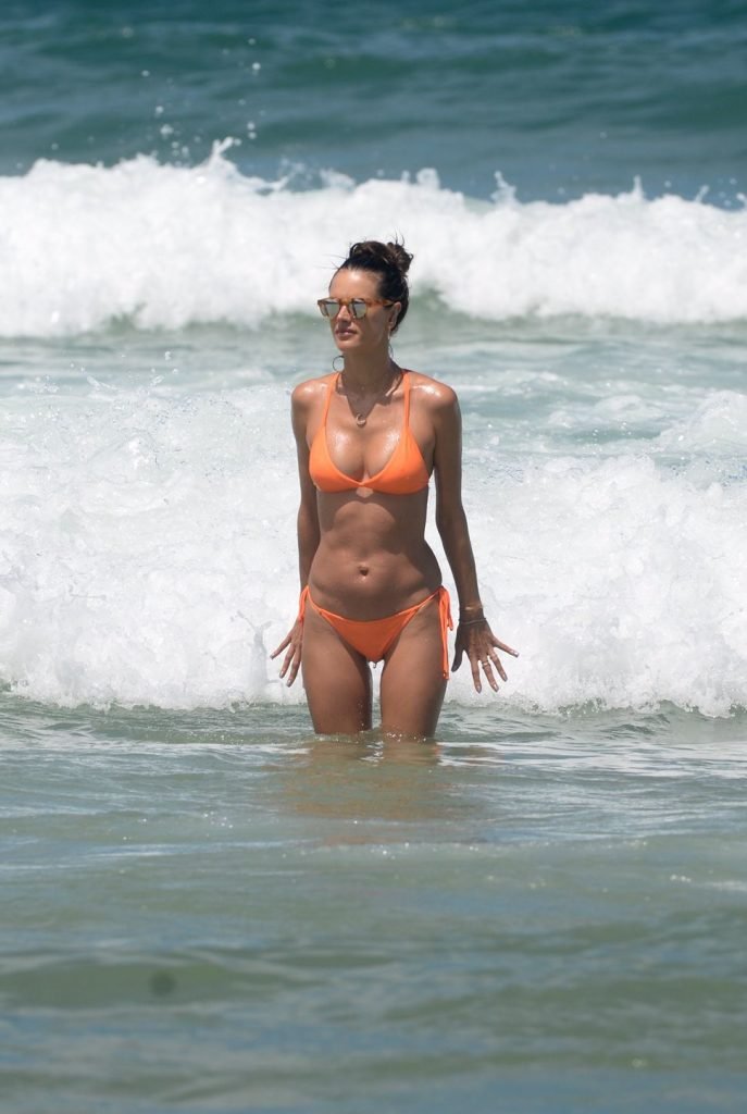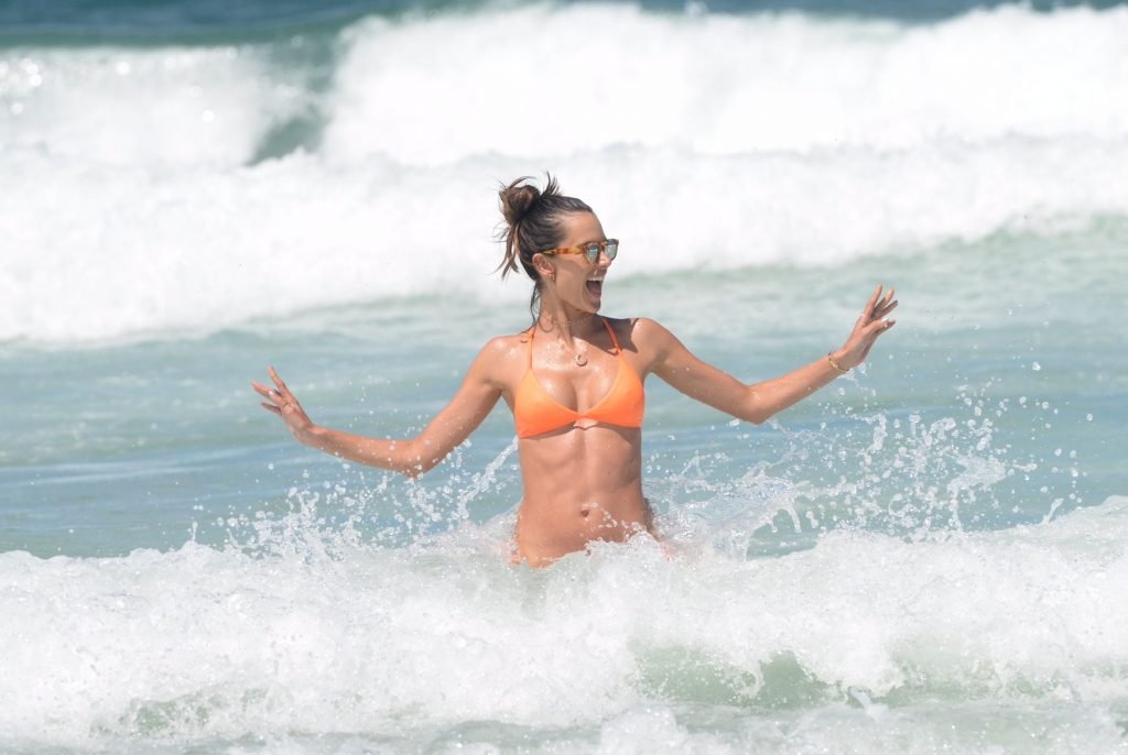 Modelo y actriz Alessandra Ambrosio, 36, disfruta de la playa en Florianópolis, 31/12/2017.