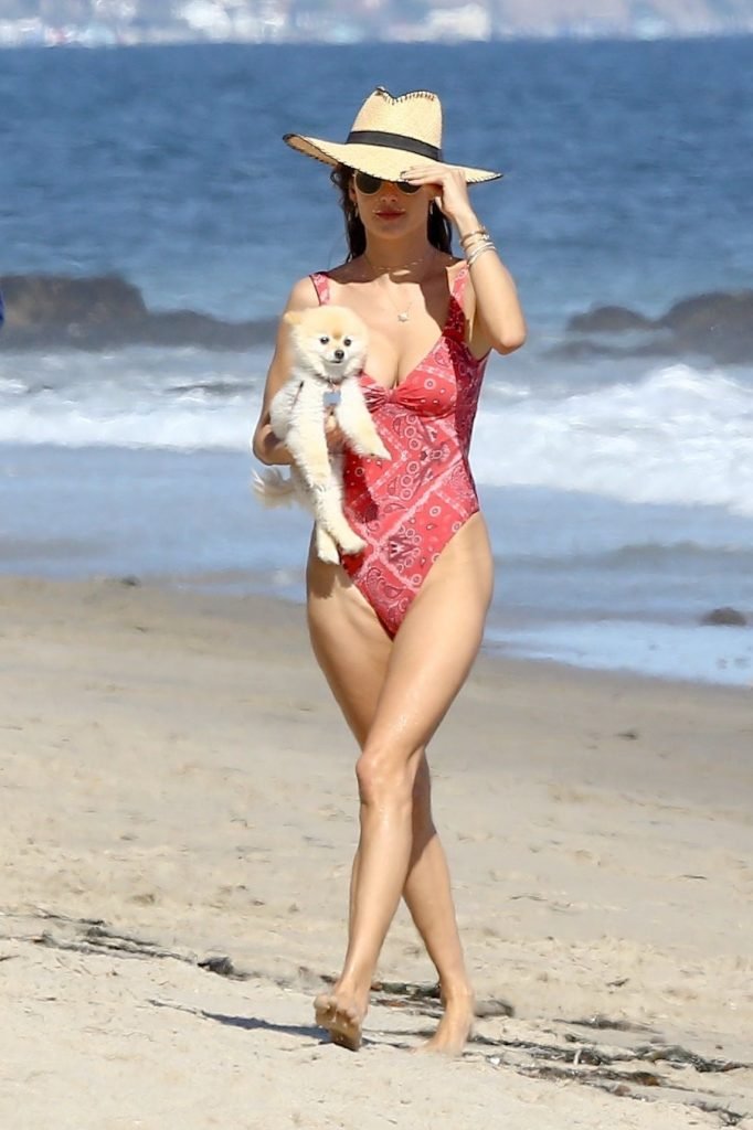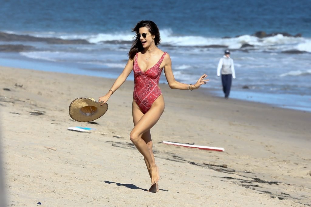 Alessandra Ambrosio lleva un sexy traje de baño en la playa de Malibu, 29/05/2017. Alessandra Ambrosio es una supermodelo brasileña, actriz (Daddy’s Home 2). Edad – 36 años.