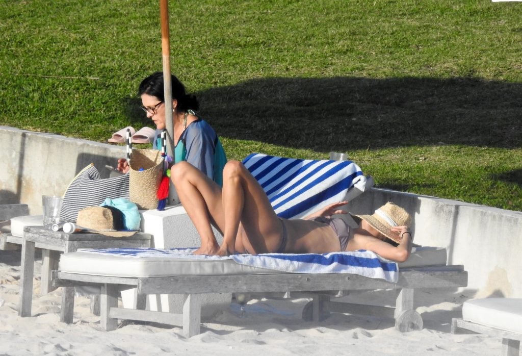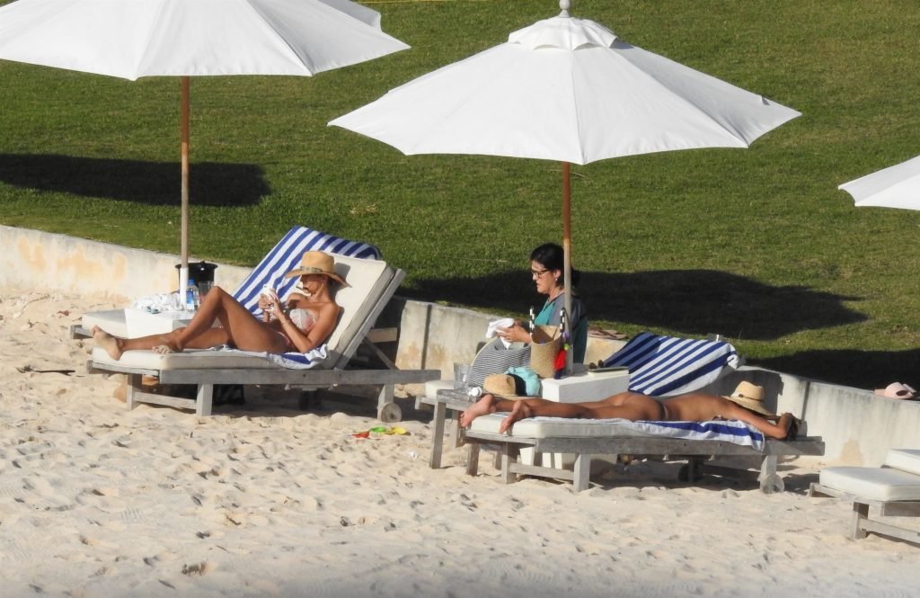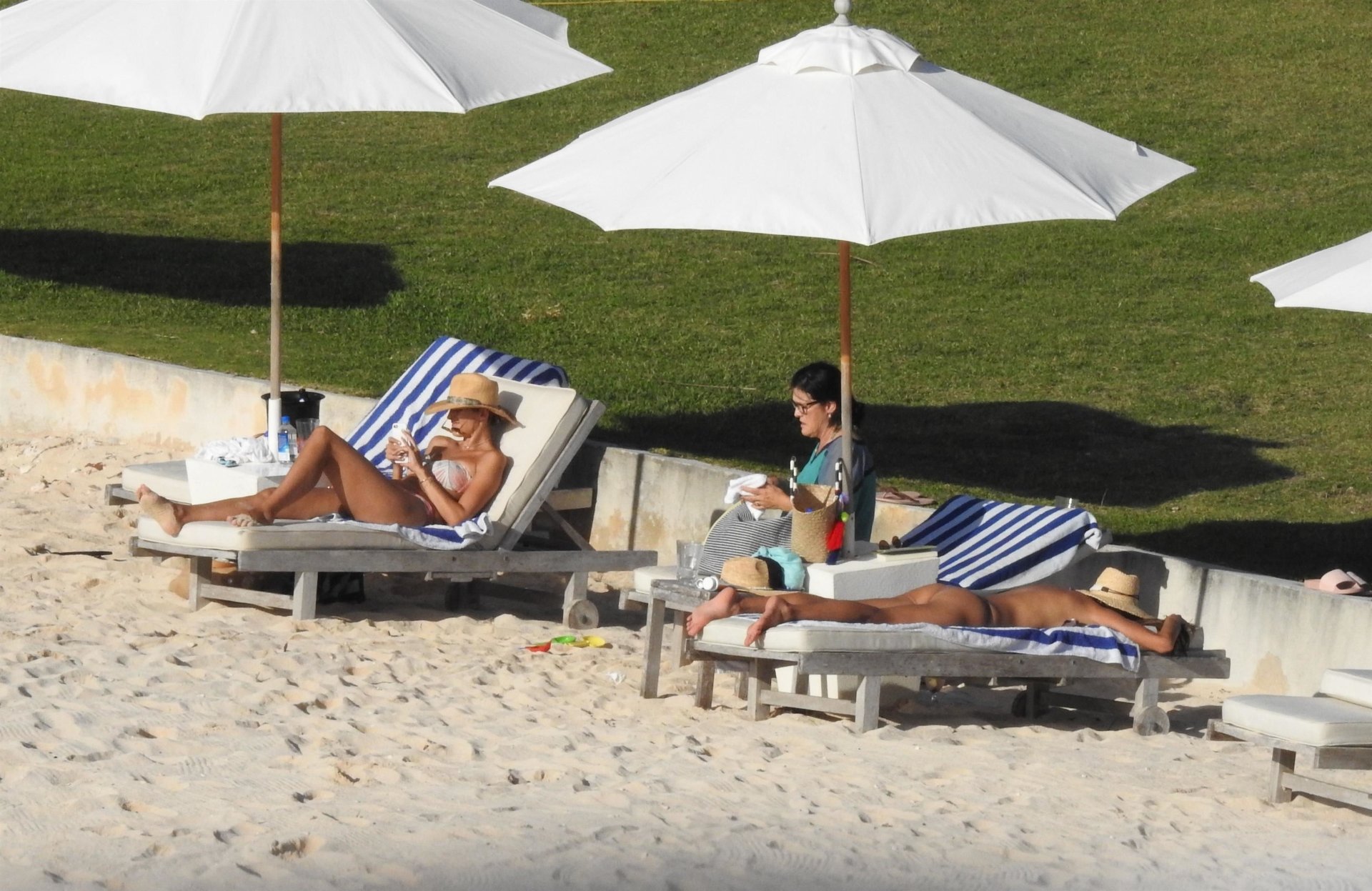 A esta señora le gusta mucho la playa {quizás le gusta que la fotografíen.} ¿Dónde vive? En los últimos dos meses la he visto en fotos de playas en Brasil, Malibu, Miami {creo} y ahora en las Bahamas. ¿Le gusta esquiar? ¿Qué tal Aspen? ¿Escalar montañas? Me encantaría ver una foto de ella escalando el Matterhorn.
