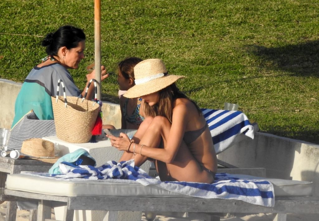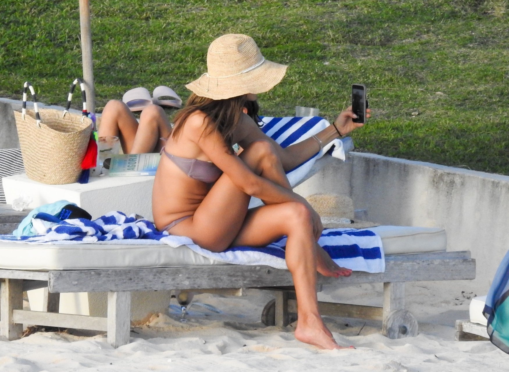 Alessandra Ambrosio, 36, se broncea mientras está de vacaciones en la playa de las Bahamas, 02/09/2018. El ángel de Victoria’s Secret lleva un pequeño bikini morado para divertirse bajo el sol.