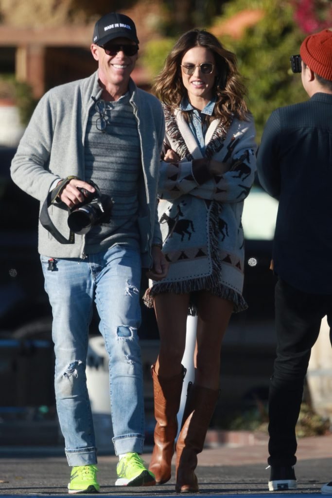 Recién llegada de un viaje a México, la juguetona modelo Alessandra Ambrosio muestra su cuerpo de playa con un traje de baño de una pieza revelador y botas de montar durante una sesión de fotos en la playa de Malibu. 21/02/2018.