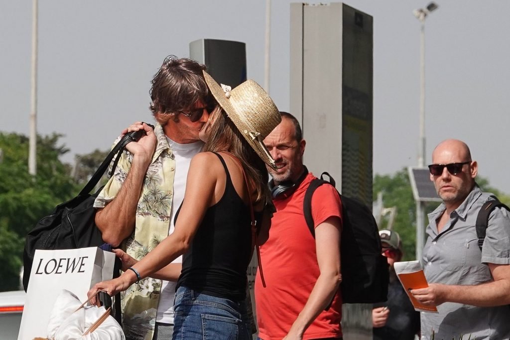 La modelo brasileña Alessandra Ambrosio llegó al Aeropuerto de Ibiza compartiendo un momento íntimo y apasionado con su novio, el diseñador de moda Nicolo Oddi, mientras la pareja comienza sus vacaciones juntos en la isla española, 07/08/2019.