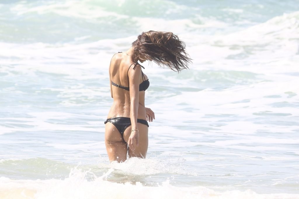 La modelo brasileña Alessandra Ambrosio causa sensación con un sexy bikini negro mientras está en las playas de Porto Alegre, Brasil, 07/02/2019.