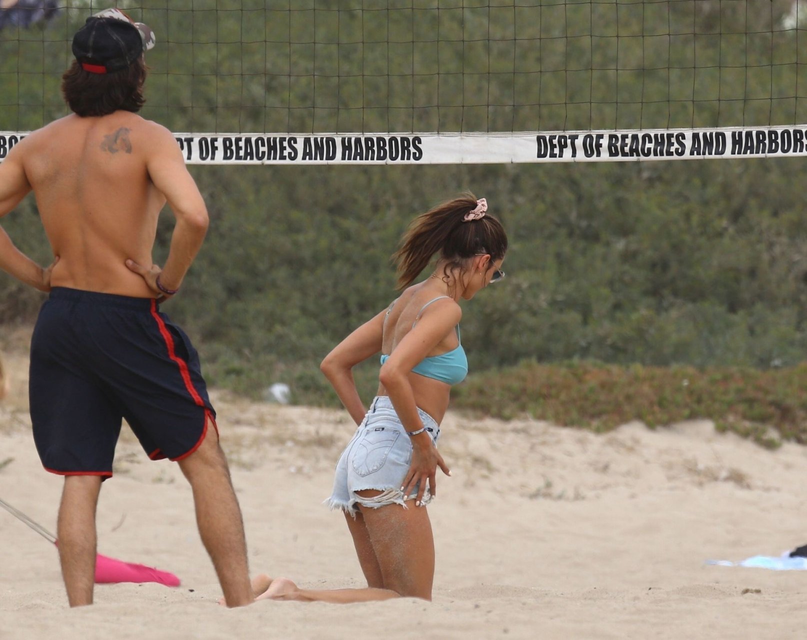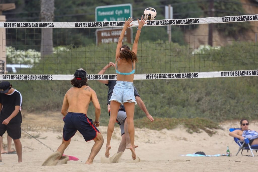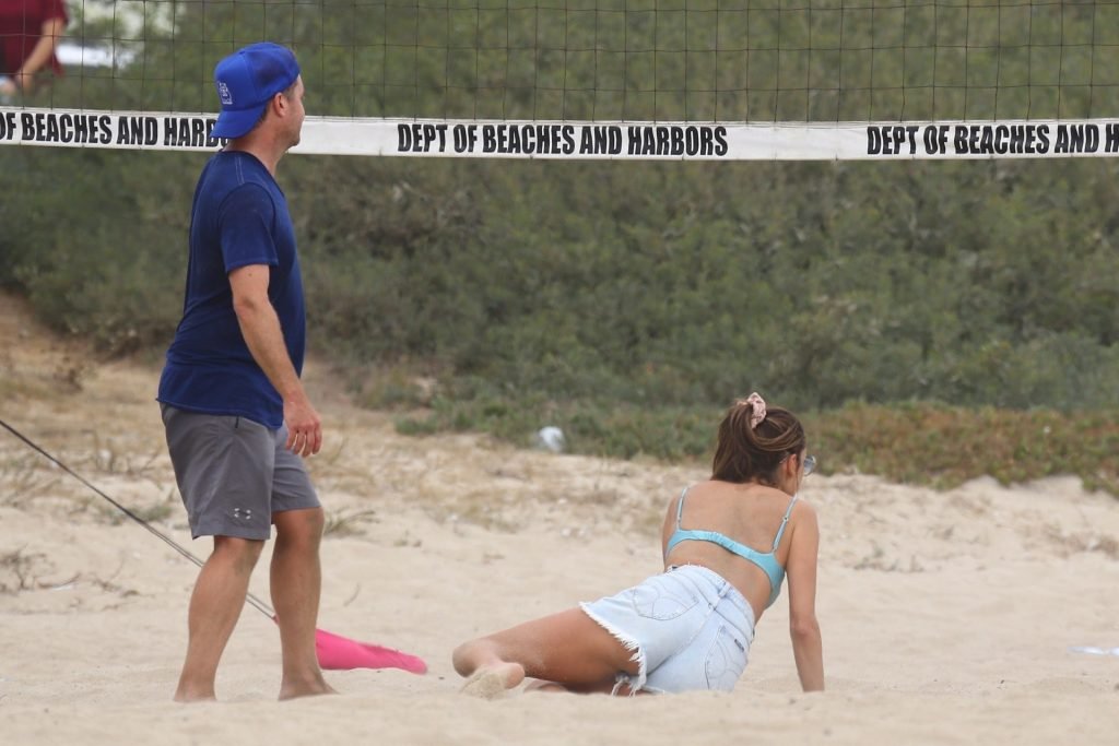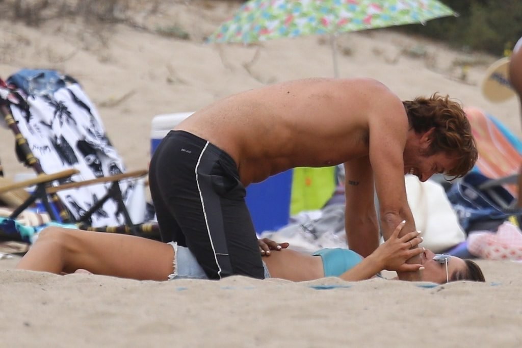 La supermodelo brasileña jugó voleibol con sus amigos y se la pudo ver tomando chupitos y besándose con su pareja entre los juegos antes de irse en su bicicleta.