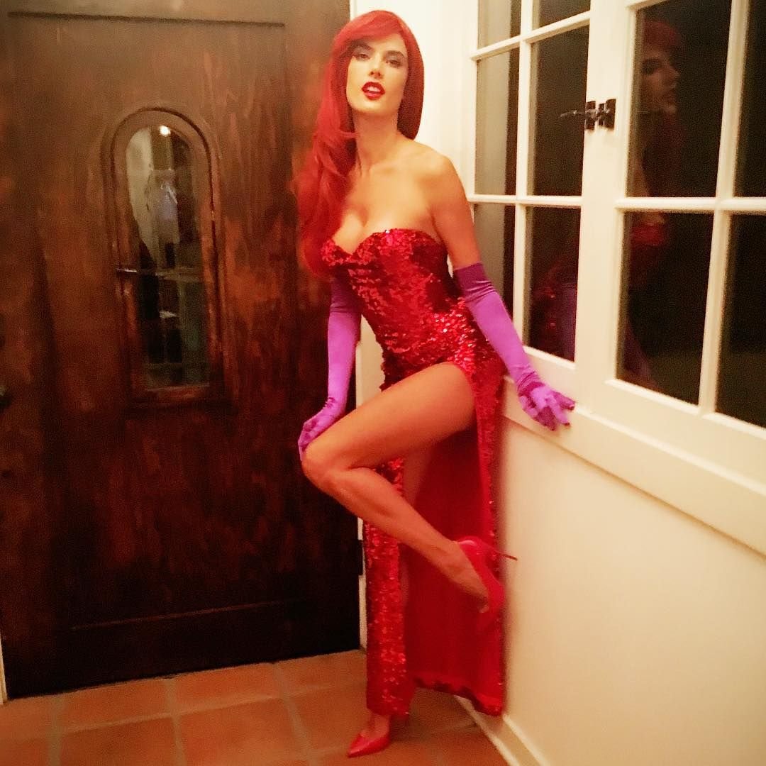 Alessandra Ambrosio muestra su profundo escote con un disfraz de Jessica Rabbit en la fiesta de Halloween de Casamigos en Los Ángeles, 28/10/2016. Alessandra Ambrosio es una modelo brasileña. Edad: 35 (11 de abril de 1981). Altura 177 cm.