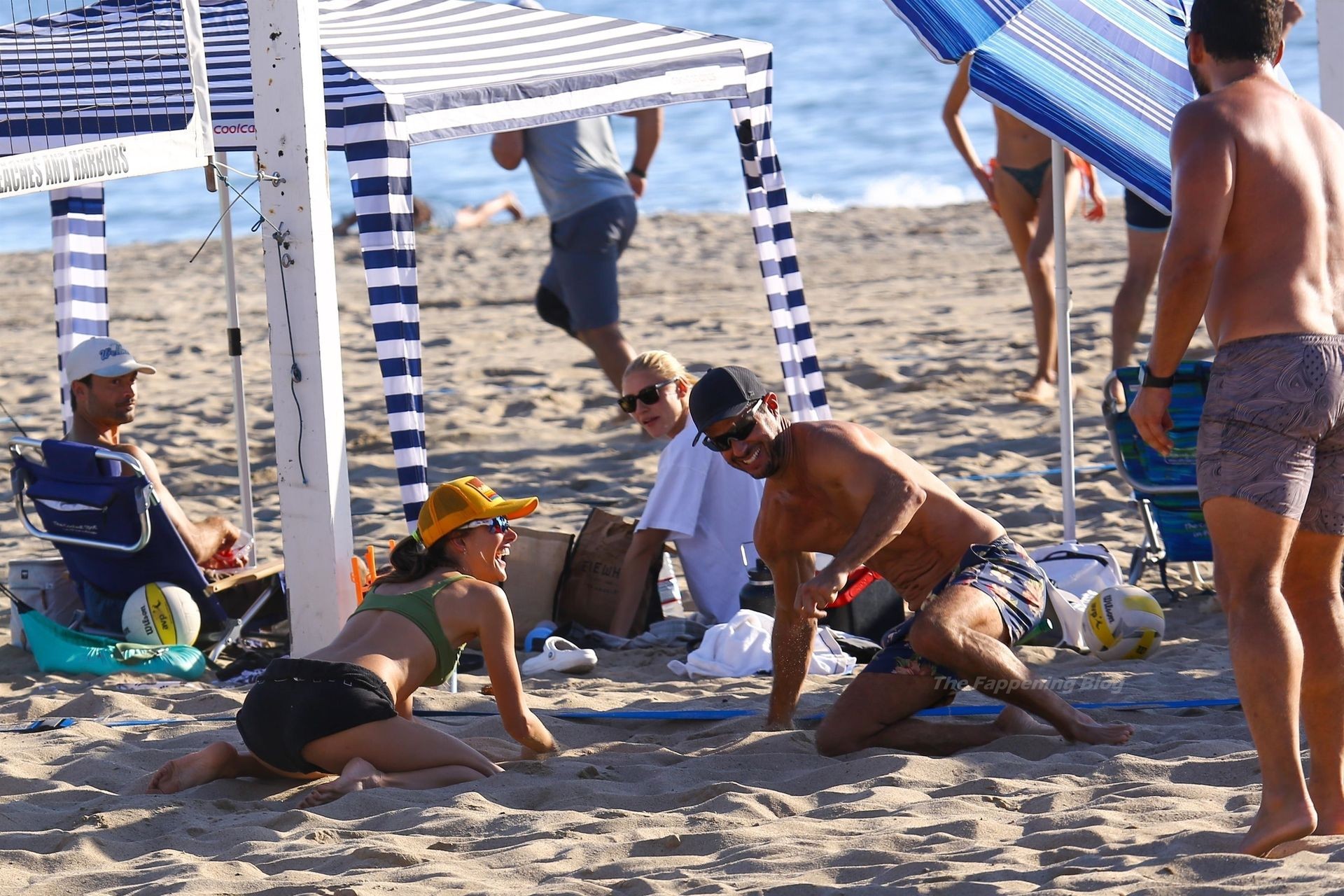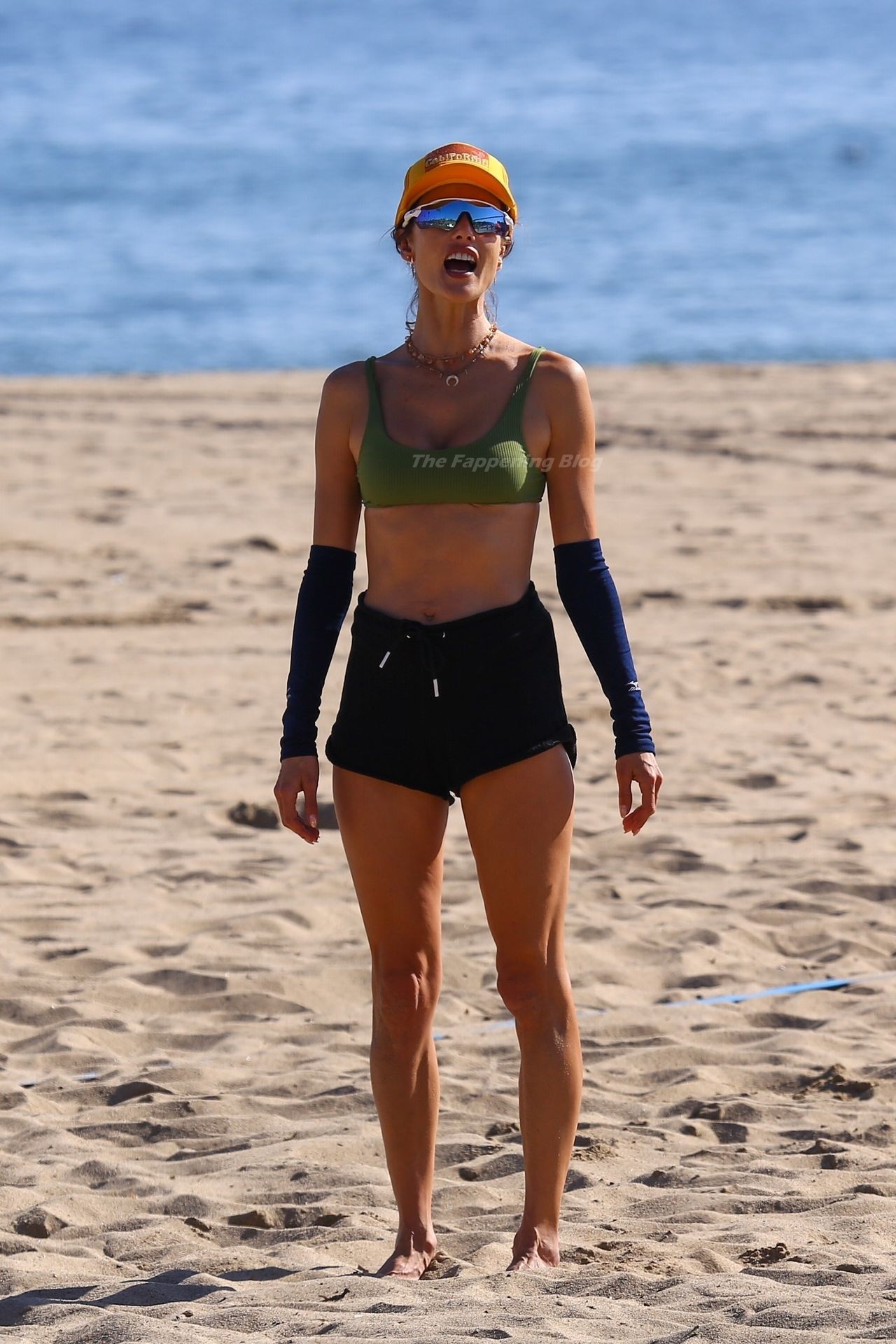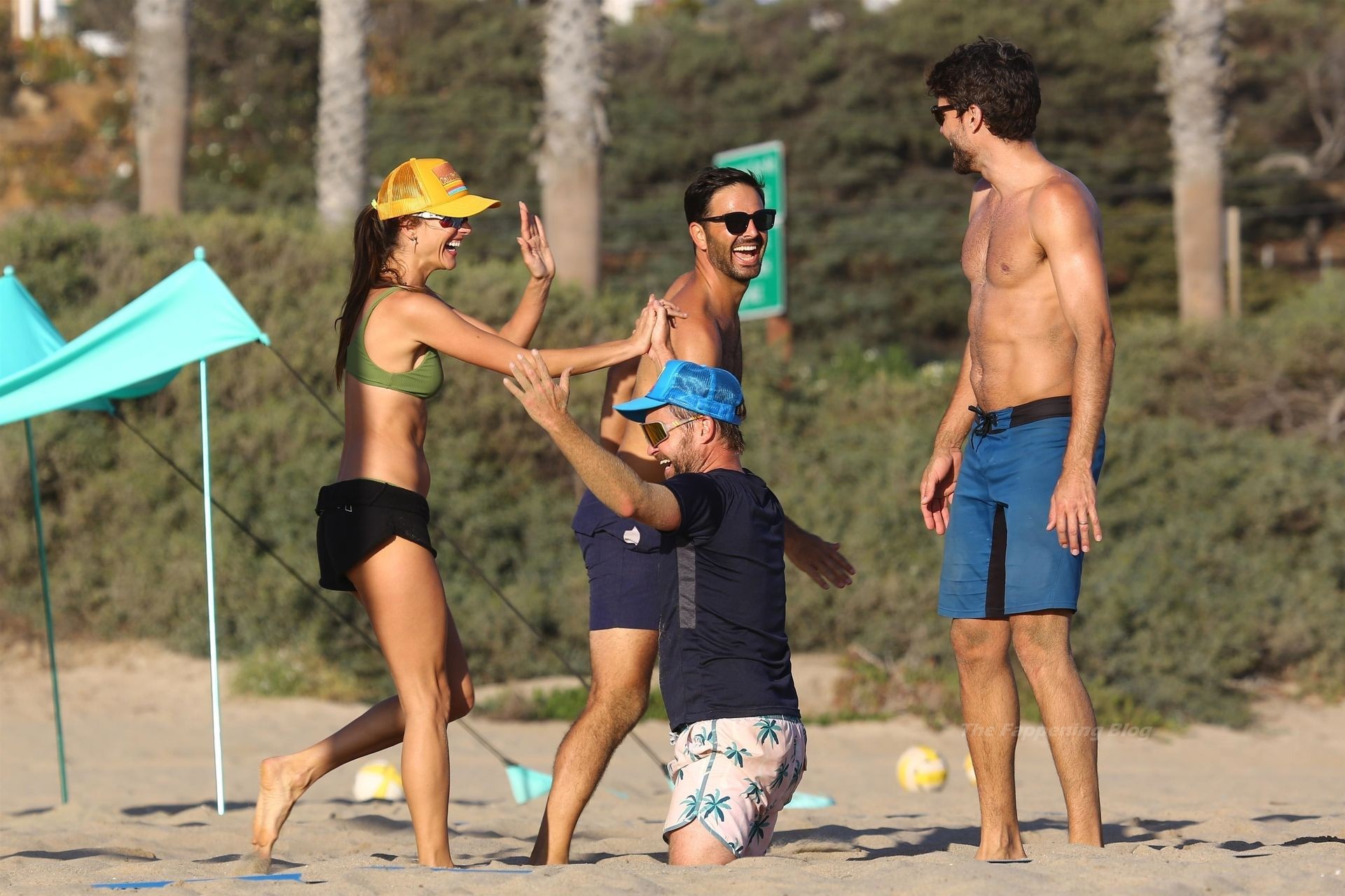 Alessandra Ambrosio exhibe una figura increíble en un bikini verde mientras juega voleibol de playa en Santa Mónica con amigos, 10/10/2021.