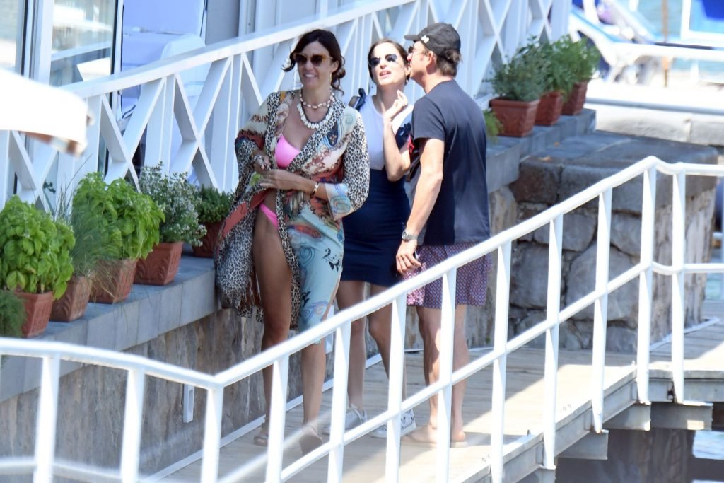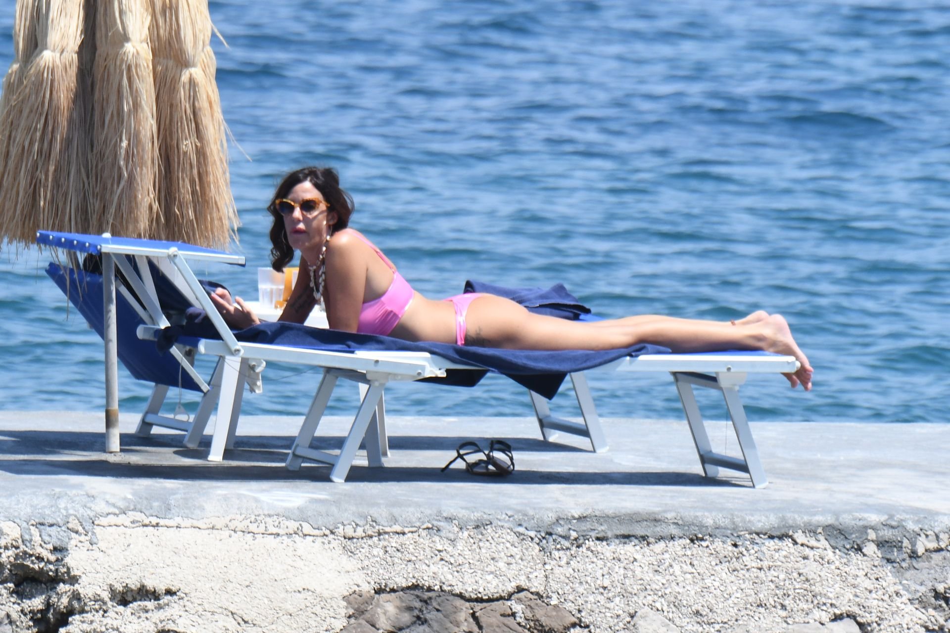 Presentadora de televisión italiana, modelo y bailarina Alessia Fabiani fue vista con un bikini rosa en el Hotel Regina Isabella como invitada del Festival Global de Ischia, 18/07/2019.