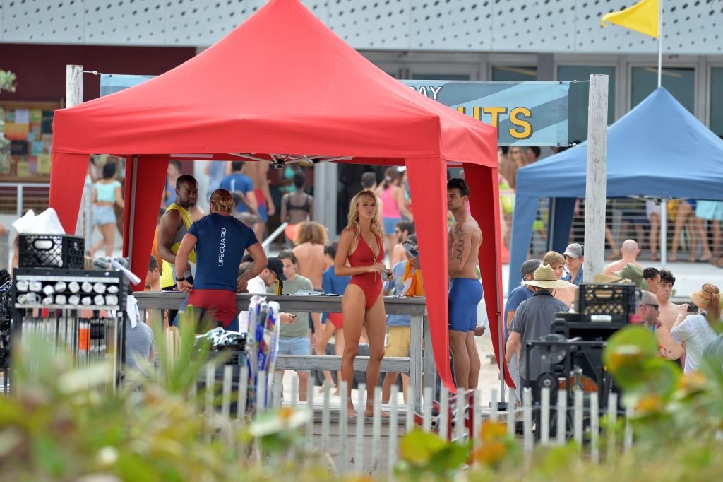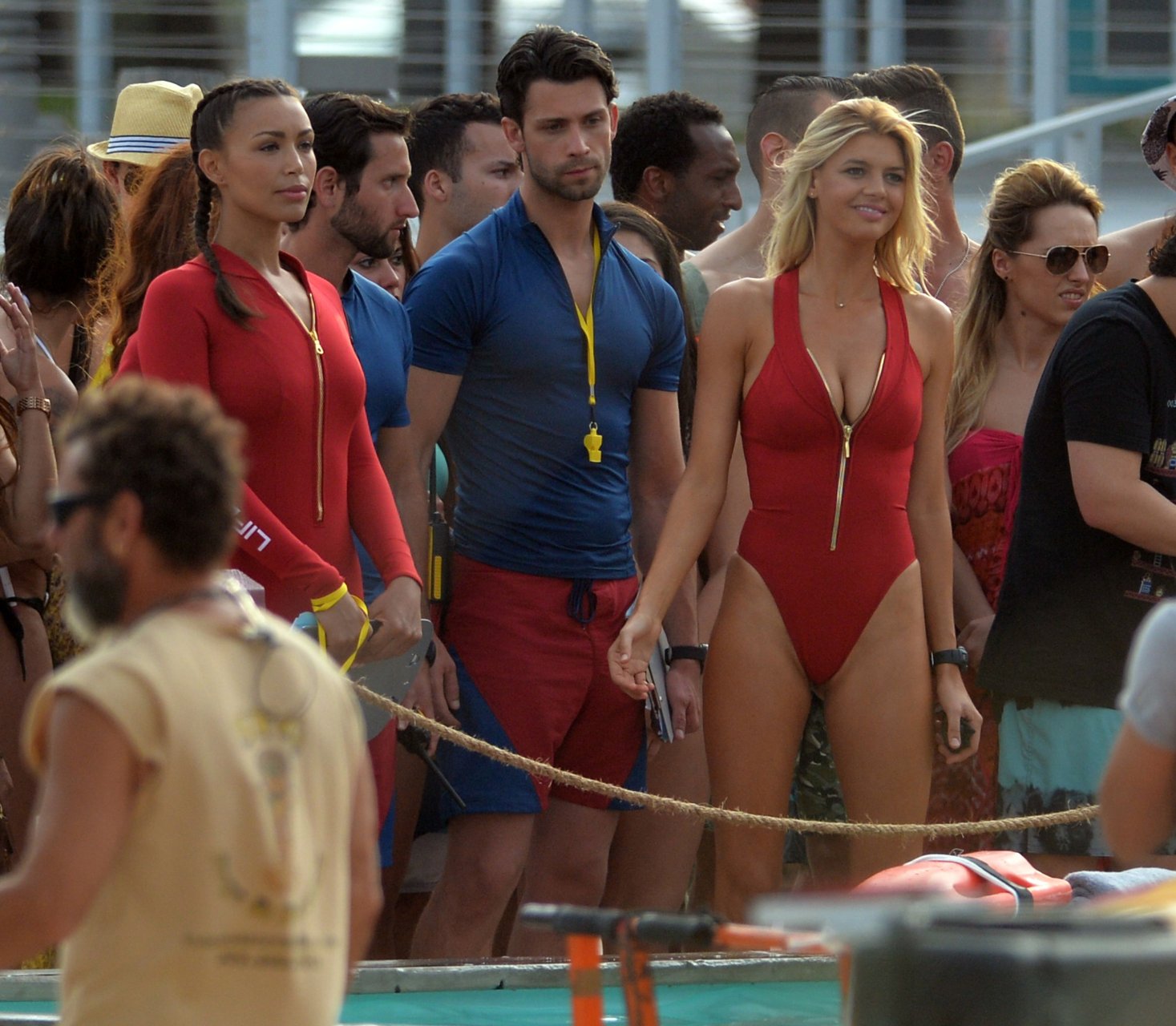 Alexandra Daddario, Ilfenesh Hadera y Kelly Rohrbach en la playa filmando una escena para ‘Baywatch’, 08/03/2016 + otro video BTS.