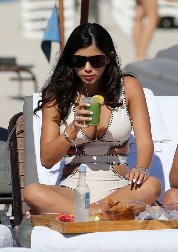 Justin Bieber’s exnovia Alexandra Rodriguez muestra sus curvas con un traje de baño de una pieza en la playa de Miami, 15/12/2017.