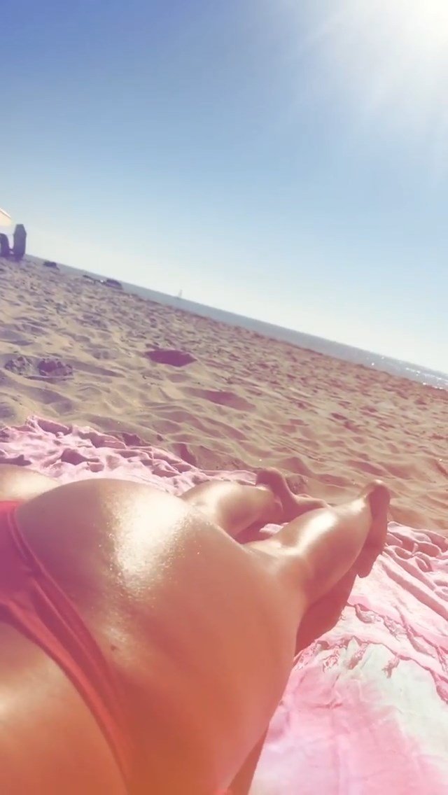 Ella no está completamente despistada, se cubre cuando está de pie porque sabe que la desnudez es ilegal en las playas de California. Por cierto, sabe que puedes estar sin camiseta si estás acostada boca abajo.