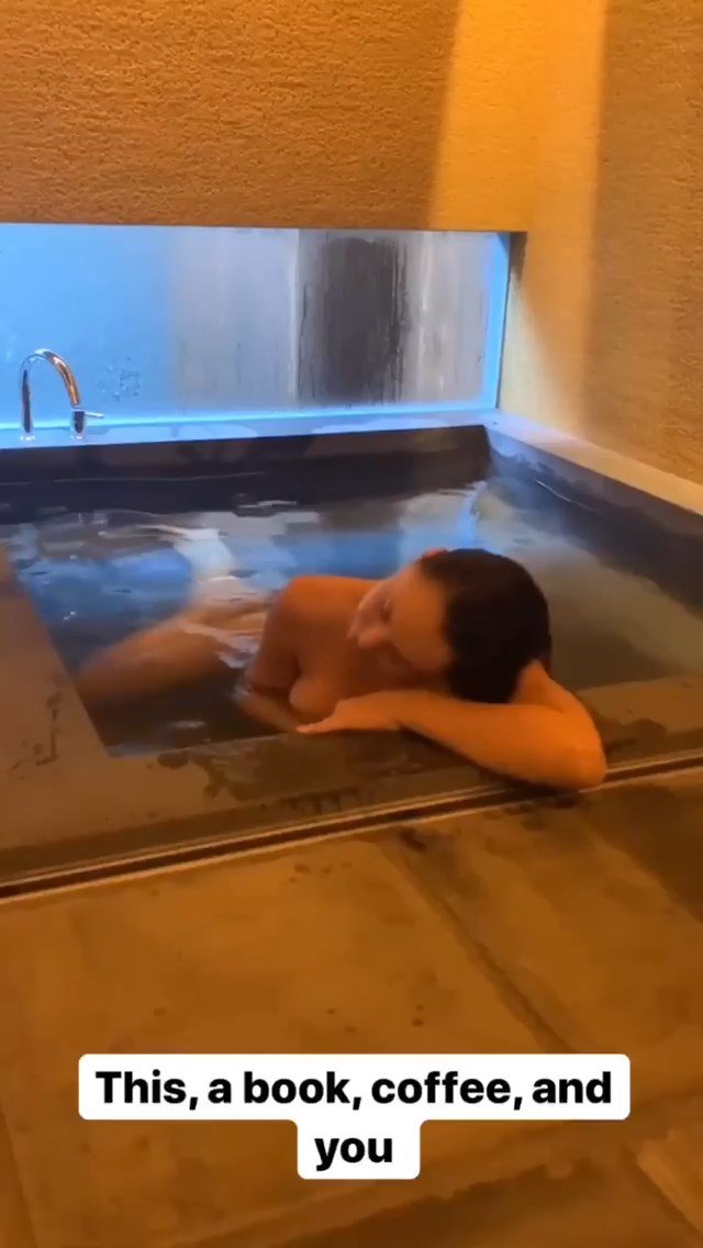 Model Alexis Ren publicó algunas fotos y un video desnuda (cubierta) mientras tomaba un baño en un hotel durante sus vacaciones en Japón – Instagram, 07/04/2019.