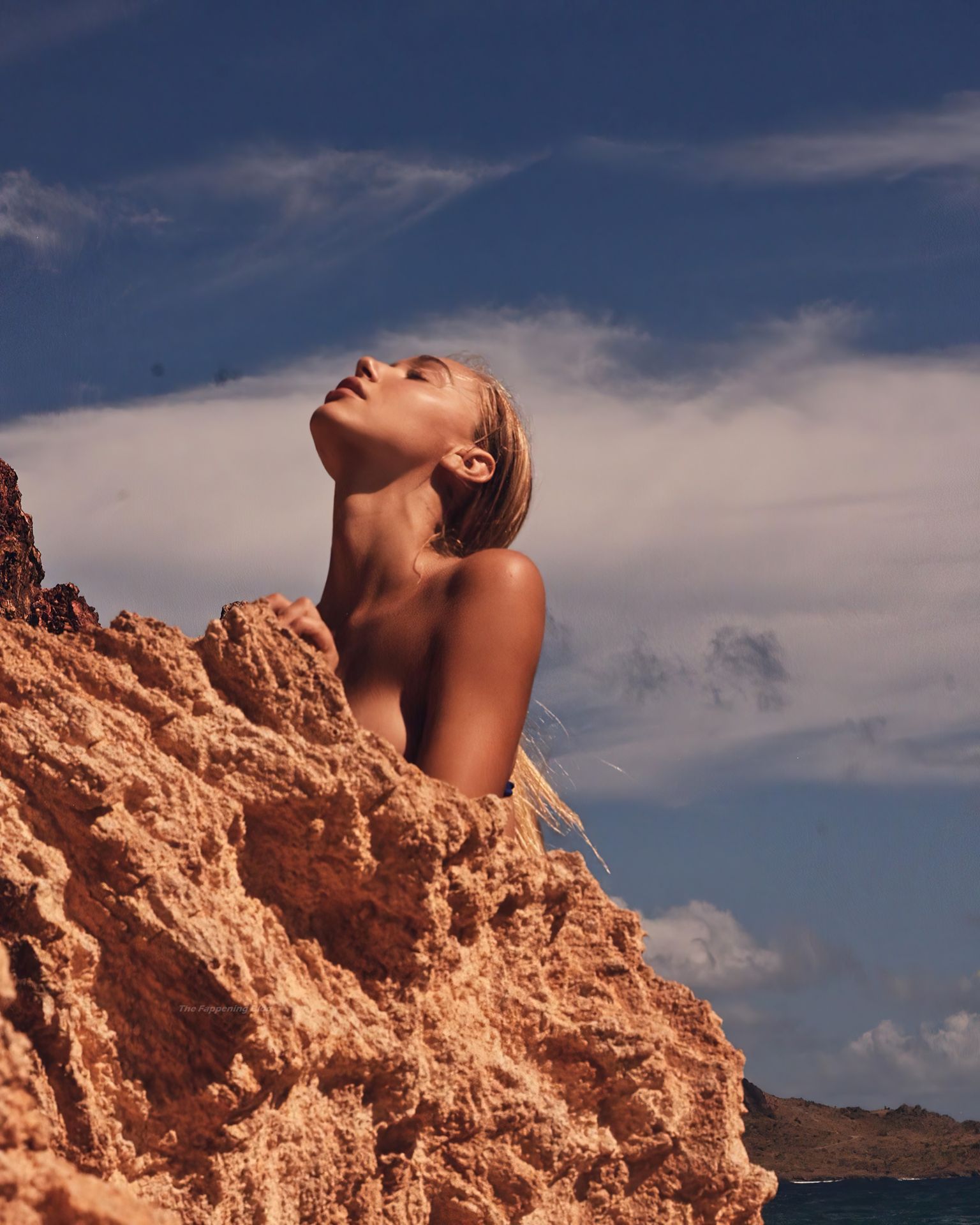 La modelo/bailarina estadounidense Alexis Ren posa con un bikini diminuto, mostrando su impresionante figura en una nueva sesión de fotos realizada por Melissa Cartagena en México (2021).