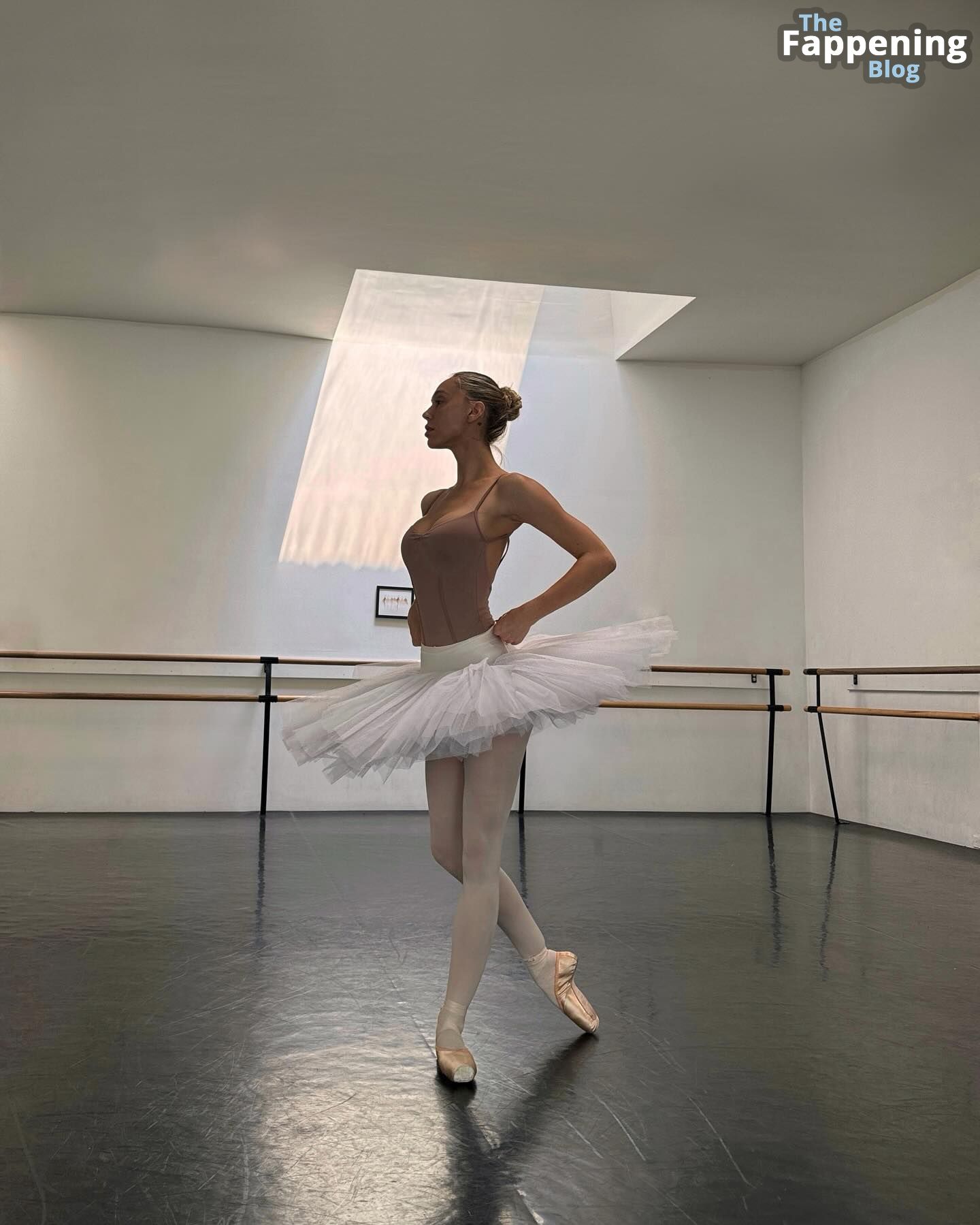 Para alguien que tiene 27 años, parece tener 37. Aun así, dada su flexibilidad en esa barra de ballet, todavía me sirve que la follen bien en esa posición. Sí, estoy para complacer…