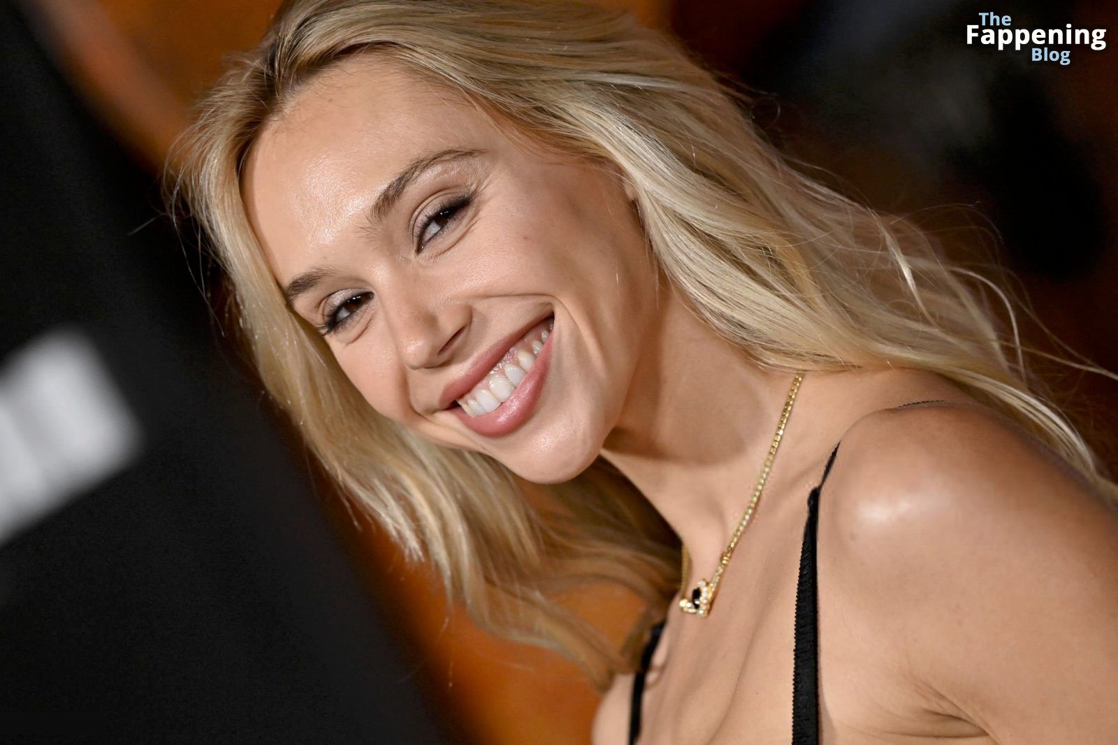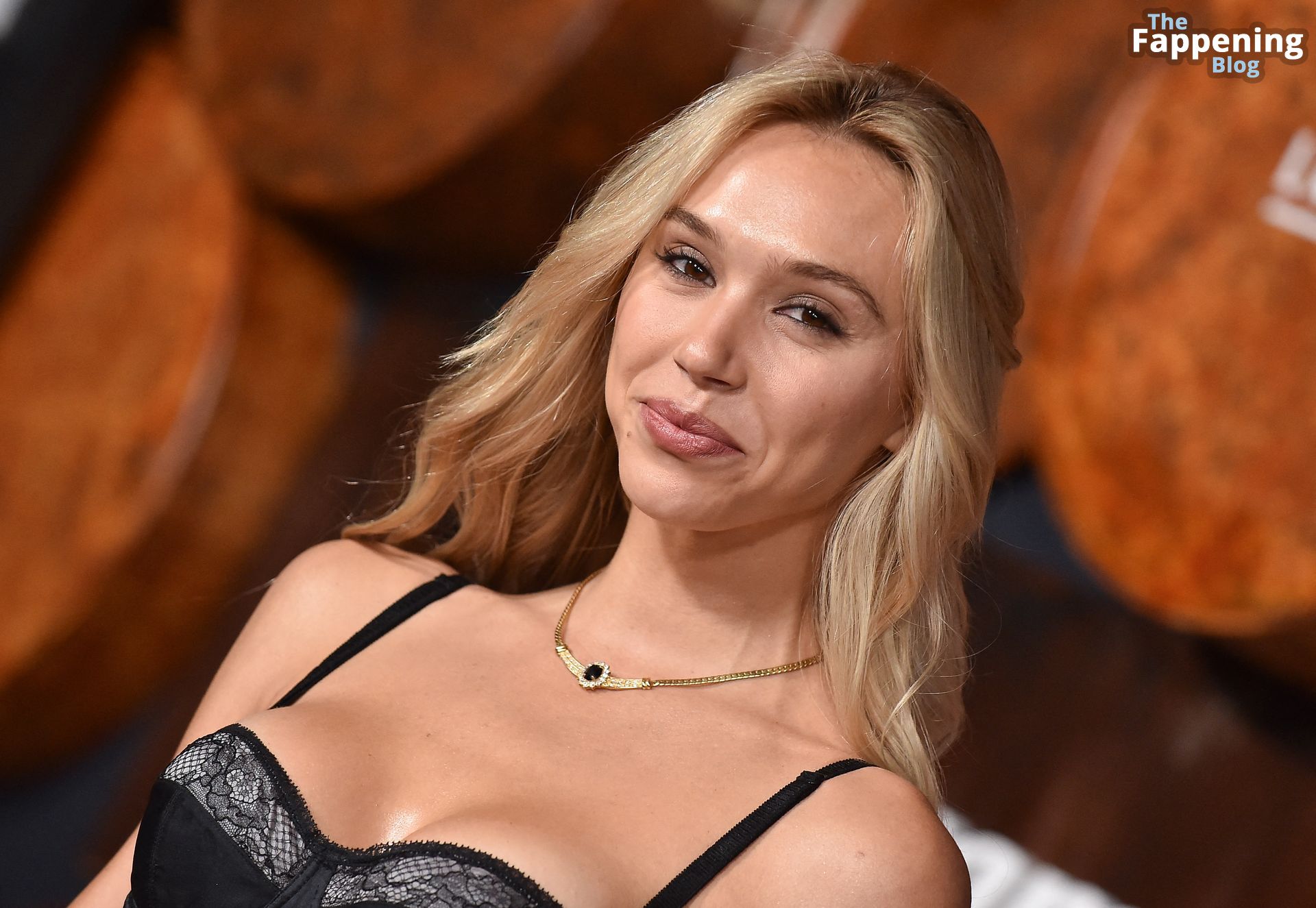 Alexis Ren luce sus sensuales pechos en un vestido negro en el estreno de