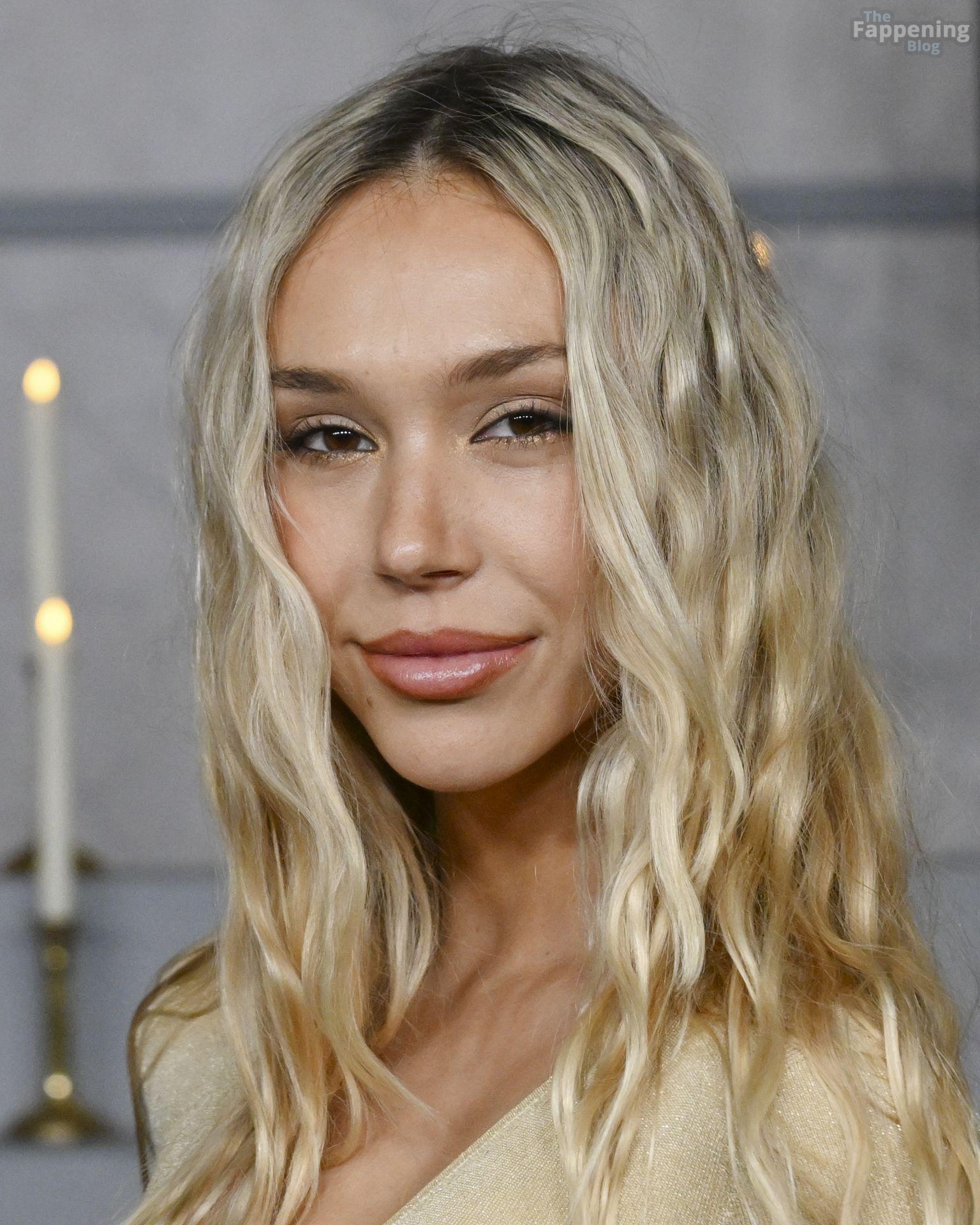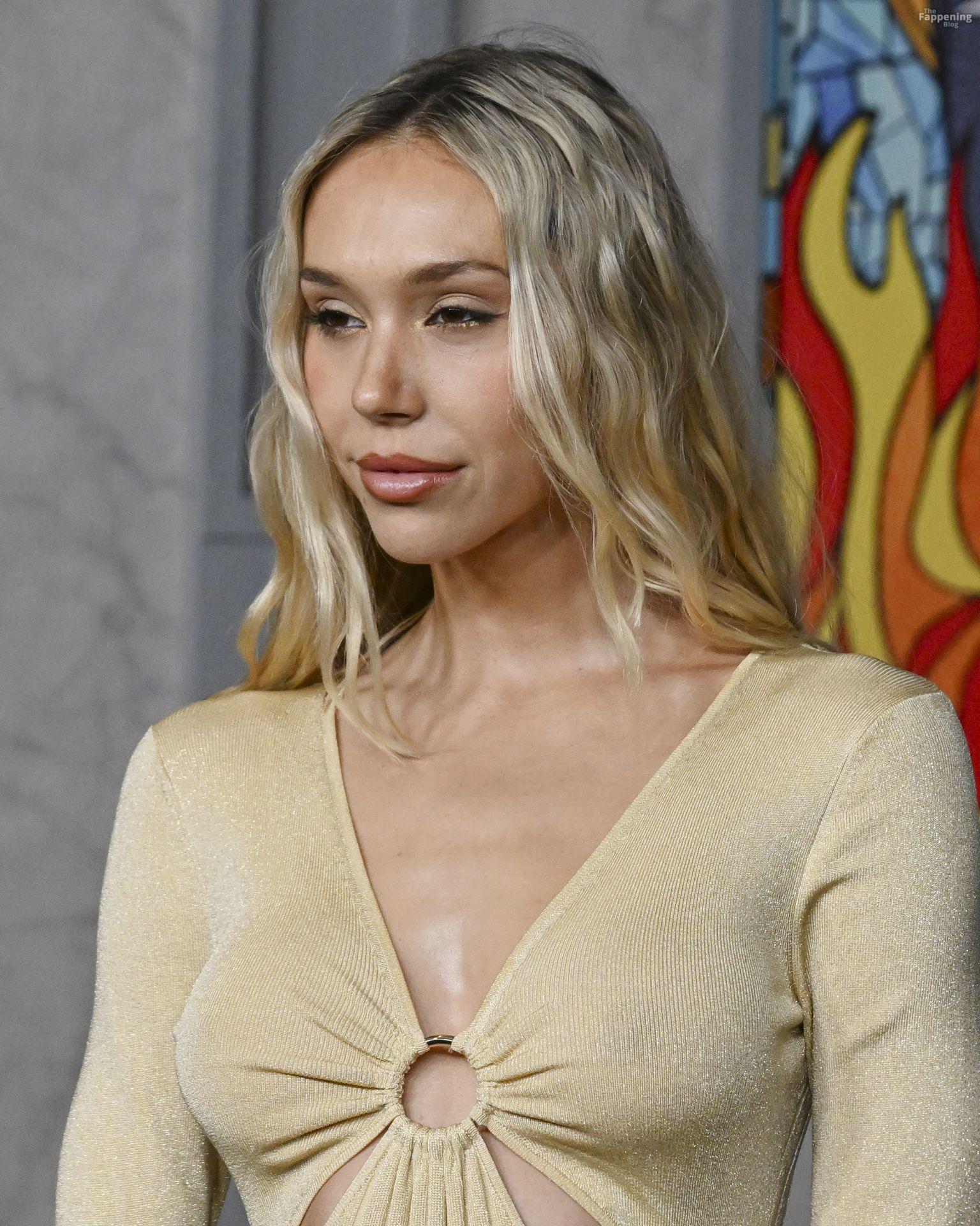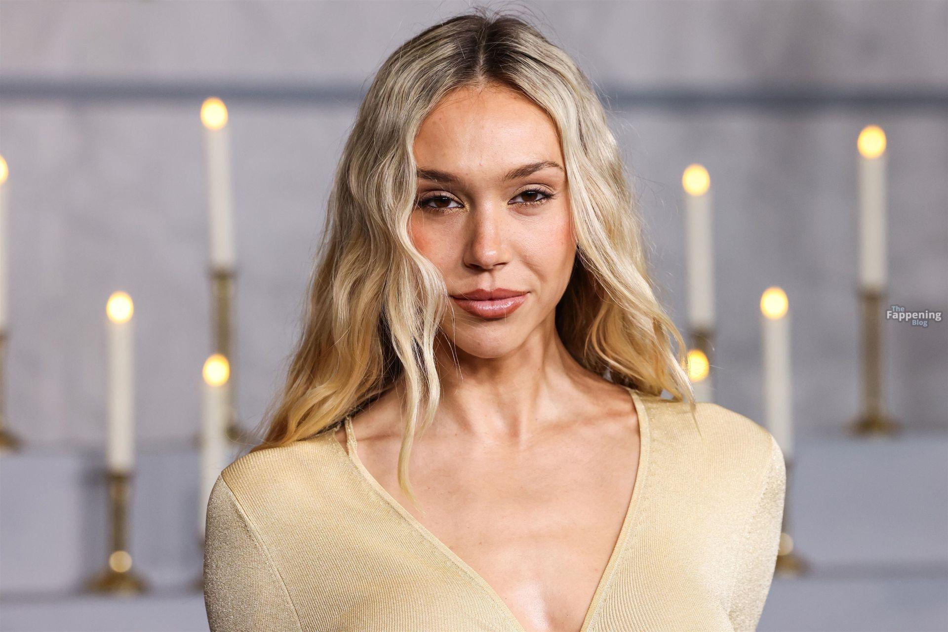 Alexis Ren luce espectacular con un vestido ajustado con recortes en el estreno en Los Ángeles de ‘Wake Up Dead Man: A Knives Out Mystery”.