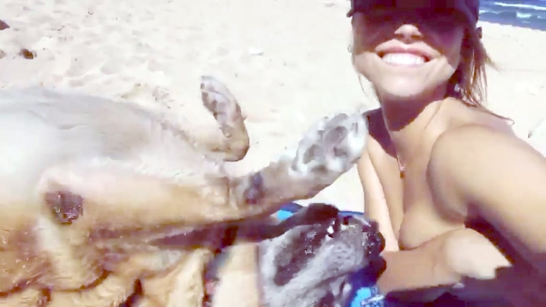 ¿Ella realmente ama a ese perro, verdad? Quizás un poco demasiado.