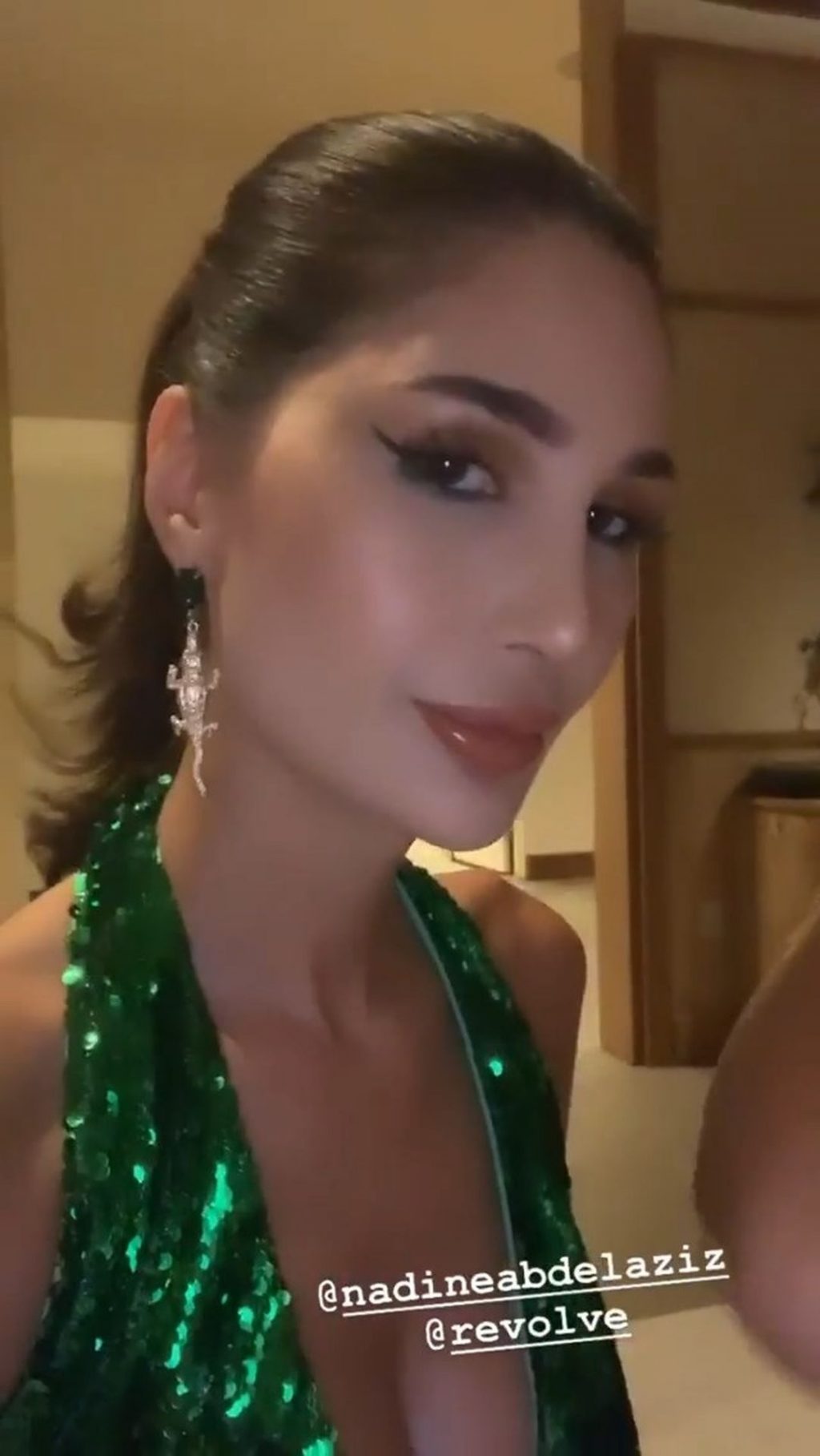 La estrella libanesa de reality Alice Abdel Aziz fue vista con un vestido verde en los 3ros Premios Anuales #REVOLVEawards 2019 celebrados en Goya Studios en Hollywood, 15/11/2019.