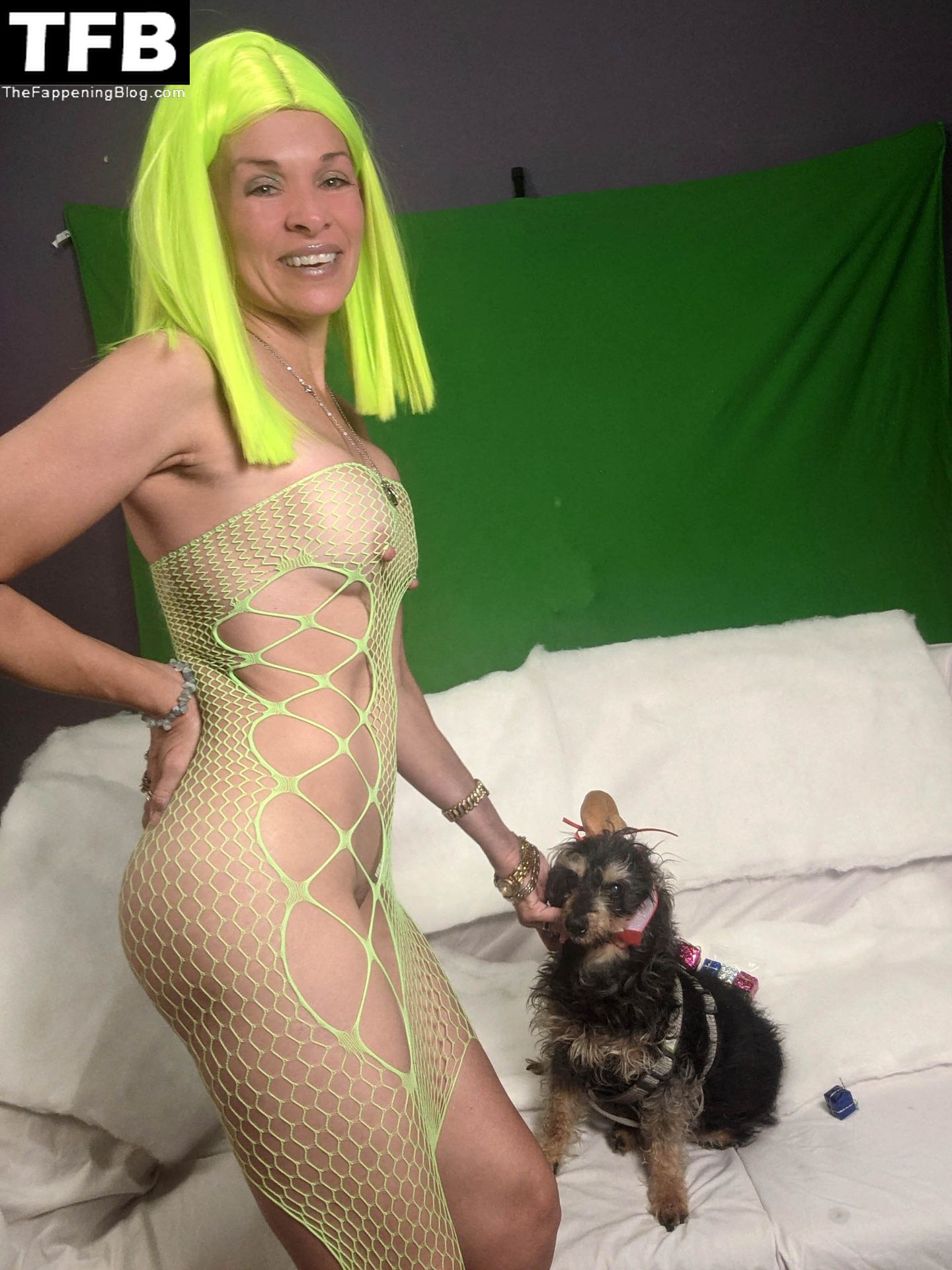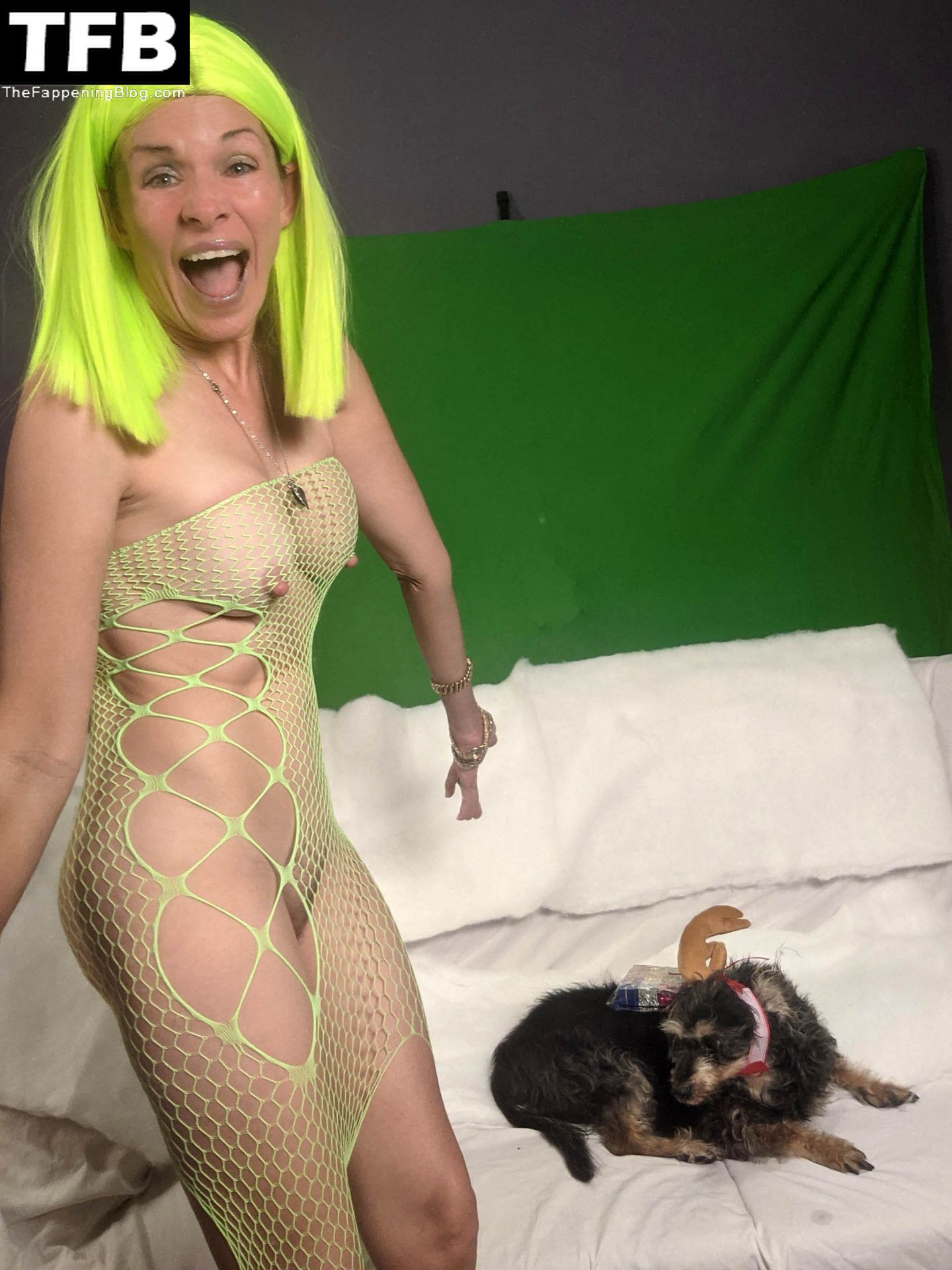 La actriz de “Baywatch” Alicia Arden muestra su disfraz de Halloween como una Grinch sexy y mayormente desnuda, acompañada de Max el perro, pero también es para fotografiar su tarjeta de Navidad, que llevará la leyenda “Feliz Grinch-mas” (octubre de 2021).