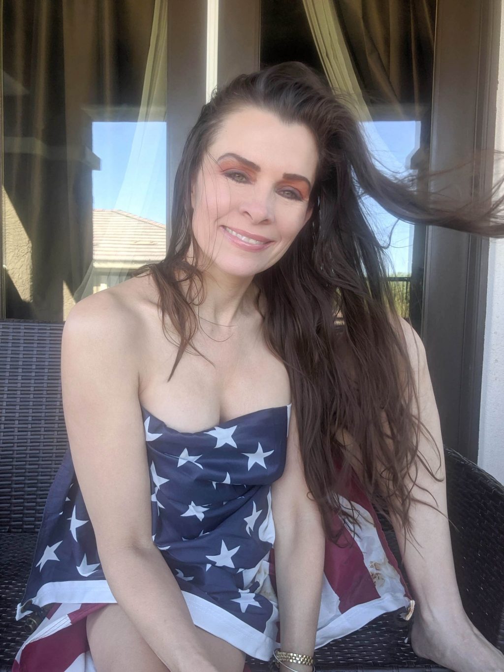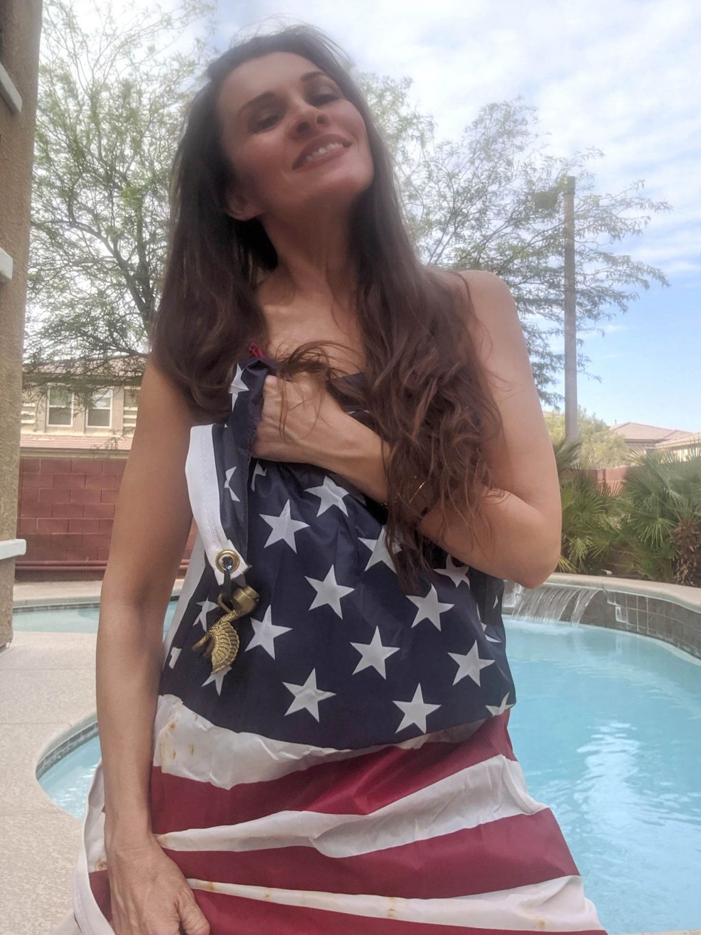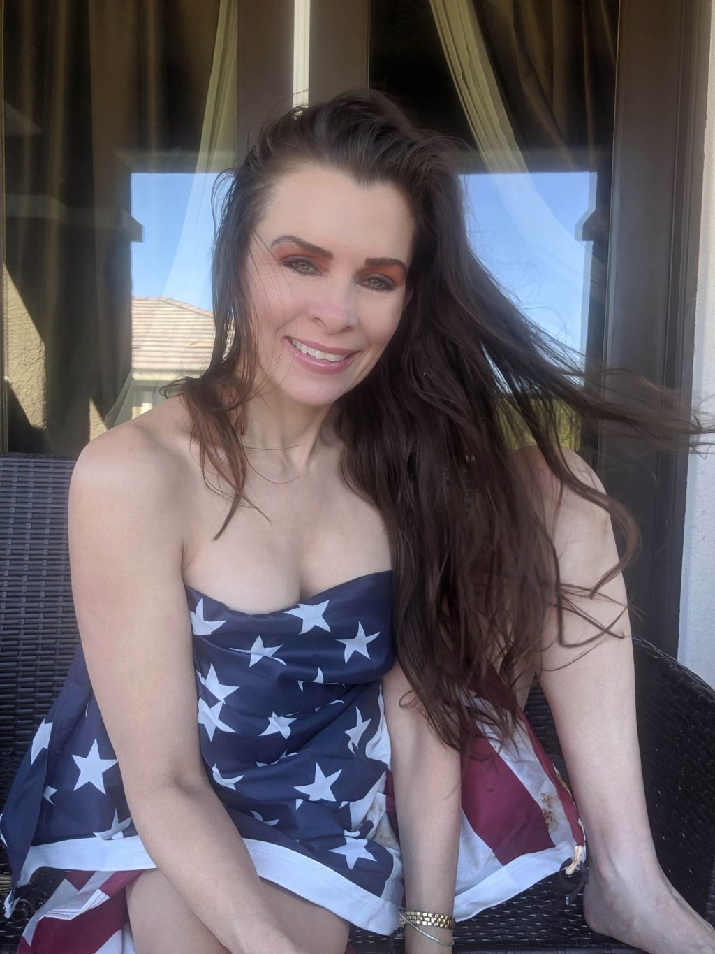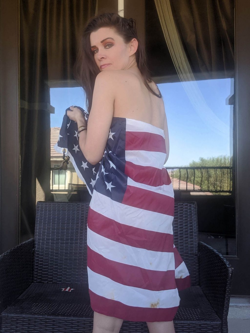 “La actriz de “Baywatch” Alicia Arden pasa un patriótico y casi desnudo fin de semana del 4 de julio en cuarentena, ahora que Los Ángeles ha reinstaurado las órdenes de confinamiento más estrictas por Covid (2020).