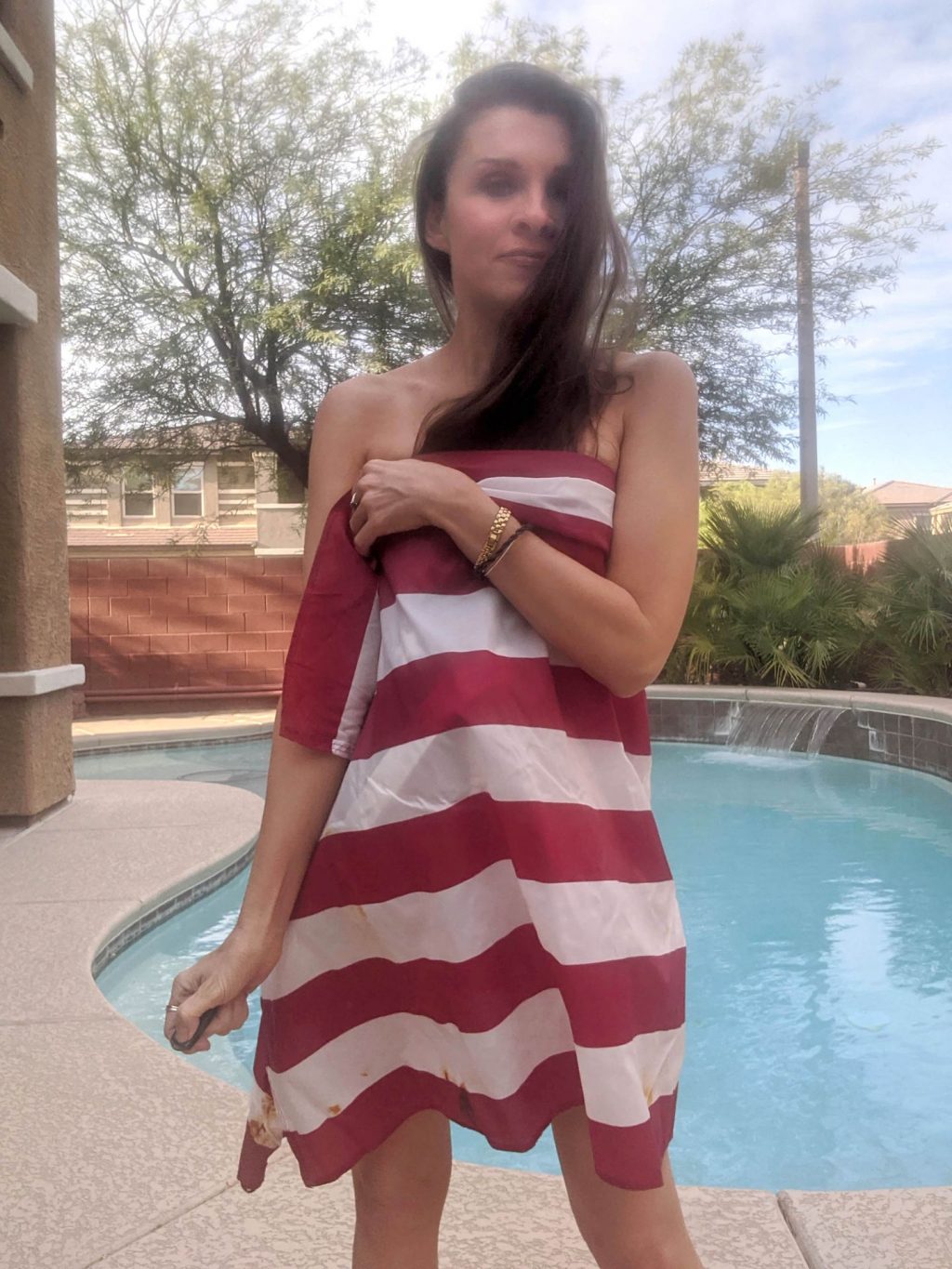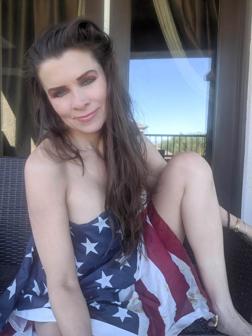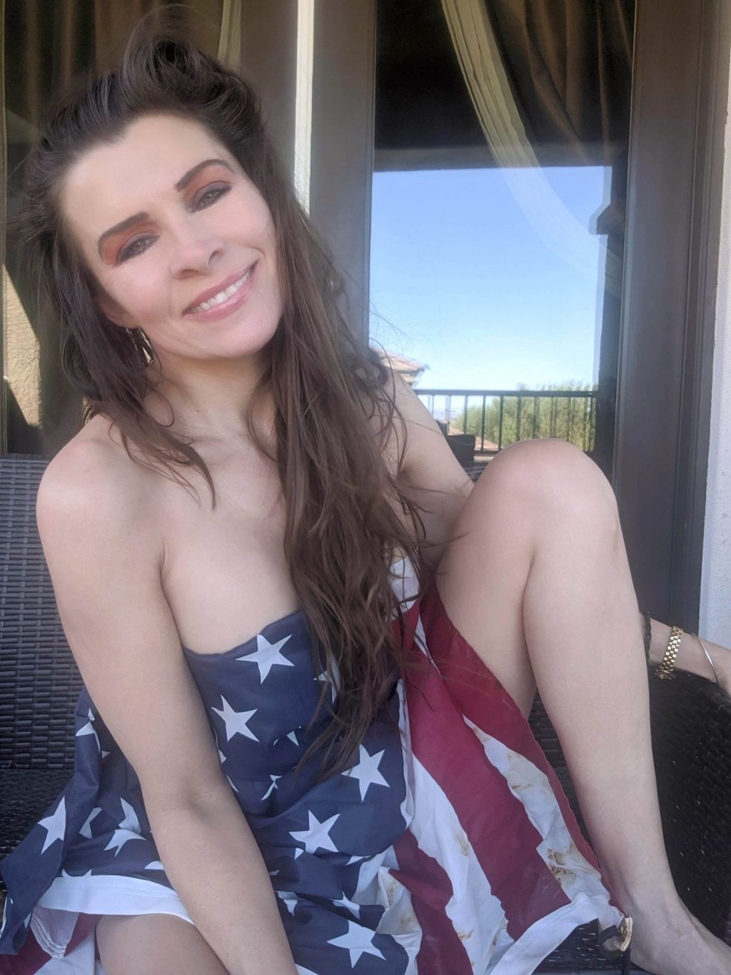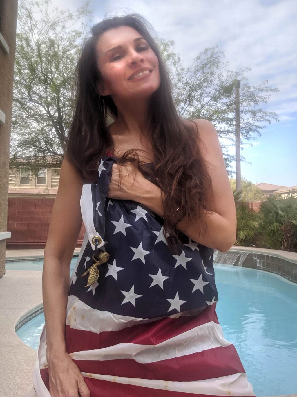 “La actriz de “Baywatch” Alicia Arden pasa un patriótico y casi desnudo fin de semana del 4 de julio en cuarentena, ahora que Los Ángeles ha reinstaurado las órdenes de confinamiento más estrictas por Covid (2020).