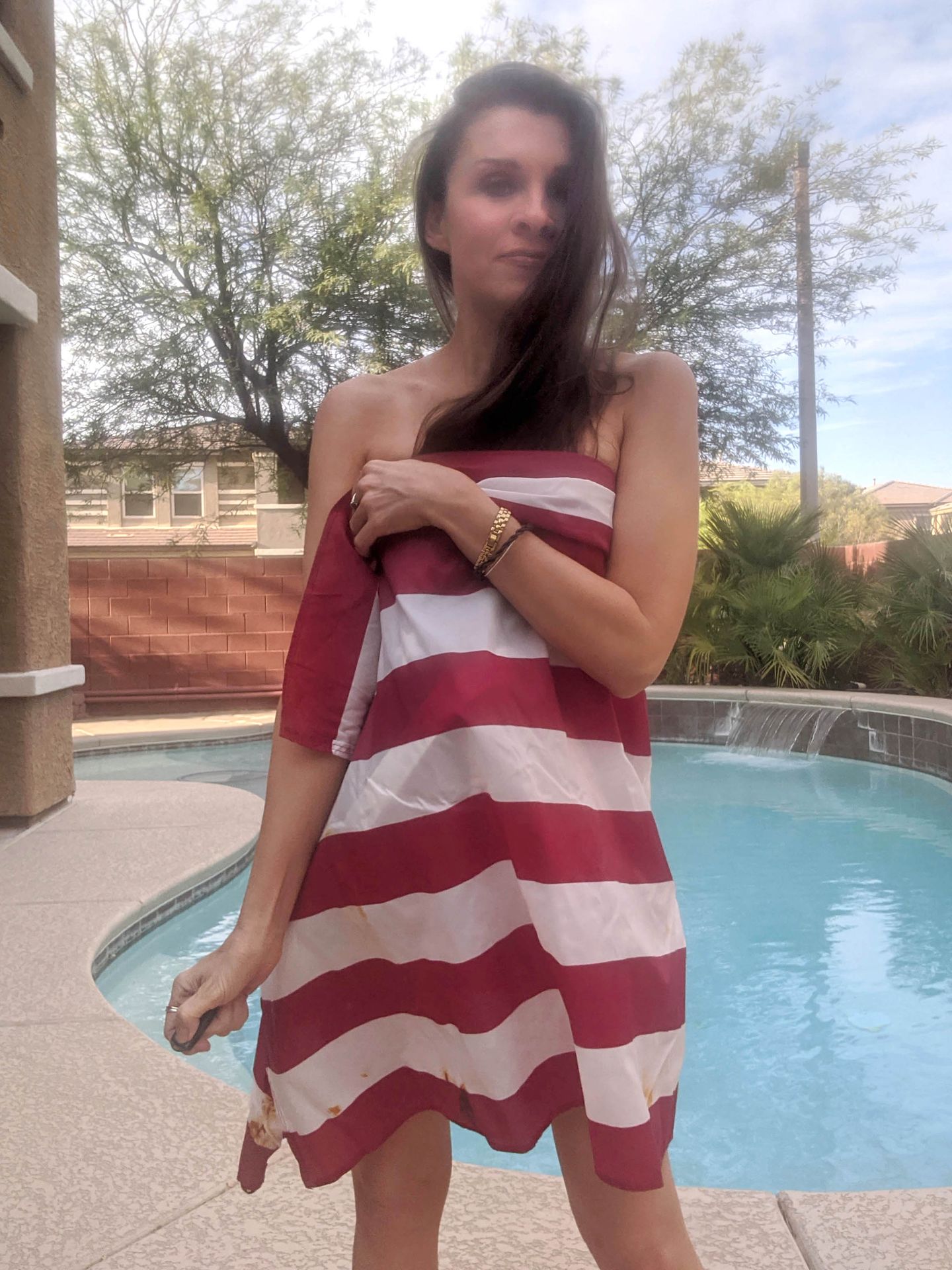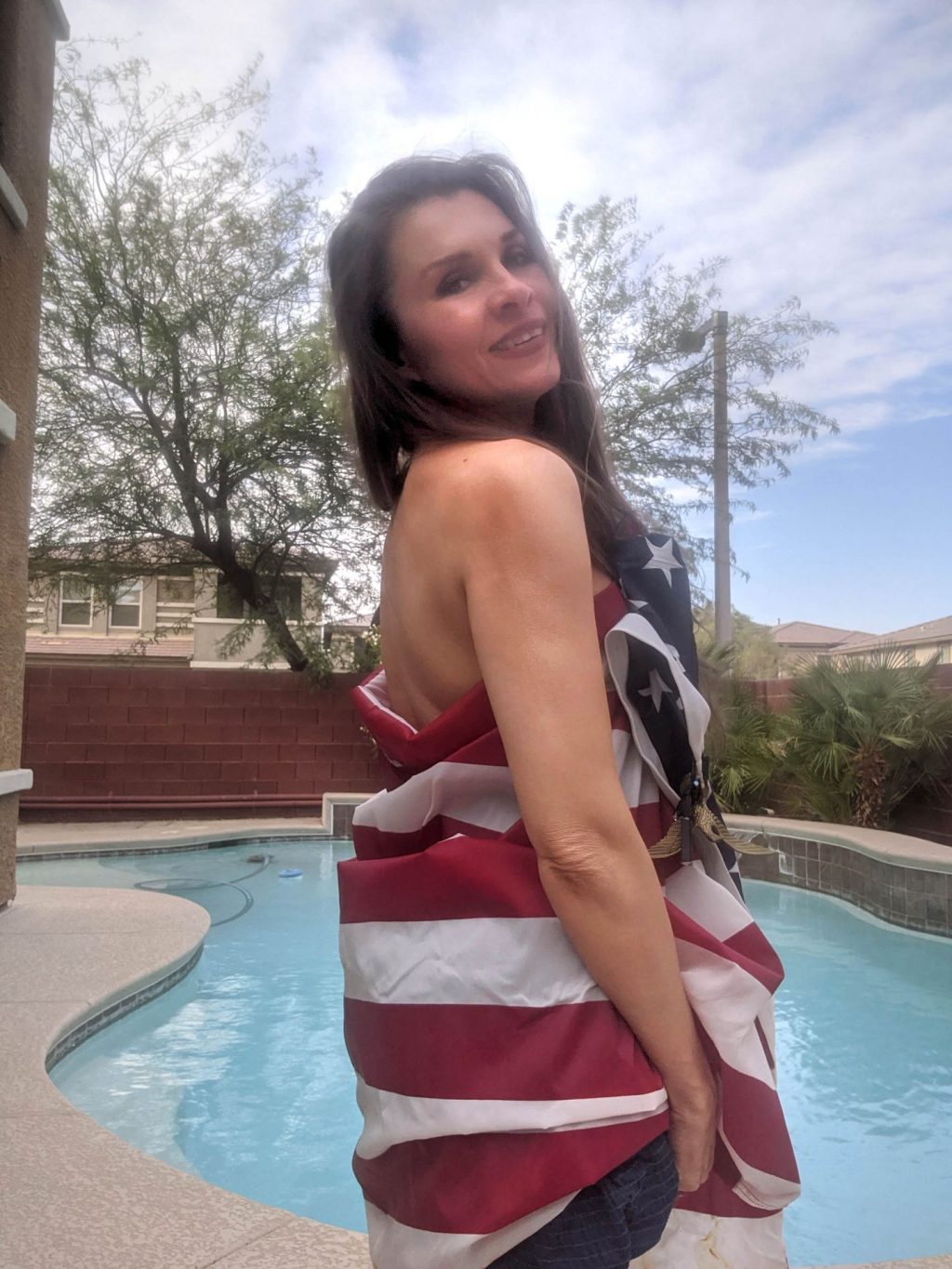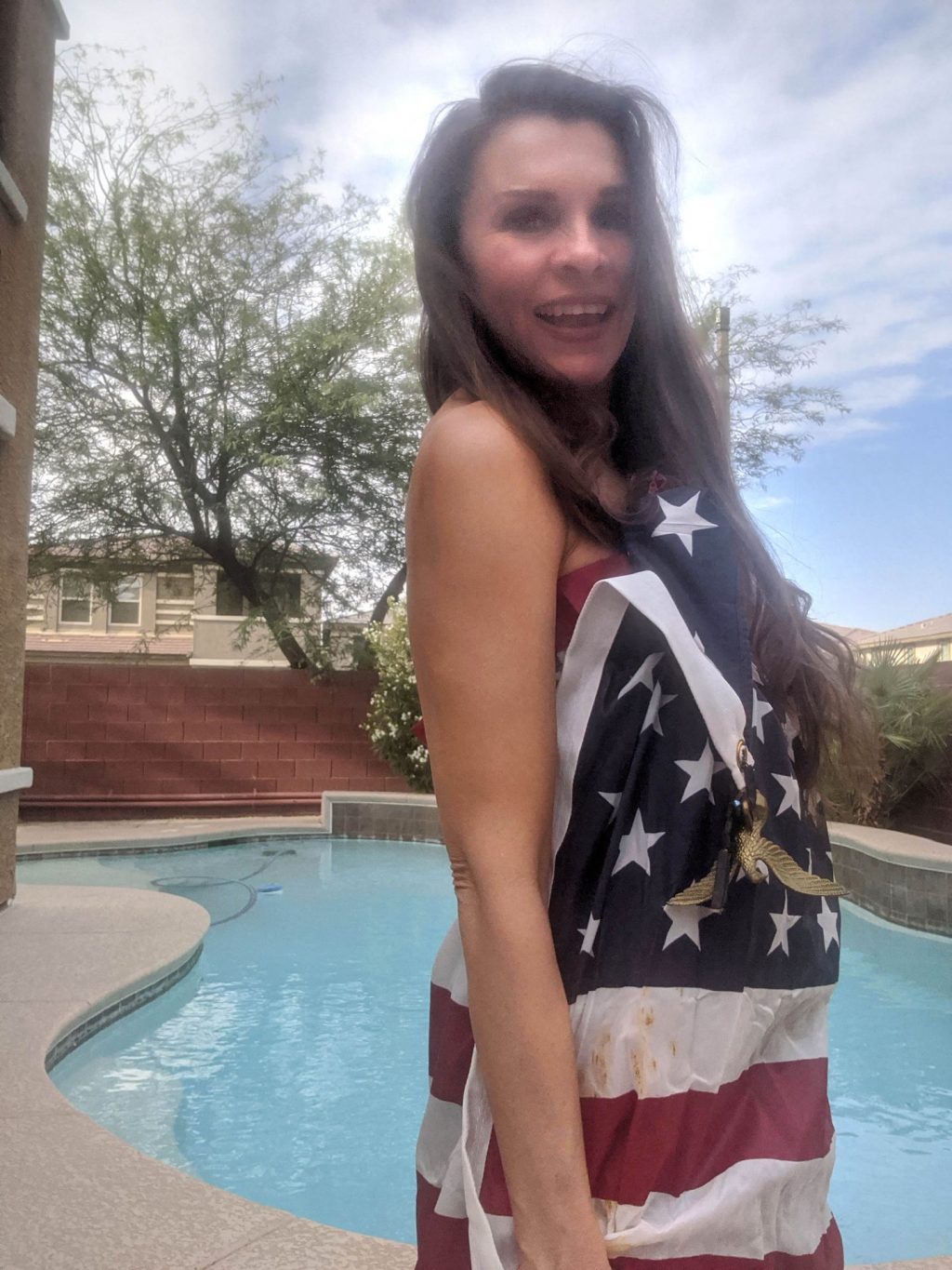 No sé qué es más perturbador, si el hecho de que tenga 51 años, esos dientes o las manchas de kétchup óxido en la bandera. Toda la sesión está jodida.