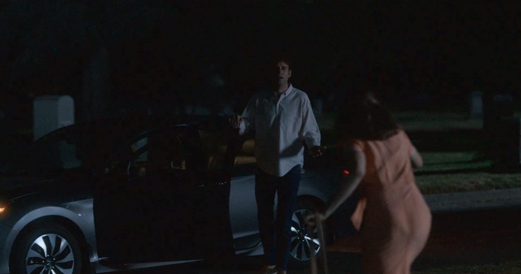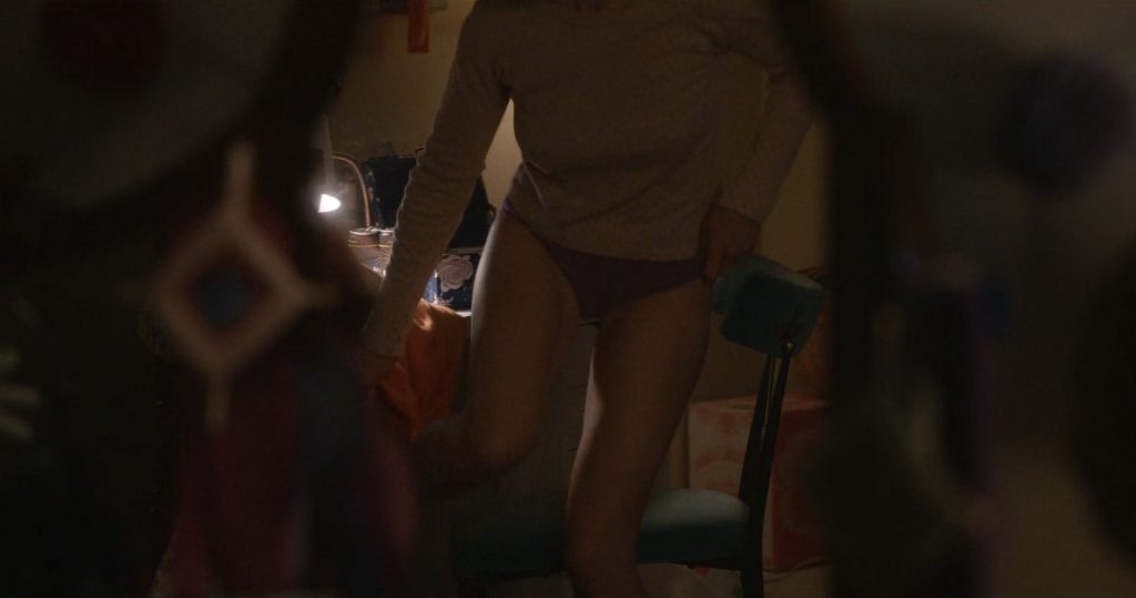 Alison se sienta junto al hombre en la cama, vistiendo un vestido con la misma capucha, besando al chico cuando él extiende la mano para desabotonar el vestido y bajarlo. Se ven sus pechos desnudos, el chico envuelve uno de ellos antes de que él y Alison tengan sexo.