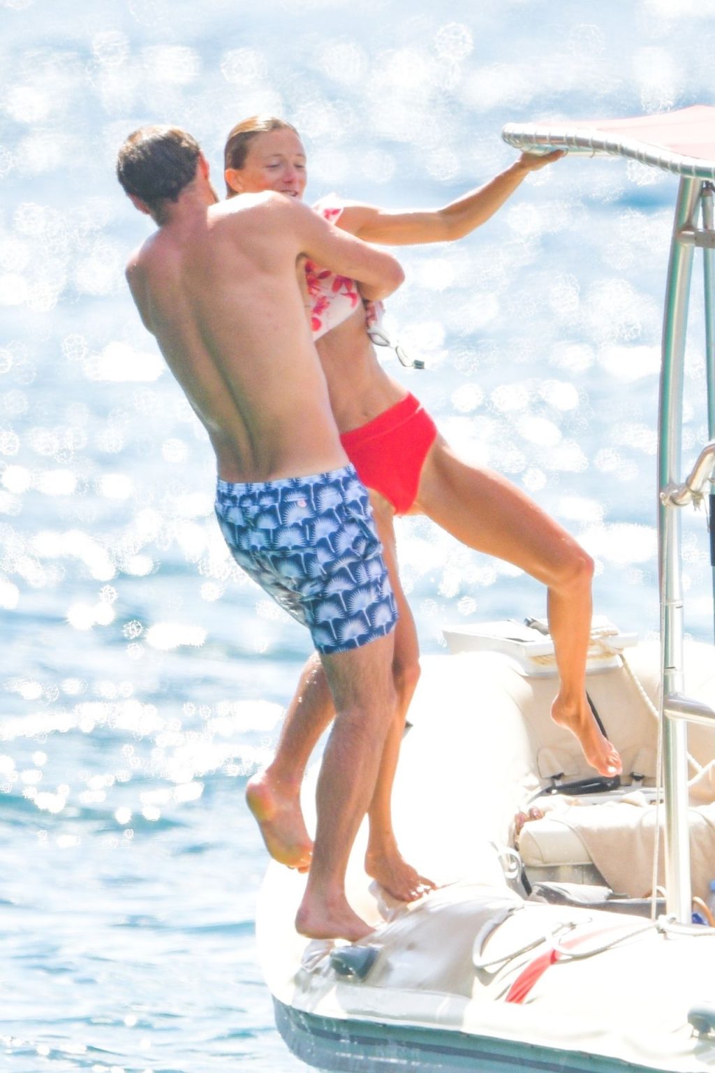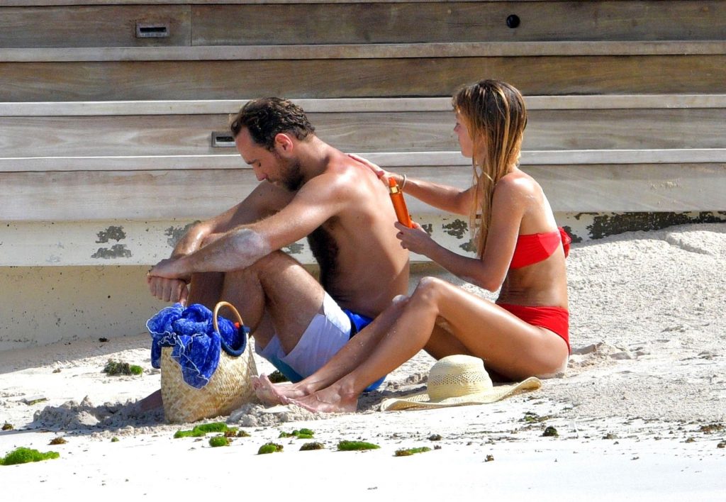 The couple looked very much in love as they chilled around their idyllic setting holding hands and they took a walk on the beach and a dip in the sea.