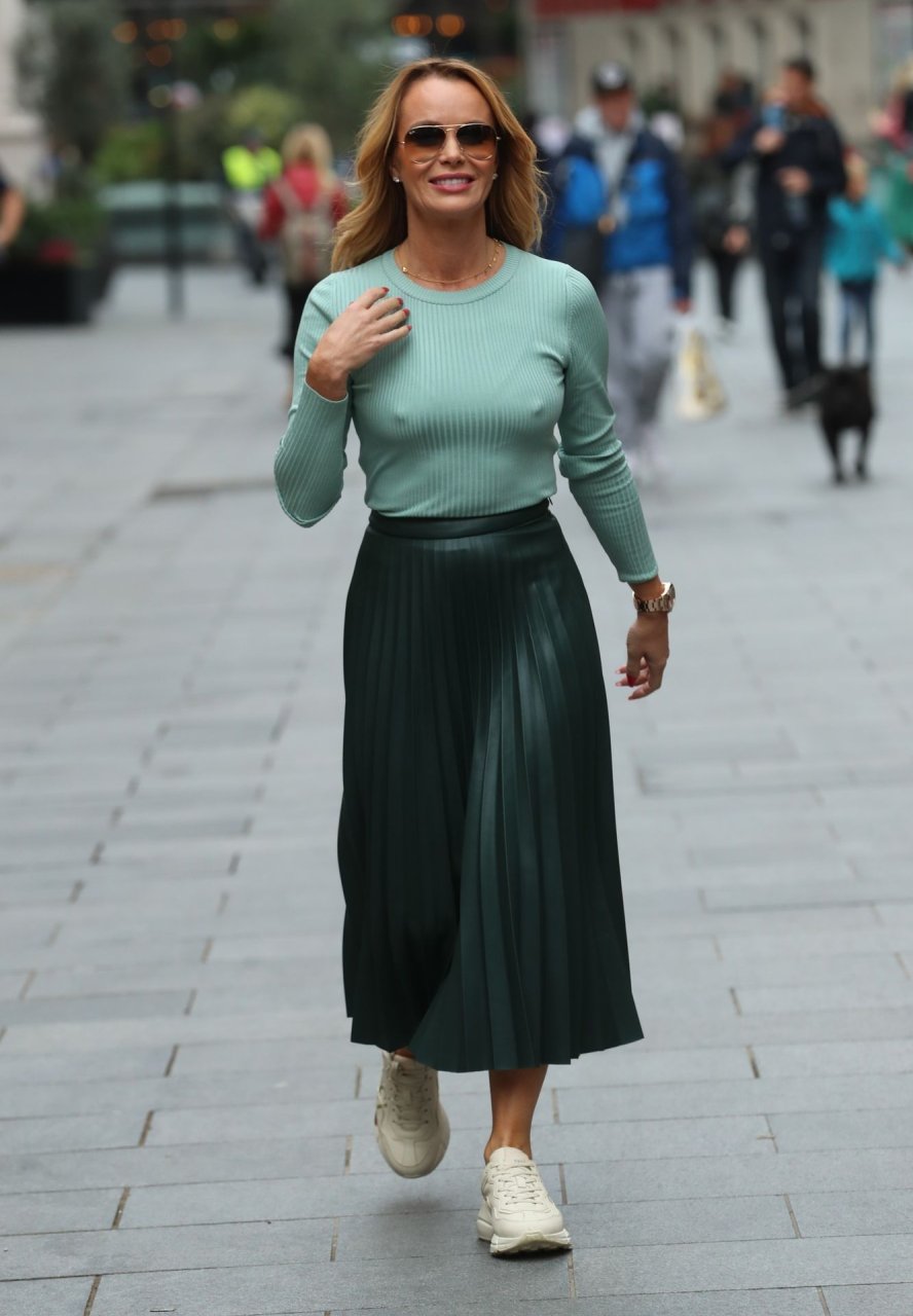 Amanda Holden muestra pezones a través de un vestido verde y Ashley Roberts en un traje beige vista saliendo de Heart Radio en Londres, 10/03/2019.