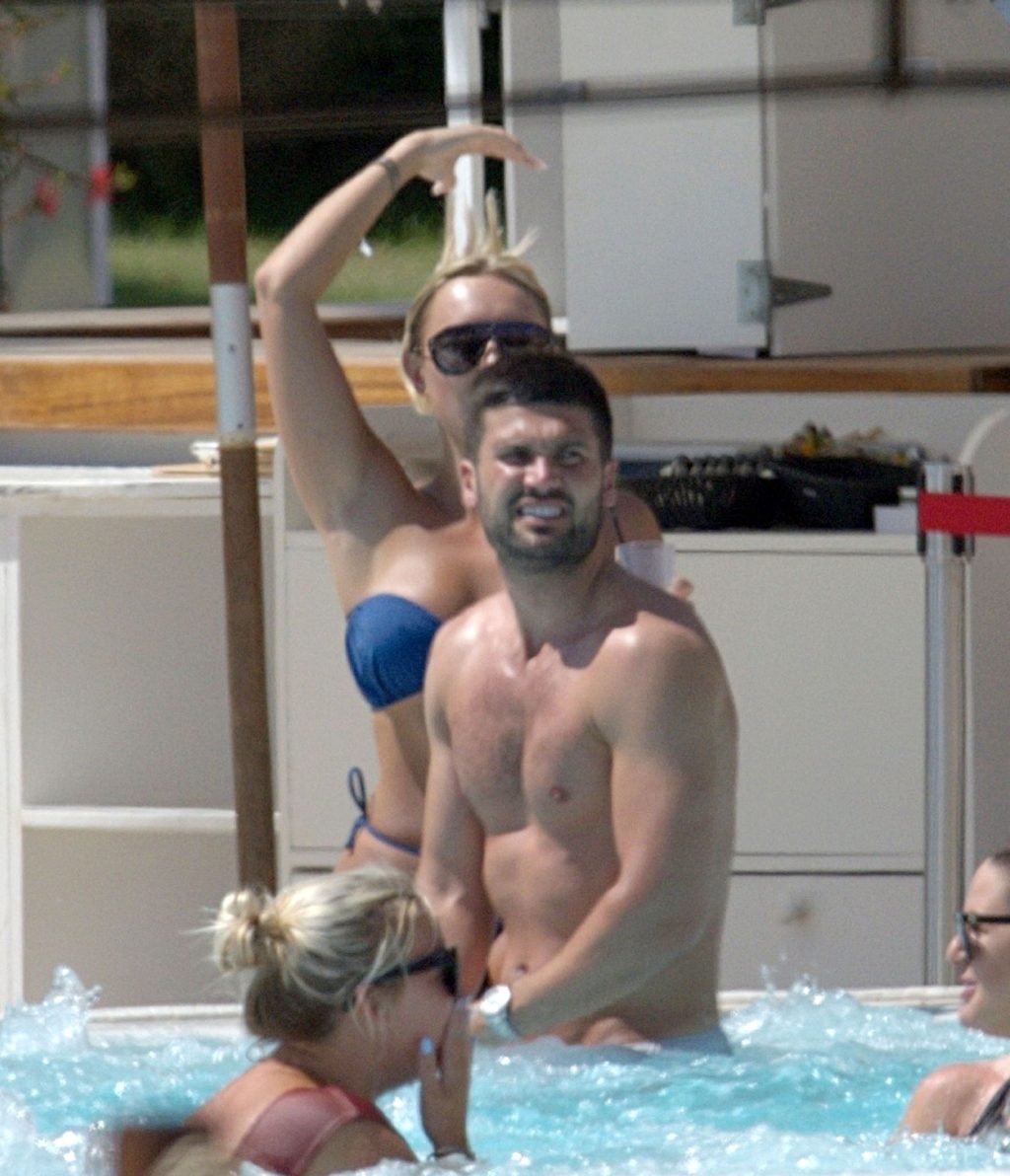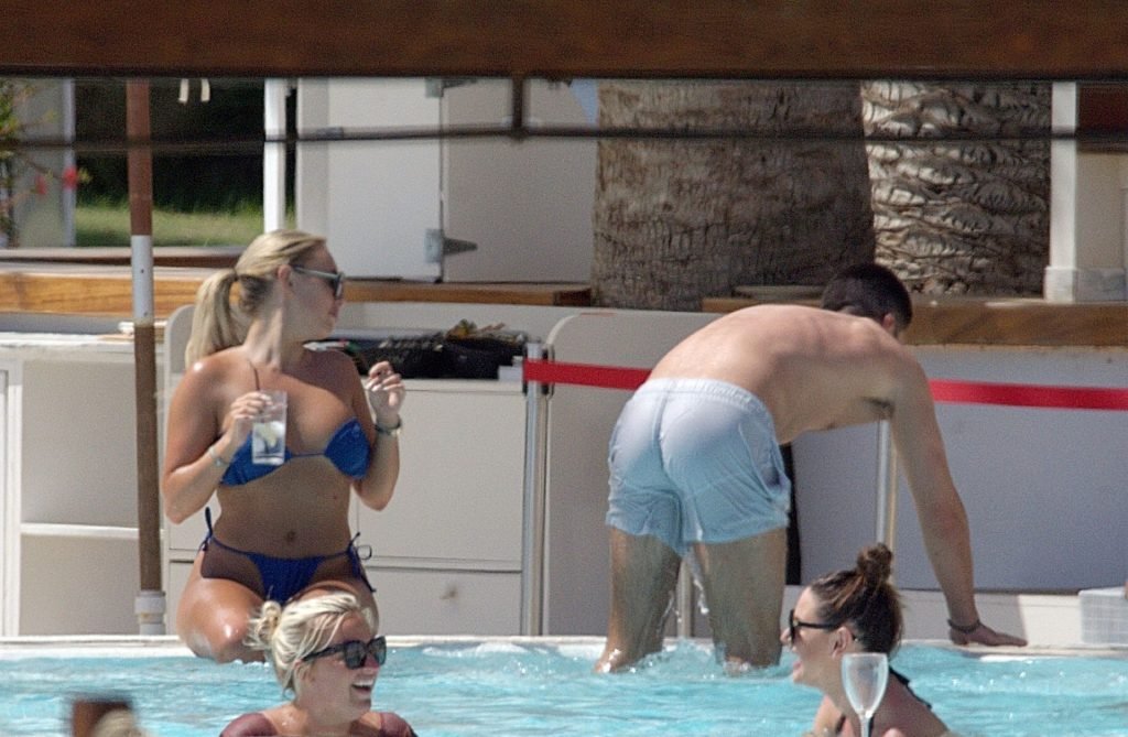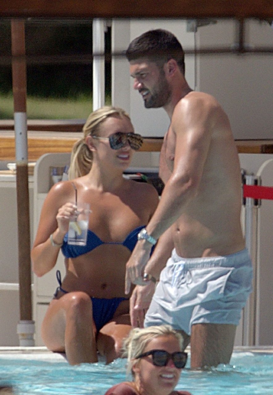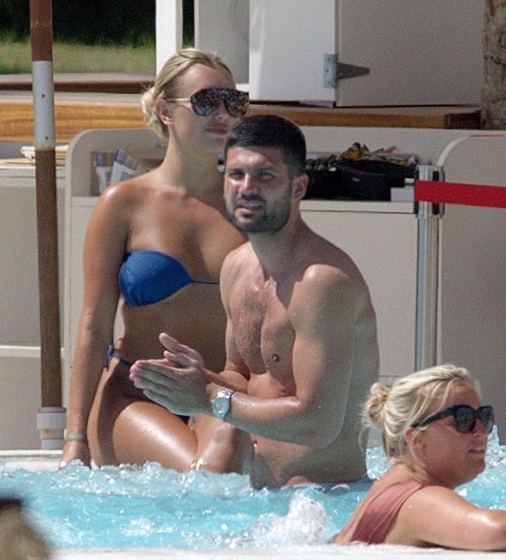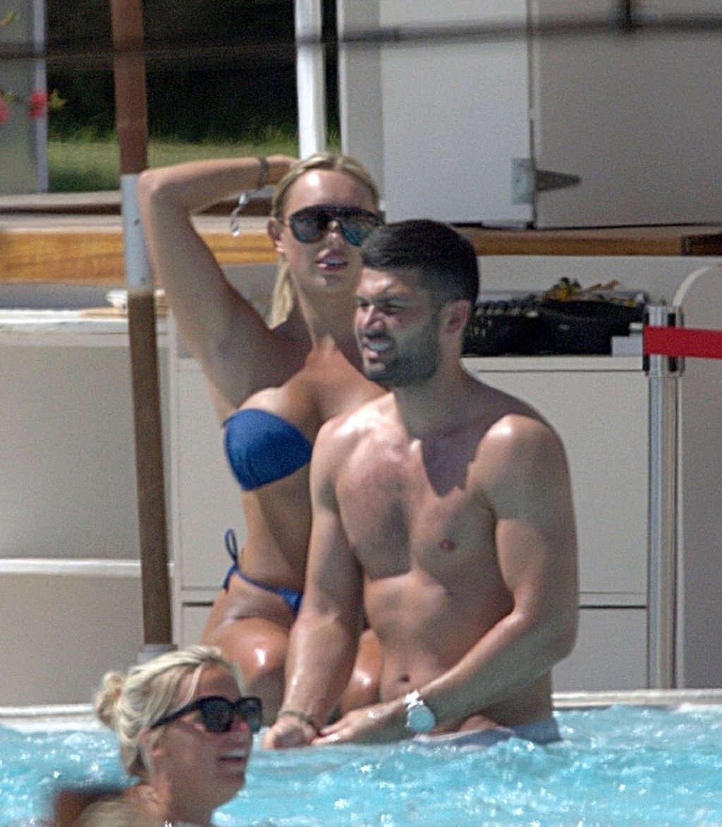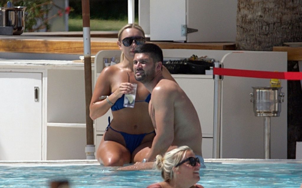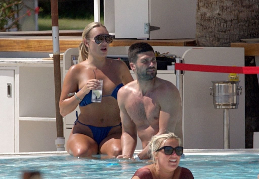 La pareja de TOWIE Dan Edgar y Amber Turner juntos de nuevo mientras son fotografiados besándose apasionadamente mientras se relajan en la piscina en Ibiza, 29/05/2019.