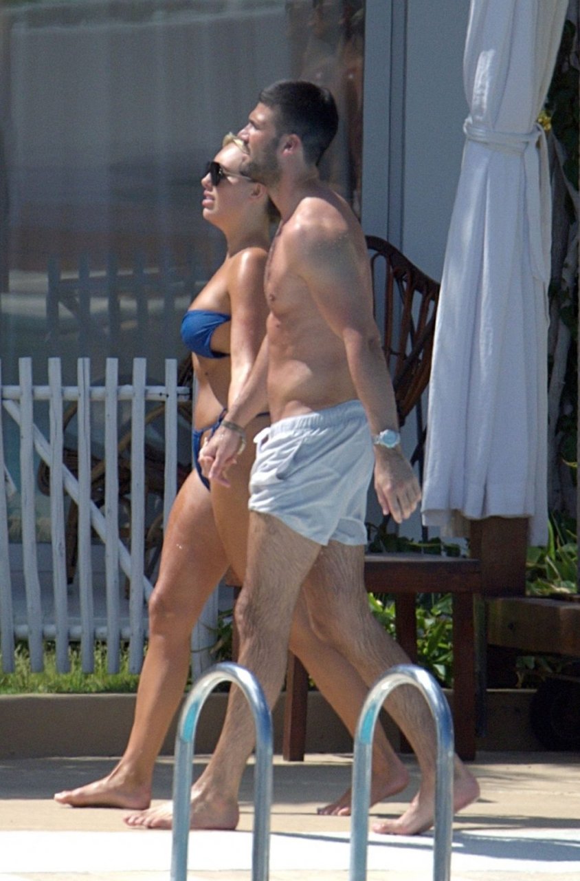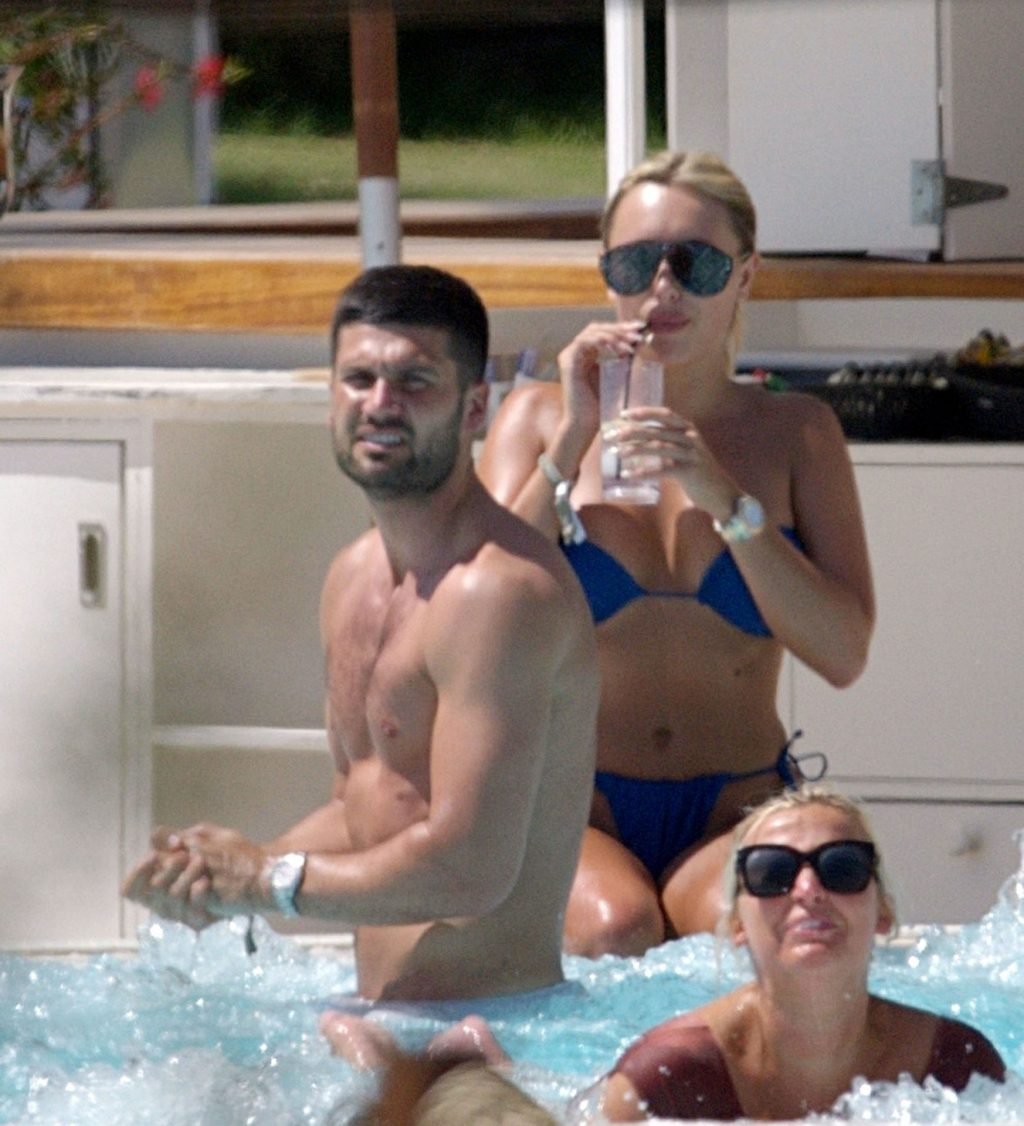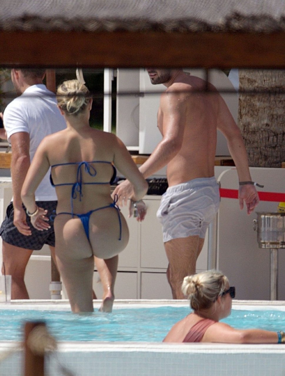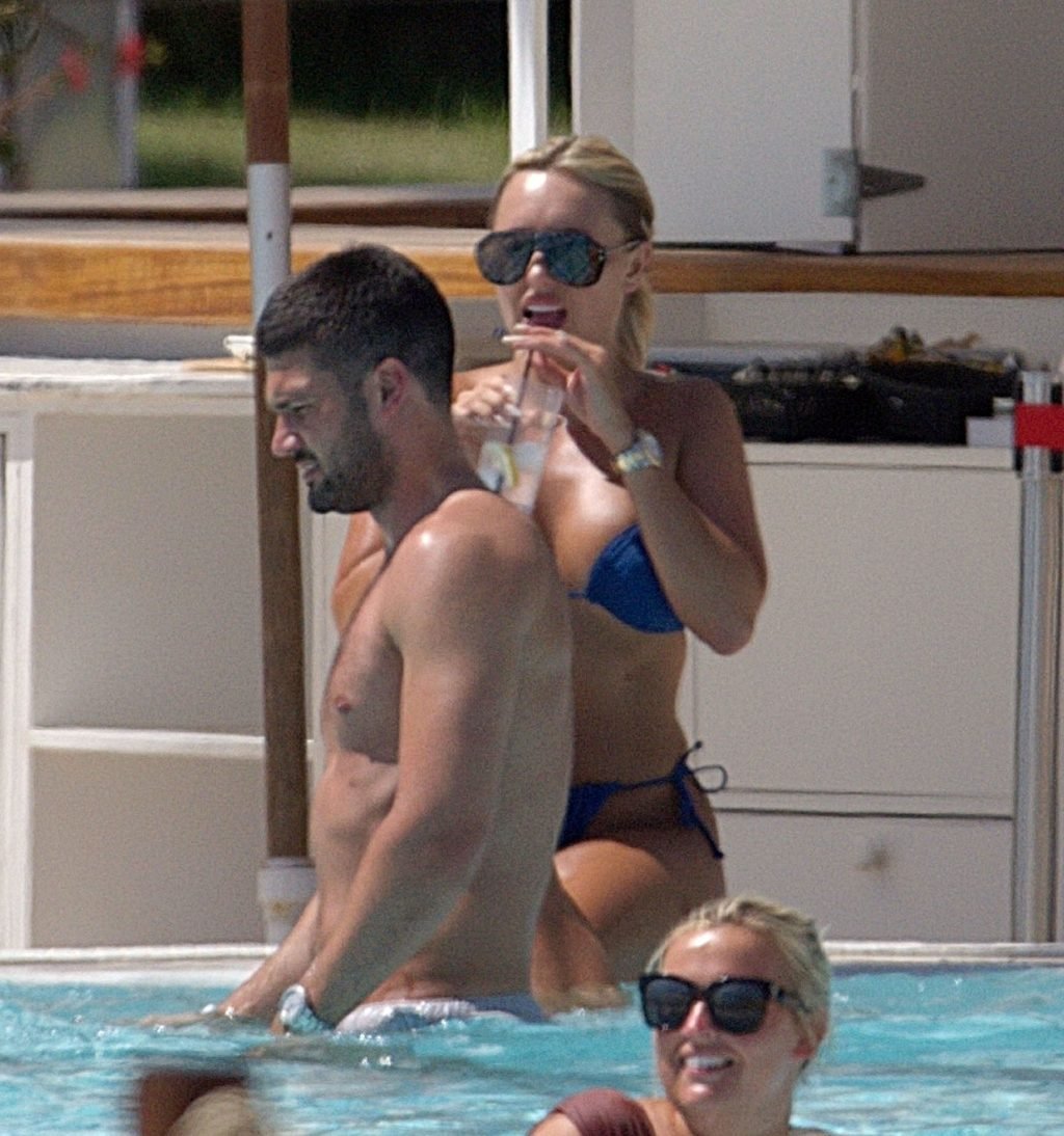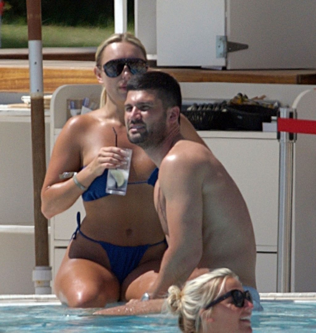 La pareja de TOWIE Dan Edgar y Amber Turner juntos de nuevo mientras son fotografiados besándose apasionadamente mientras se relajan en la piscina en Ibiza, 29/05/2019.
