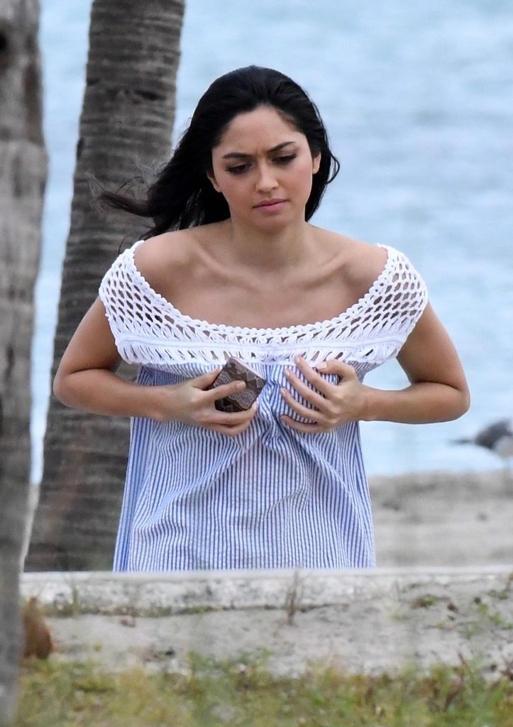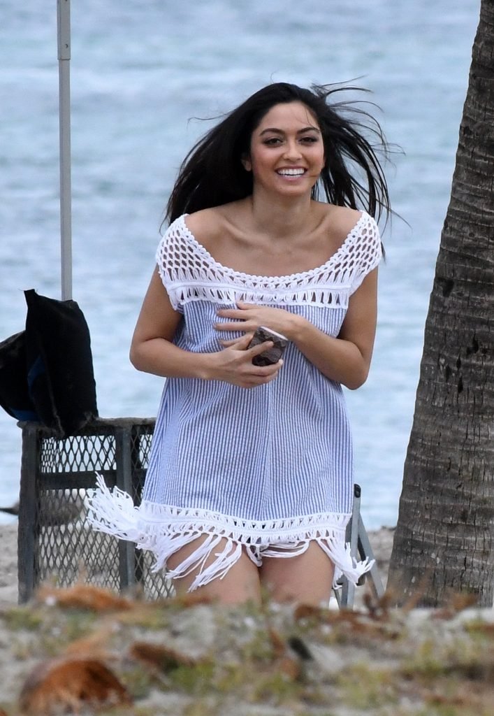 Harvey Weinstein acusadora Ambra Gutierrez, quien fue anteriormente Miss Piedmont, finalista de Miss Italia 2010 y primera finalista de Miss Universo Filipinas, posa en bikinis para una sesión de fotos en la playa de Miami, 12/03/2018. Siempre profesional, aún fresca, la modelo filipina-italiana de 24 años continuó trabajando bajo una tormenta (porque no tiene suficiente dinero), mientras el resto del equipo se refugiaba bajo paraguas.