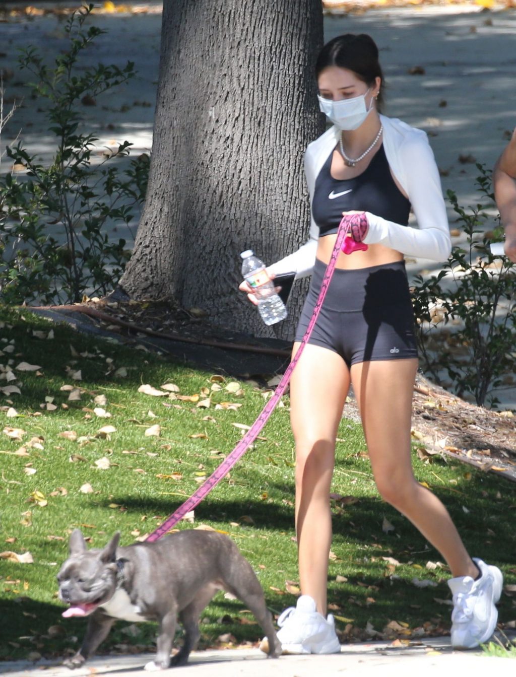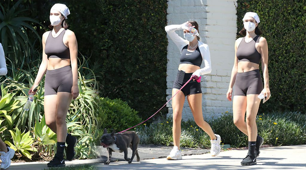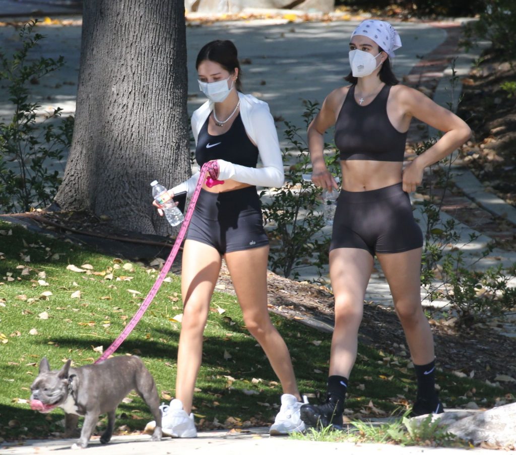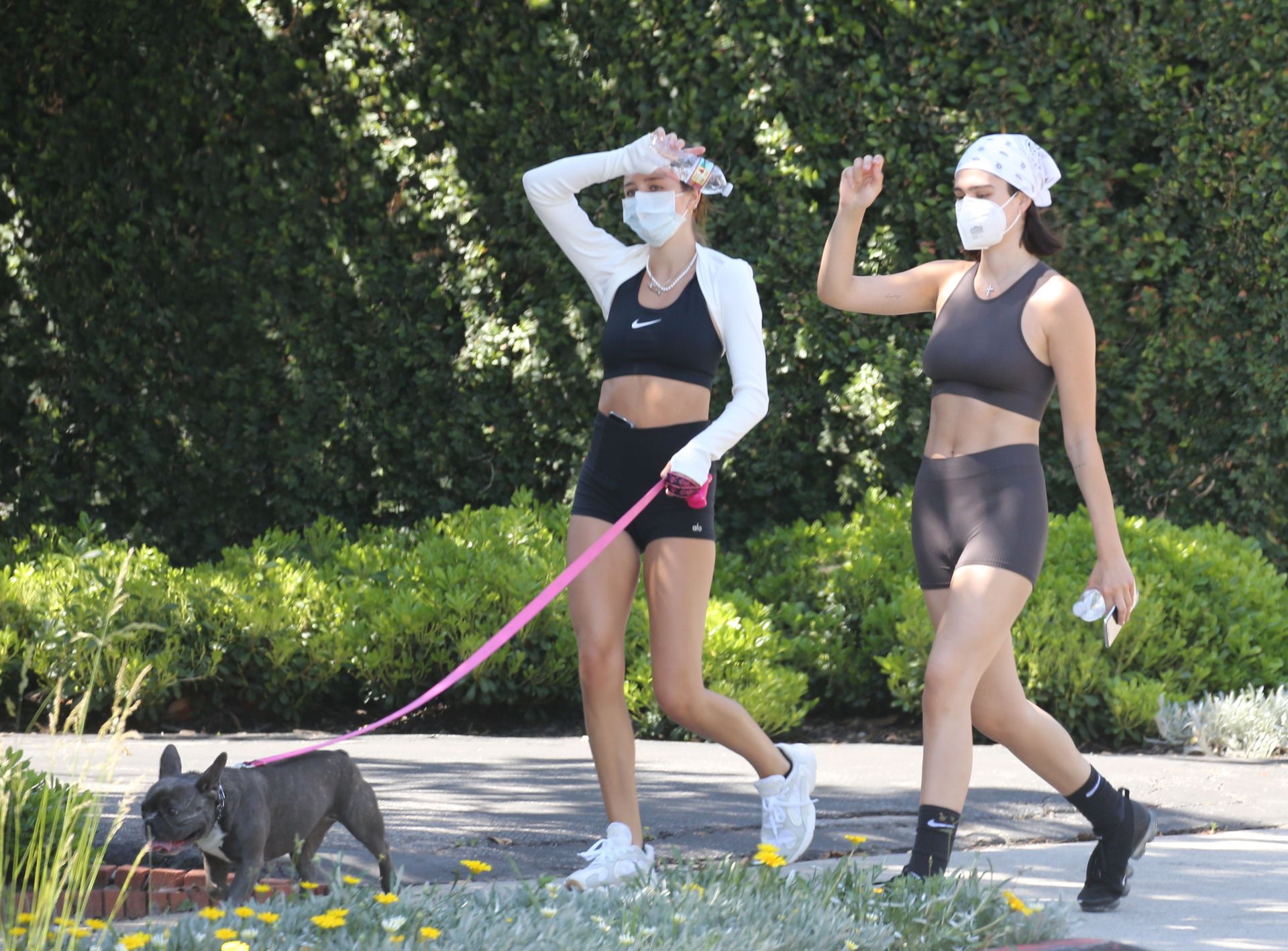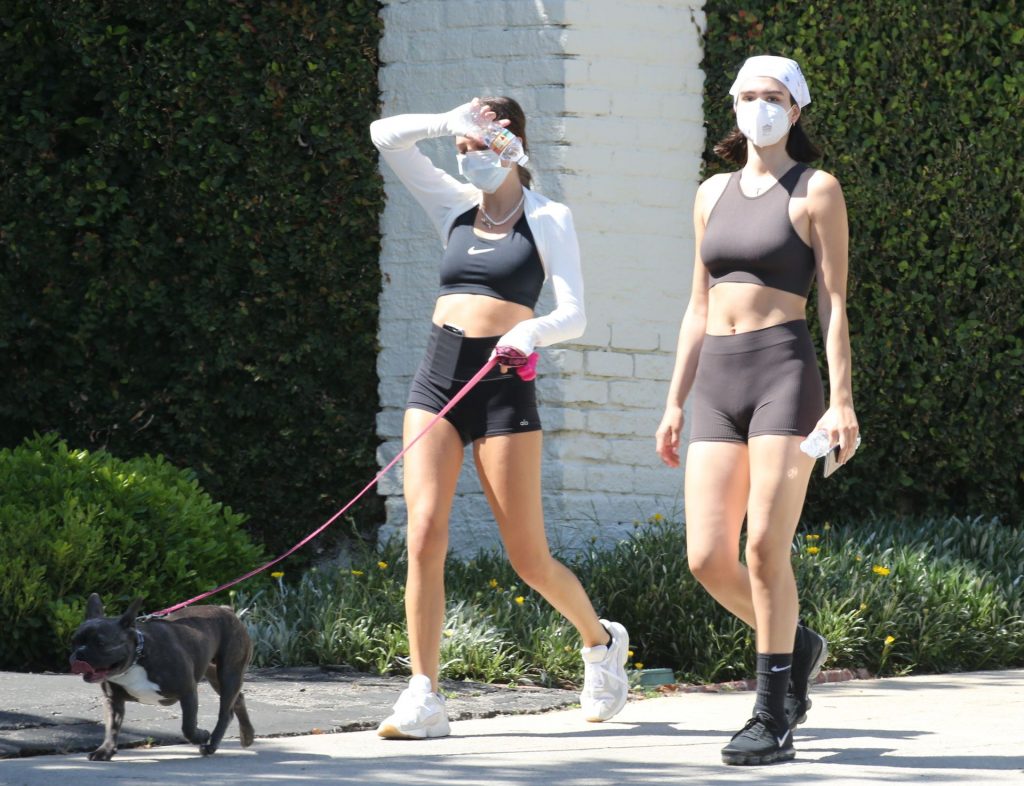 ¡Abdomen bonito! Las sexys hermanas Amelia y Delilah Hamlin (hijas de Lisa Rinna) fueron vistas sin maquillaje paseando a su perro en Beverly Hills, 30/04/2020.