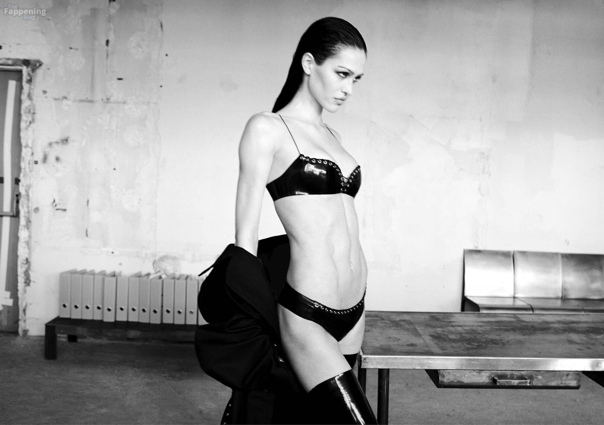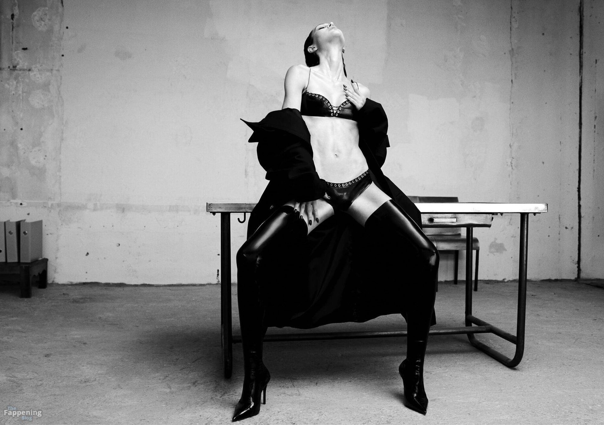 Mira a Amelia Gray Hamlin luciendo lencería de látex y botas hasta el muslo en la campaña Otoño 2025 de Ludovic de Saint Sernin.